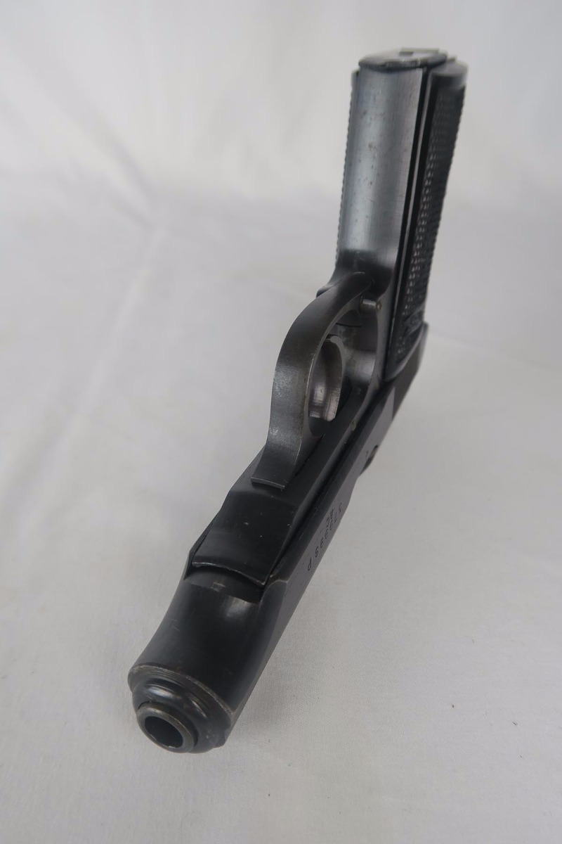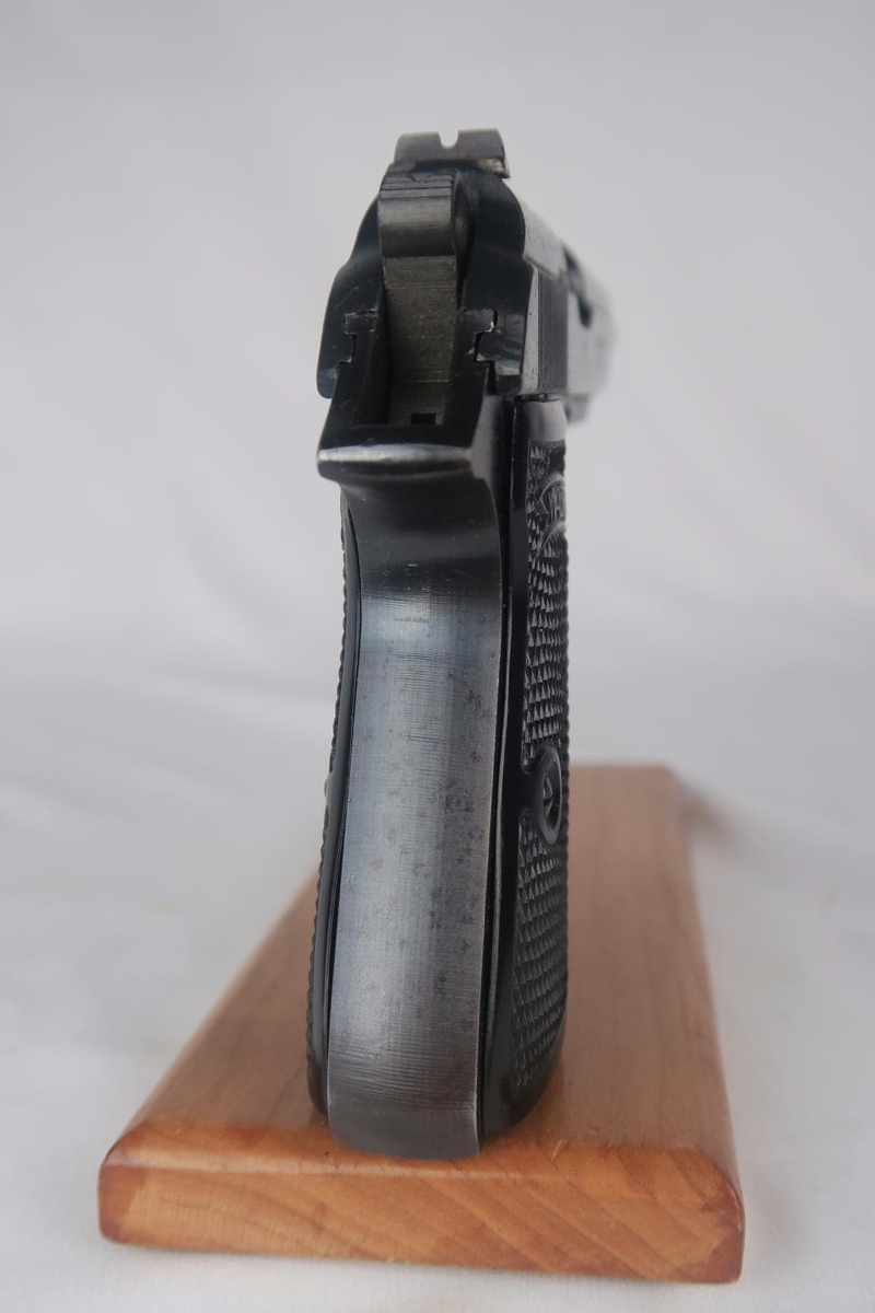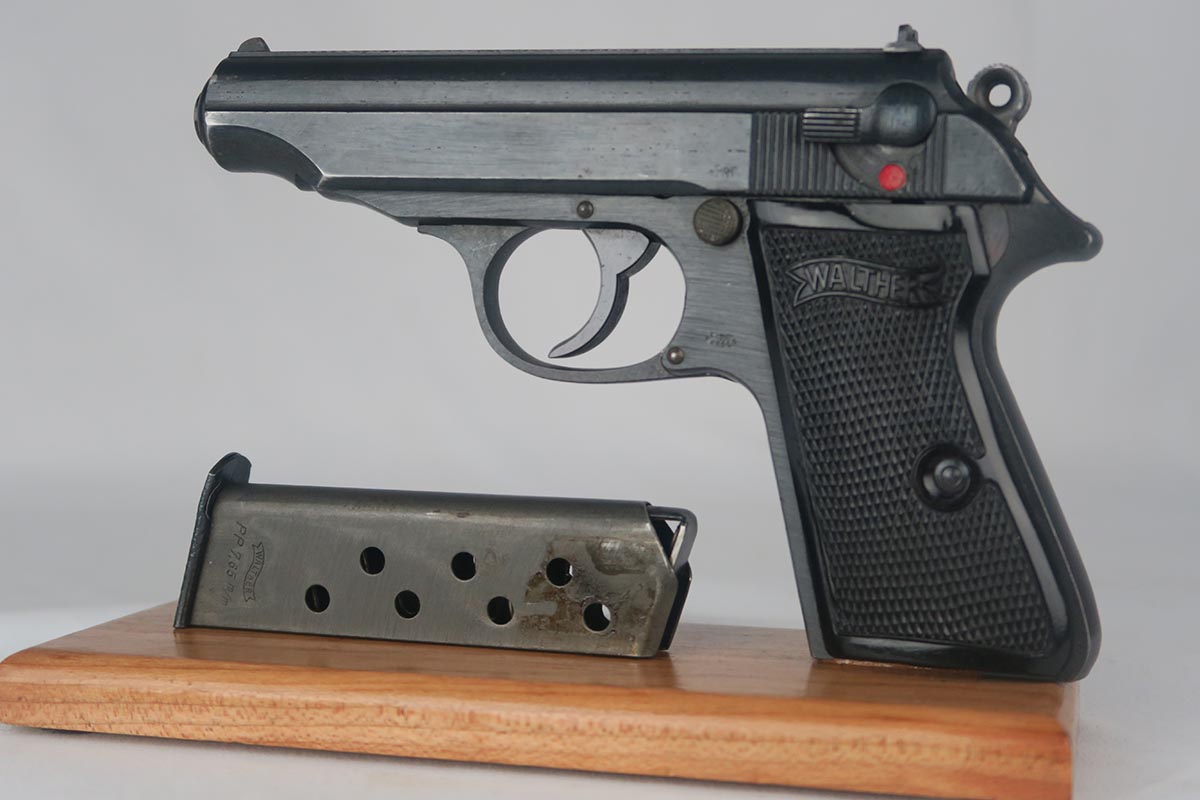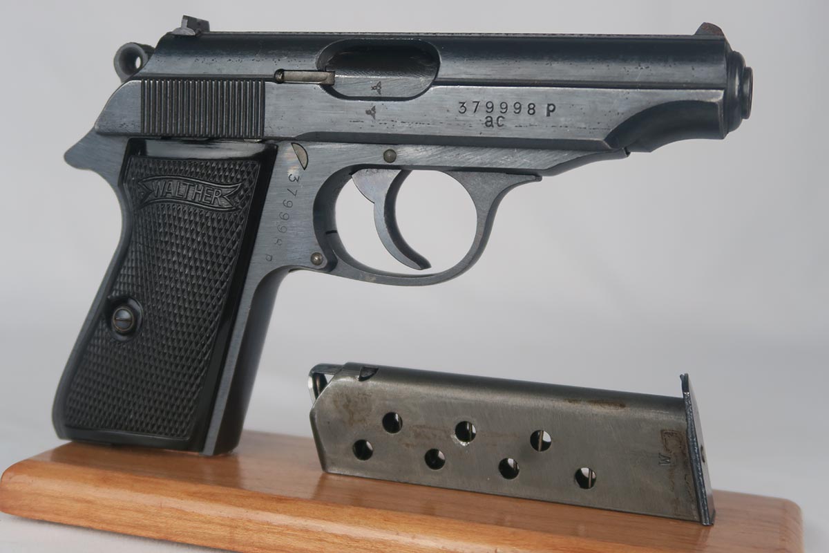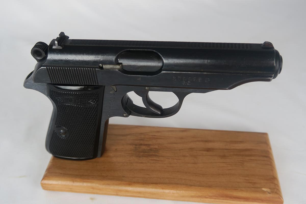7/28/17 – This is a scarce variation 5 Army Walther PP in excellent original condition.  It is waffen marked on the frame and slide and has the ‘ac’ Walther code on the right slide.  There were only ~2,500 of this variation produced.  Bluing rates at 98% with minor muzzle/edge wear, and a little patina on the straps.  Excellent late war ‘W’ mag.  Good grips but the left panel has a minor crack.  Strong bore with no pitting or corrosion.