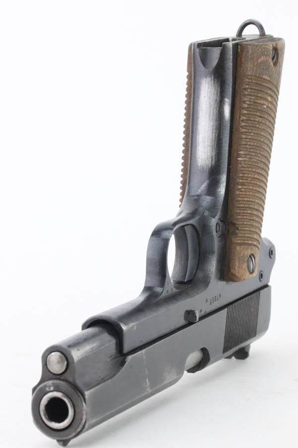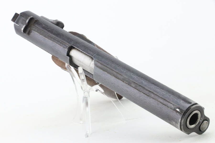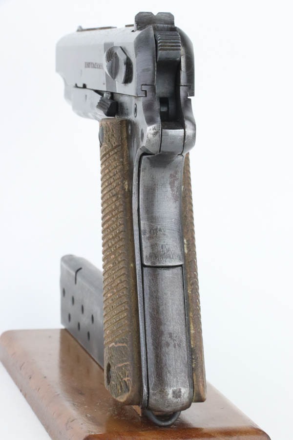 10/7/24 – This is a very nice example of a late-WW2 Radom VIS 35 issued to the Nazi military. All matching with the proper “Eagle 77” and “Waffen 623” German military acceptance proofs. This is the later two-lever variation fitted with period-correct wood grips. Its original finish rates about 90% with minor muzzle wear, a few small spots of wear on the right side of the slide, very minor thinning on the back strap, and an area of scratching on the front strap that almost looks like it’s from a wire brush. Minty bore. Comes with a proper waffen-proofed magazine.