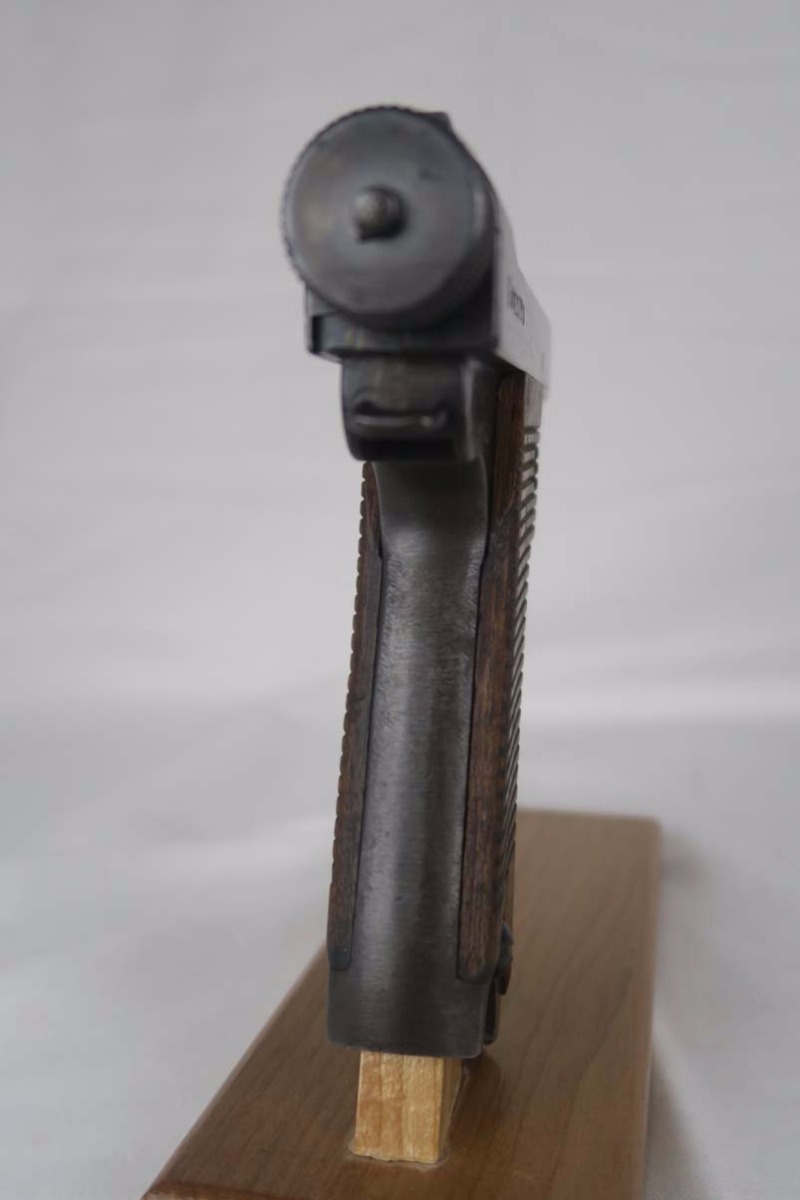 5/3/17 – This is an all matching and correct Type 14 Nambu, made in 1944, with matching magazine and grips. It has proper late-war features such as the enlarged trigger guard that was manufactured to make it easier to fire the pistol with gloves on. The magazine and grips are both properly numbered to the pistol. The original finish rates at abotu 95%, with most finish loss seen on the high edges, but some browning showing through on other parts of the pistol. Mint bore.