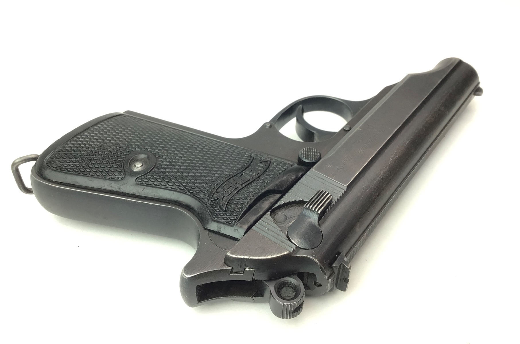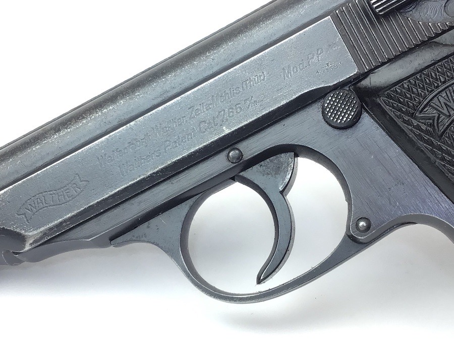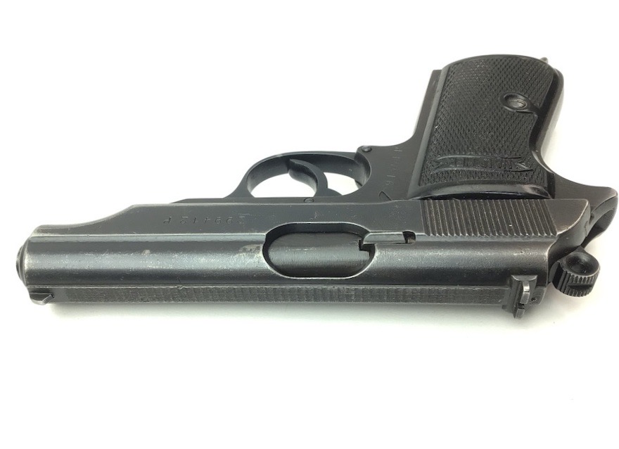 3/3/23 – Late war Walther PP. Bluing rates about 80%, but was re-blued sometime in the past. Waffen stamped on the left side WaA359. Serial number on frame and slide do not match. Bore has good rifling with some minor pitting in the grooves. There are no markings on the barrel. Rates about 8 of 10. Smooth action and completely functional.