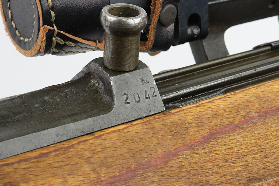 02/27/2024 – For sale is an excellent K43 semi-auto rifle made by the Walther Factory in WW2. This rifle is in great condition and retains the majority of its original finish. The rifle has majority matching serial numbers but the only mismatched part is one of the flapper locks in the bolt carrier, the rest of the rifle matches. The stock is un-numbered but is Eagle-proofed on the wrist. The bore is great and is very shiny but becomes slightly foggy towards the muzzle. The rifle comes with a Zf.4 Scope and mount and we believe the mount is reproduction. The Lens is hazy on the edge but the reticle is crisp. The rifle comes with a leather sling, lens caps, and a muzzle cap.