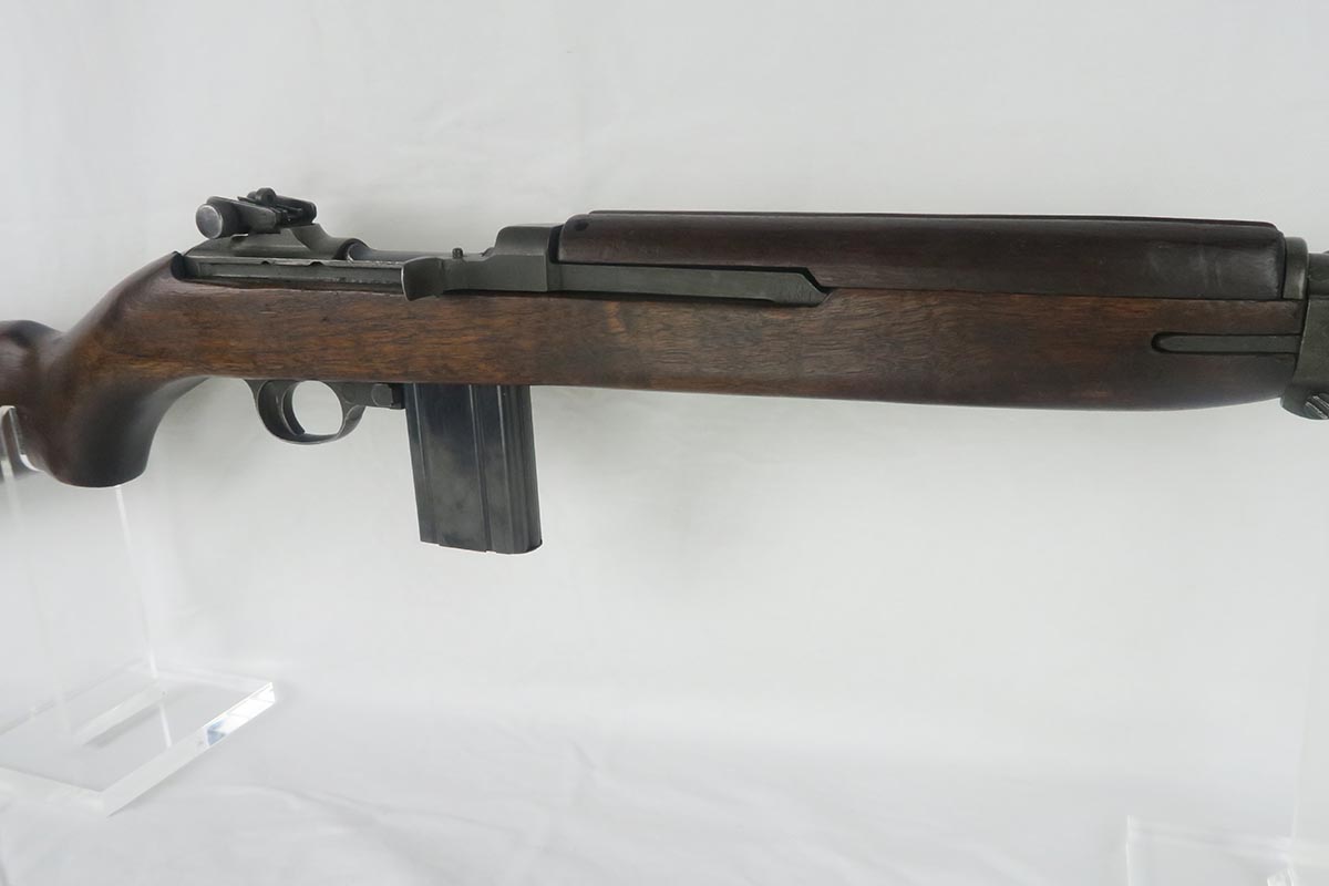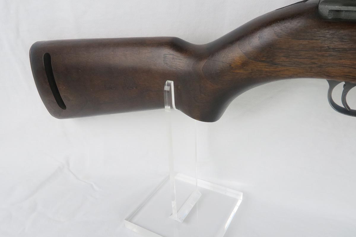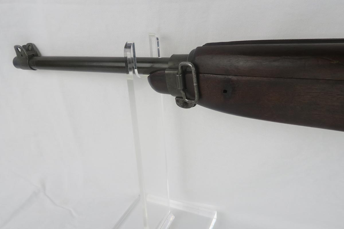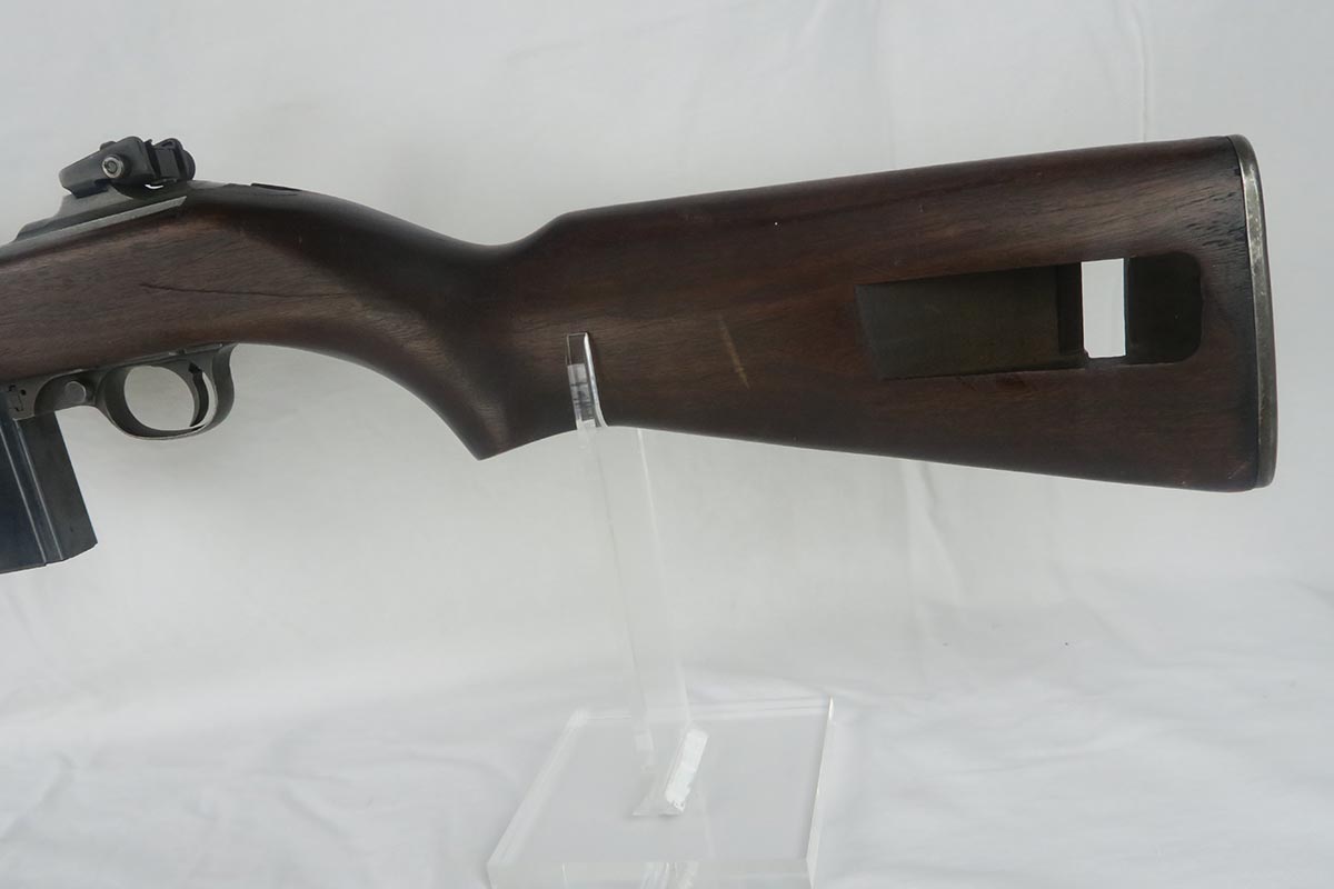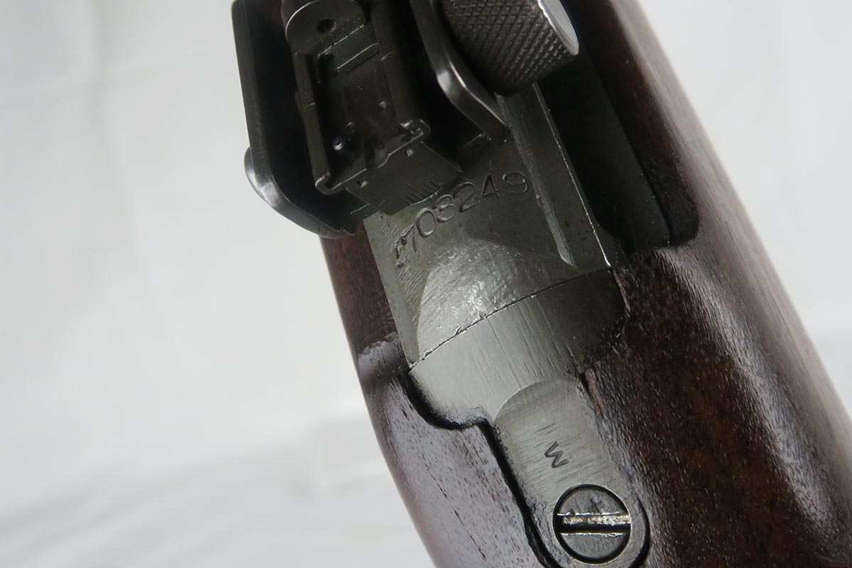 7/9/18 – This is a later 5 million serial Winchester M1 Carbine from late 1944.  It has the correct, adjustable sight as those were install starting in late ’44.  Low wood stock, no bayo lug.  Excellent cartouche and inspector marks on right side of the stock.  Correct wide barrel band and ‘M’ marked mag release.  There is a notable surface scratch on the left side stock but it is not a crack.  Excellent bore and finish to metal.  Barrel is marked both ‘W’ and with the Winchester maker mark in oval.  Excellent bore.