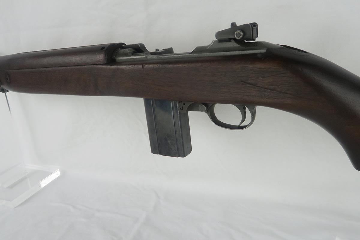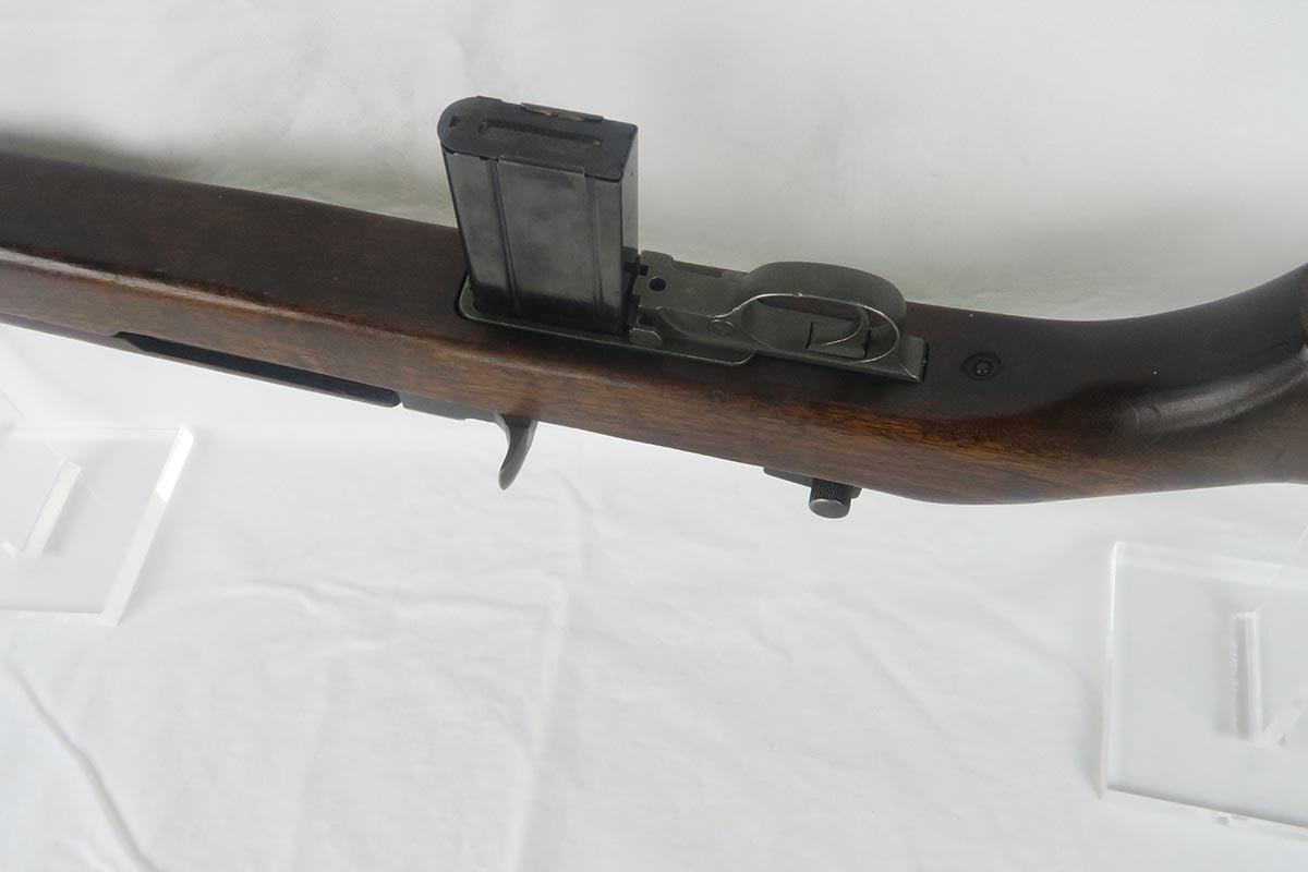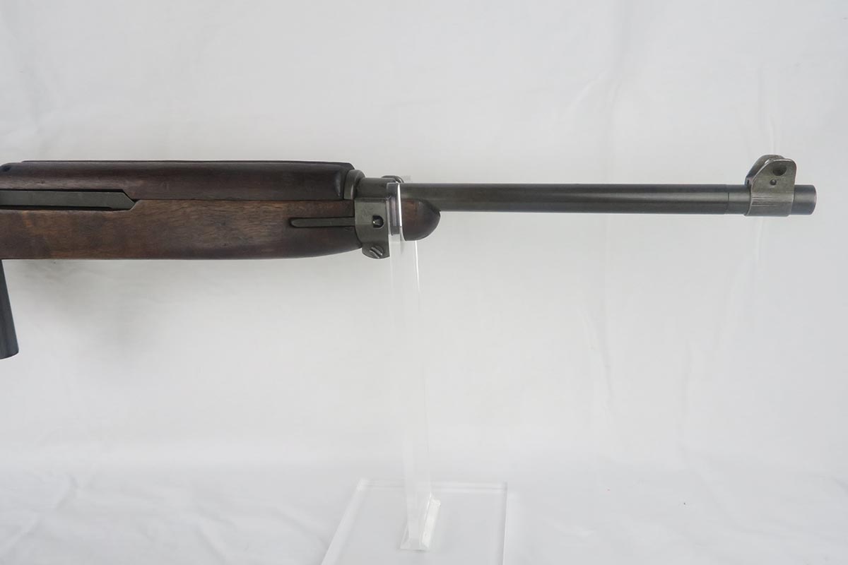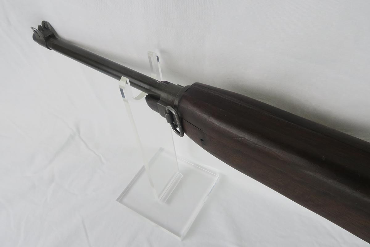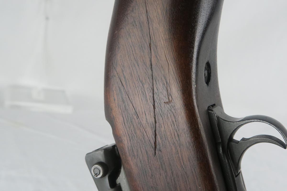 7/9/18 – This is a later 5 million serial Winchester M1 Carbine from late 1944.  It has the correct, adjustable sight as those were install starting in late ’44.  Low wood stock, no bayo lug.  Excellent cartouche and inspector marks on right side of the stock.  Correct wide barrel band and ‘M’ marked mag release.  There is a notable surface scratch on the left side stock but it is not a crack.  Excellent bore and finish to metal.  Barrel is marked both ‘W’ and with the Winchester maker mark in oval.  Excellent bore.