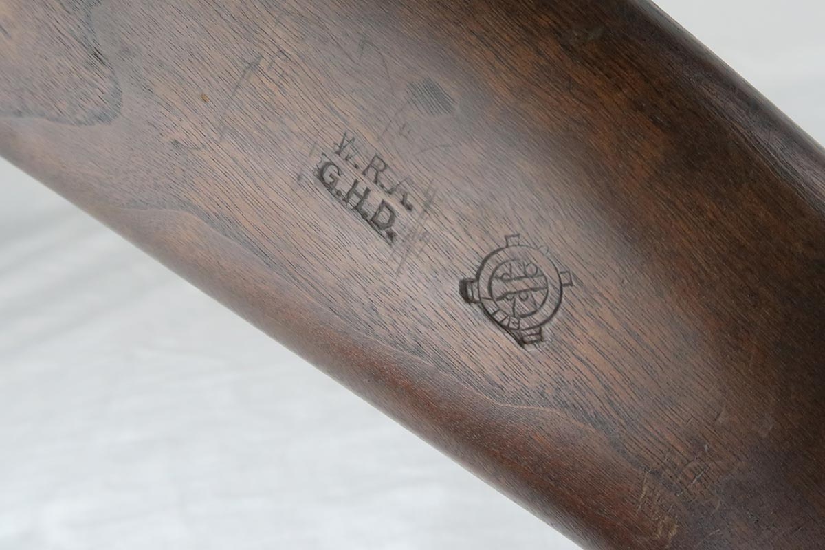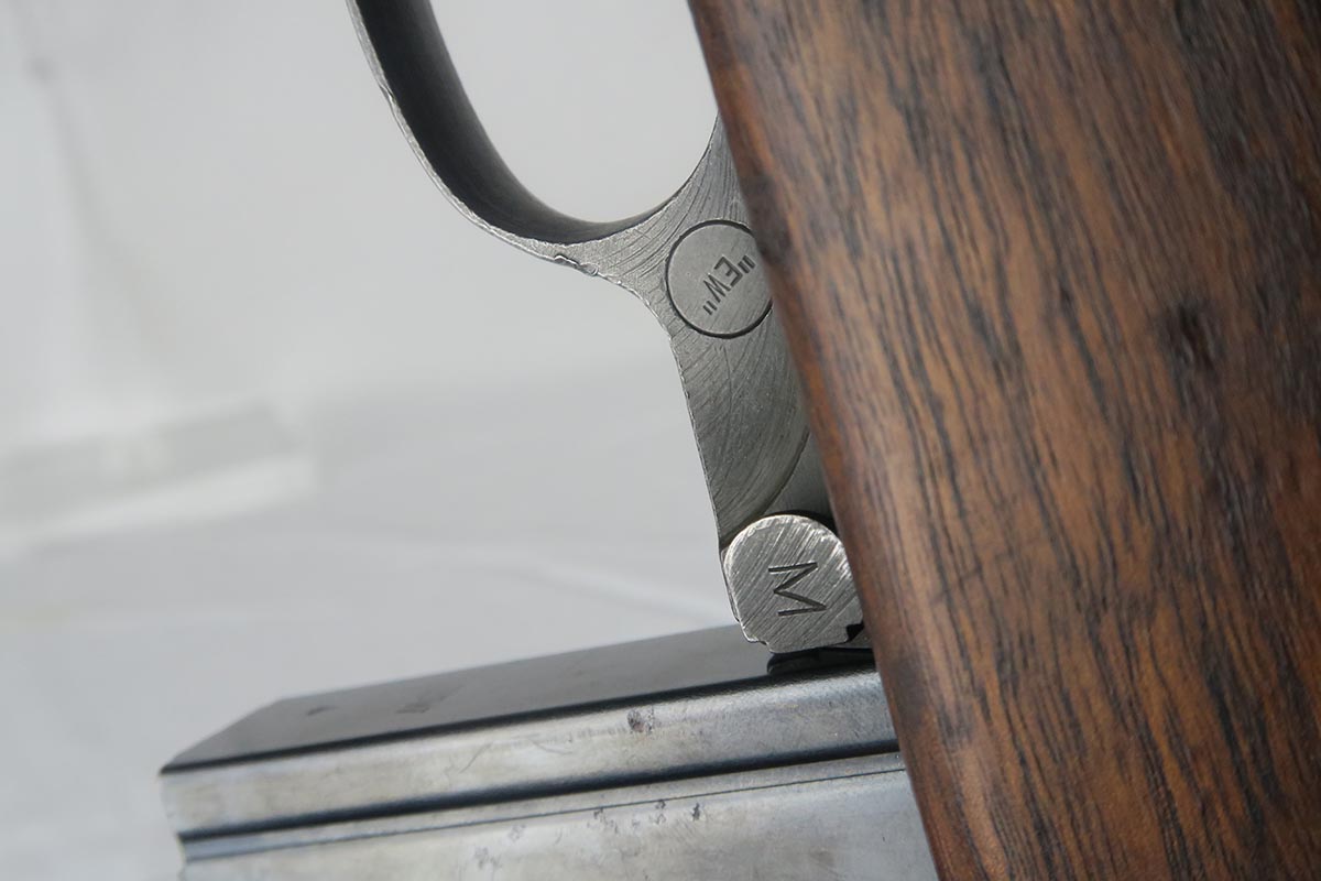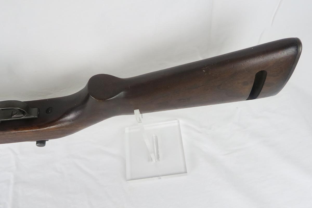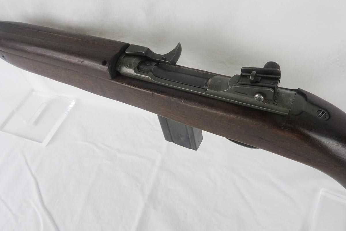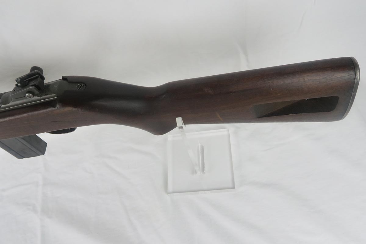 7/9/18 – This is a later 5 million serial Winchester M1 Carbine from late 1944.  It has the correct, adjustable sight as those were install starting in late ’44.  Low wood stock, no bayo lug.  Excellent cartouche and inspector marks on right side of the stock.  Correct wide barrel band and ‘M’ marked mag release.  There is a notable surface scratch on the left side stock but it is not a crack.  Excellent bore and finish to metal.  Barrel is marked both ‘W’ and with the Winchester maker mark in oval.  Excellent bore.