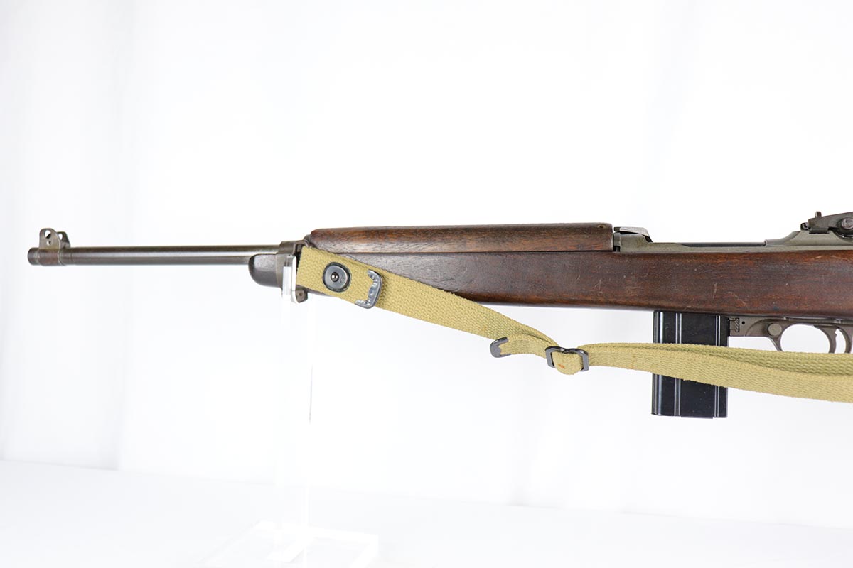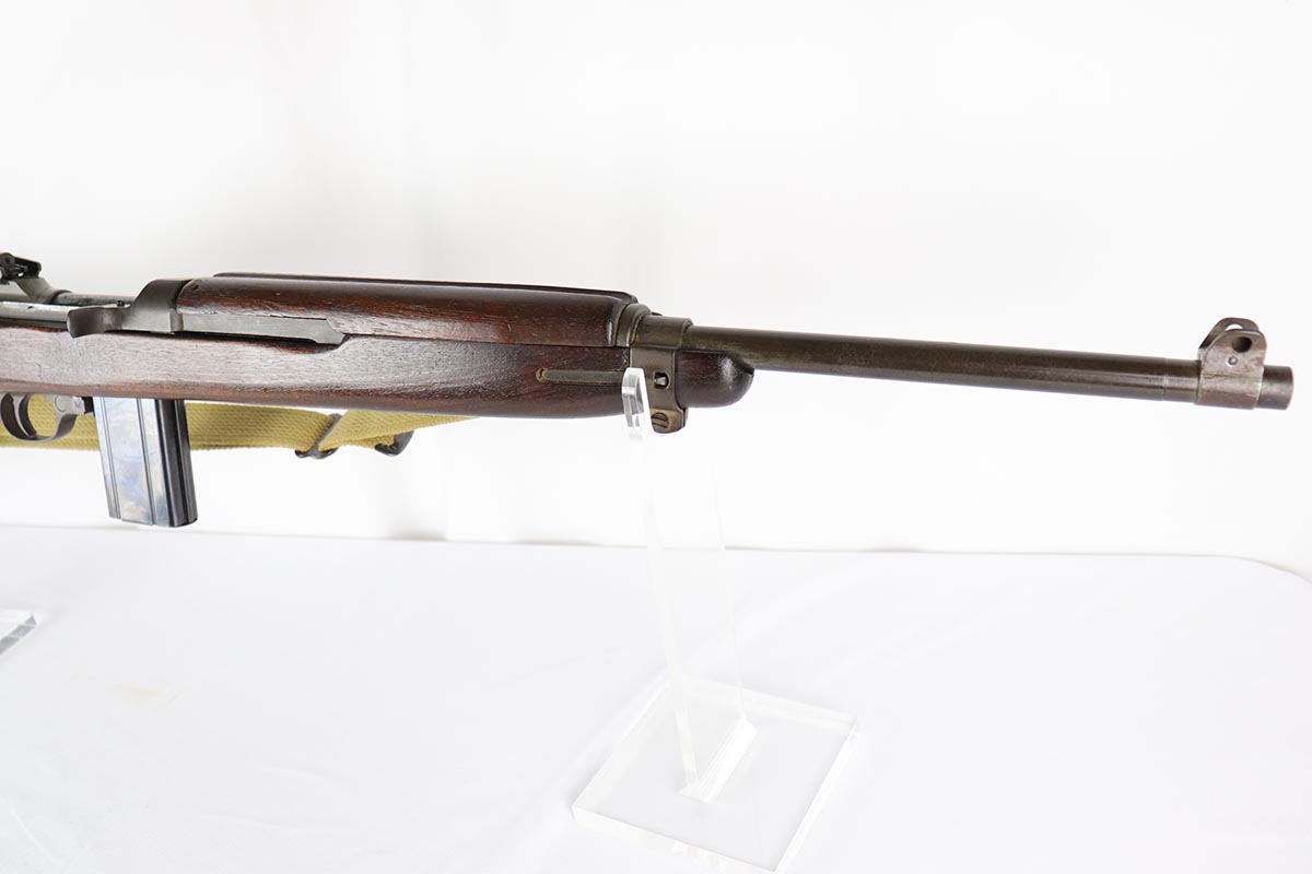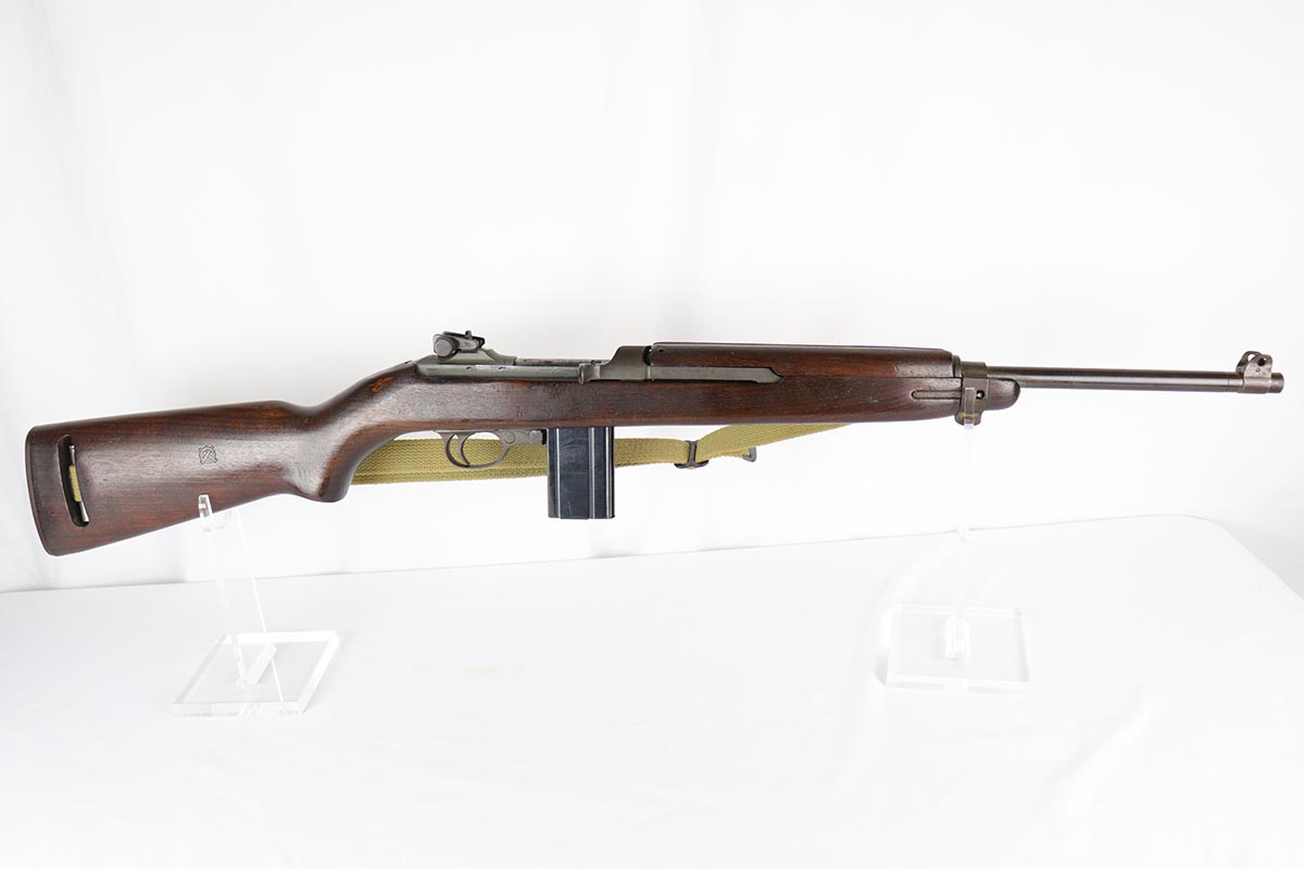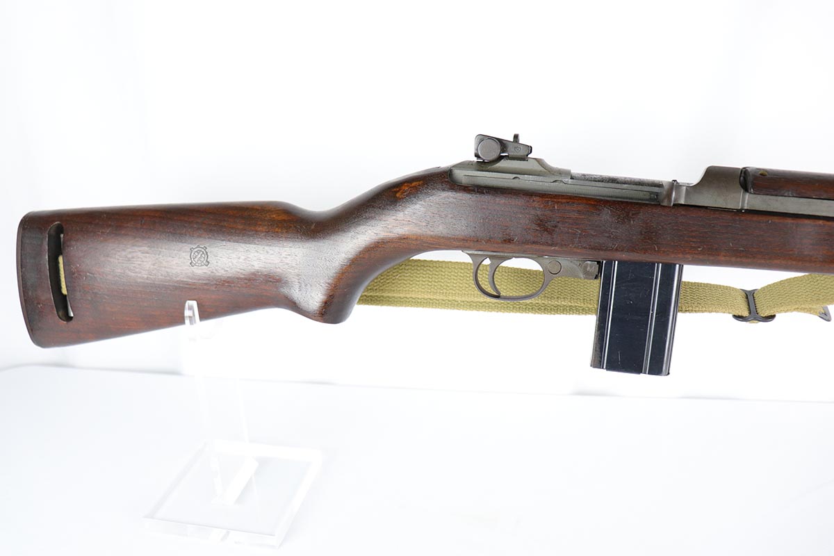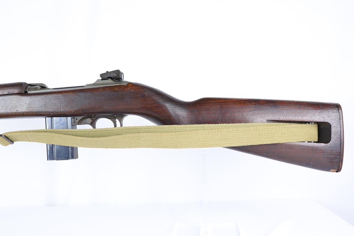 2/23/18 – This is a correct and original Winchester M1 Carbine from late World War 2 era. The finish and stock are original, and this rifle possesses correct late-war features such as the added adjustable sight. The metal is in very good condition with a nice receiver but some patina showing through on the barrel. Barrel is ‘W’ proofed. Stock has crossed cannons cartouche and no major cracks, just a chip near the butt plate. Original sling and a KI marked magazine. Serial number dates to February of 1944. Excellent bore.