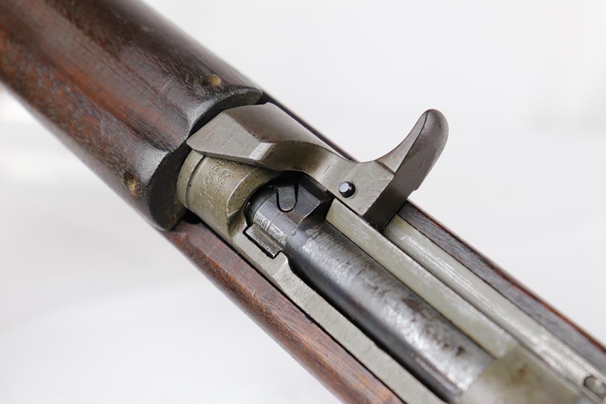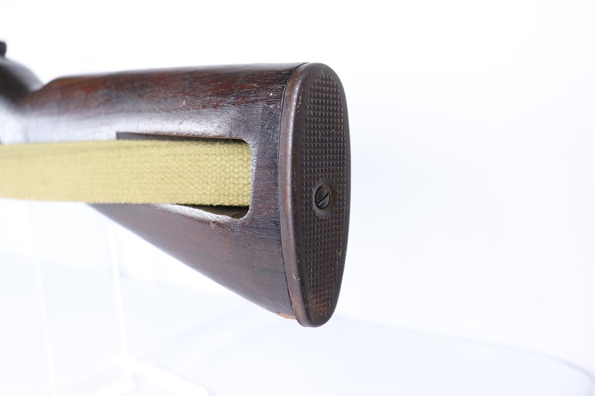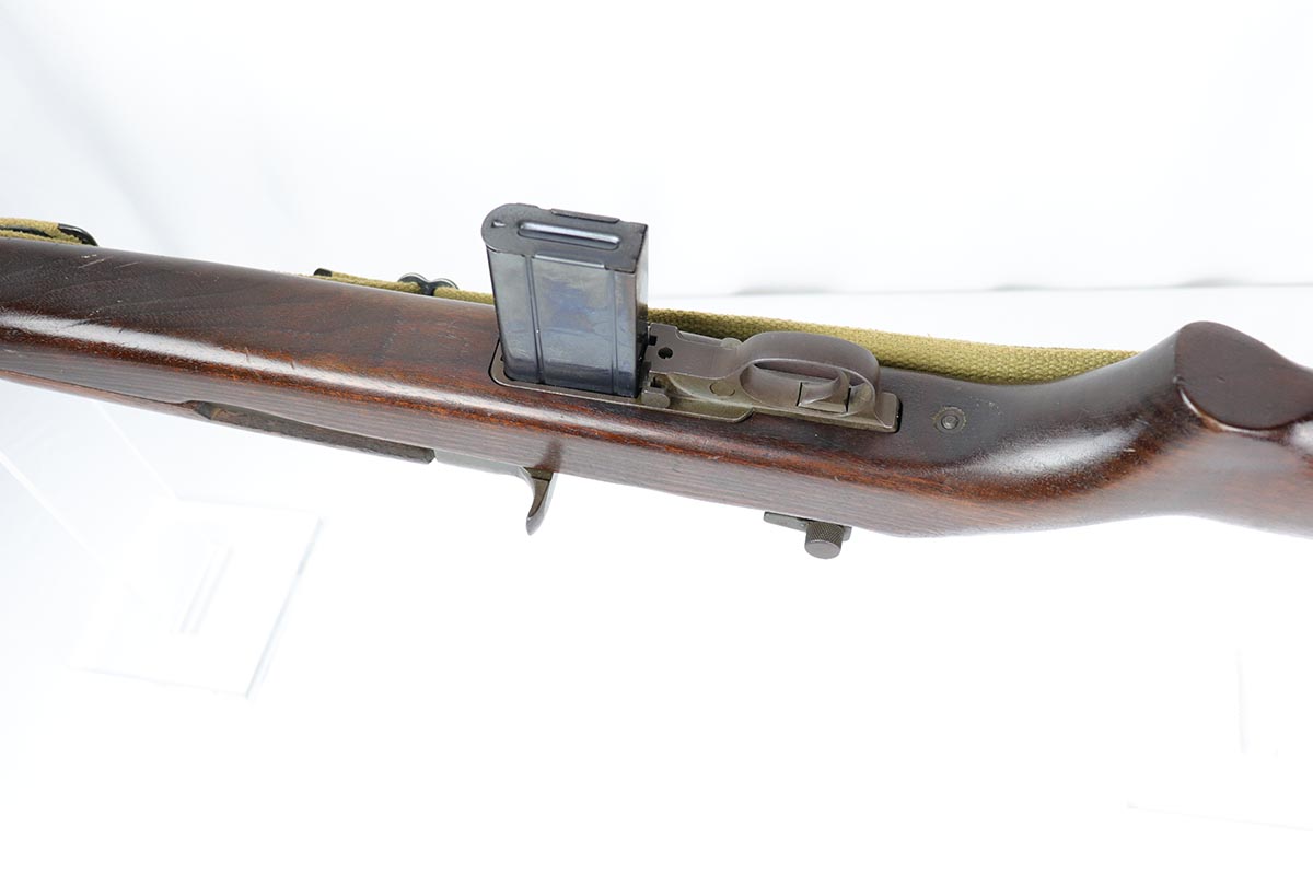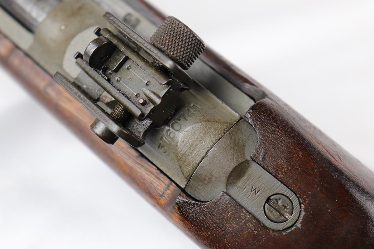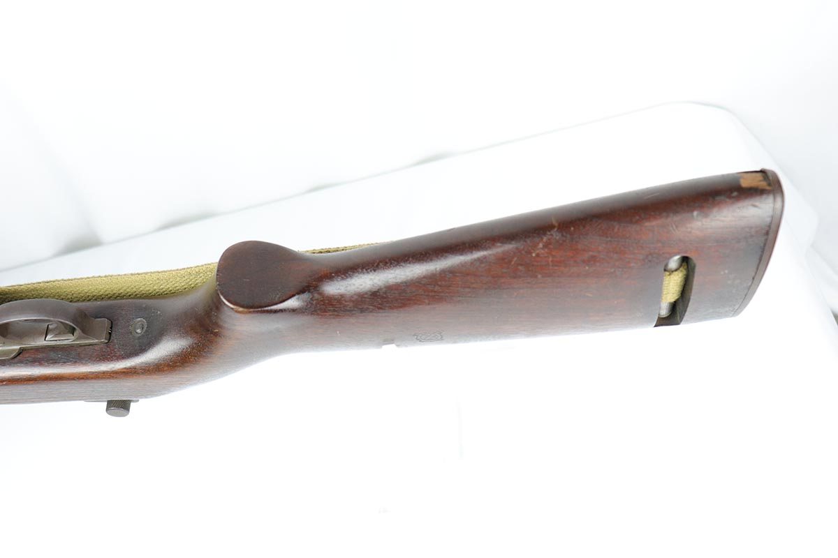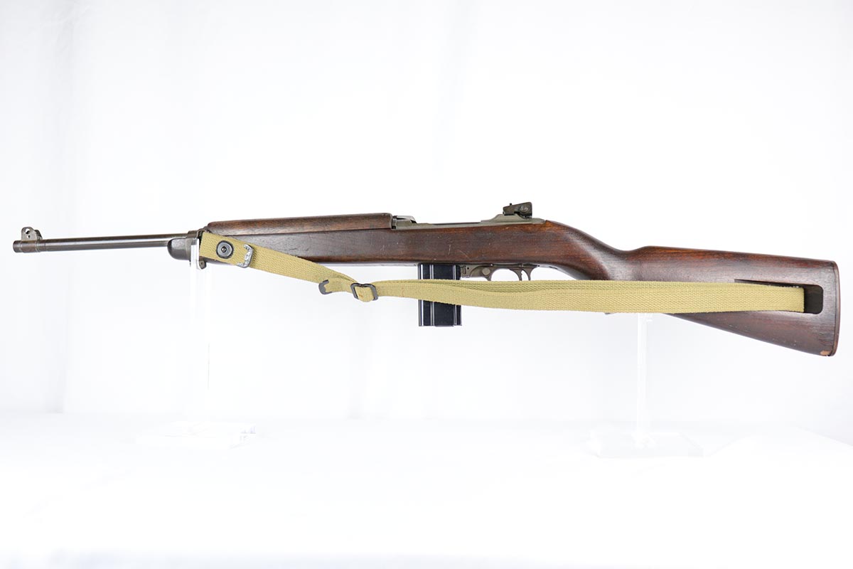 2/23/18 – This is a correct and original Winchester M1 Carbine from late World War 2 era. The finish and stock are original, and this rifle possesses correct late-war features such as the added adjustable sight. The metal is in very good condition with a nice receiver but some patina showing through on the barrel. Barrel is ‘W’ proofed. Stock has crossed cannons cartouche and no major cracks, just a chip near the butt plate. Original sling and a KI marked magazine. Serial number dates to February of 1944. Excellent bore.