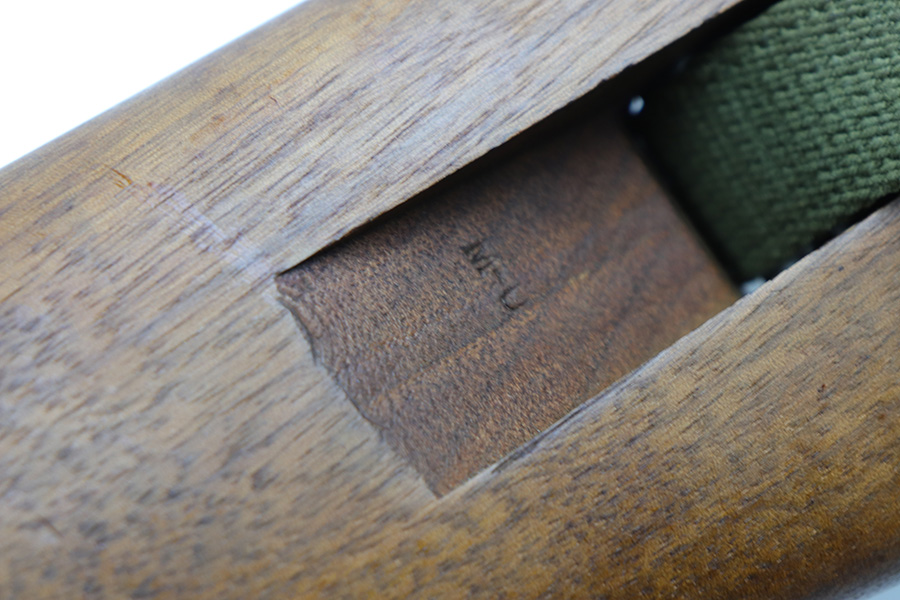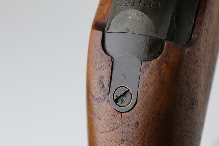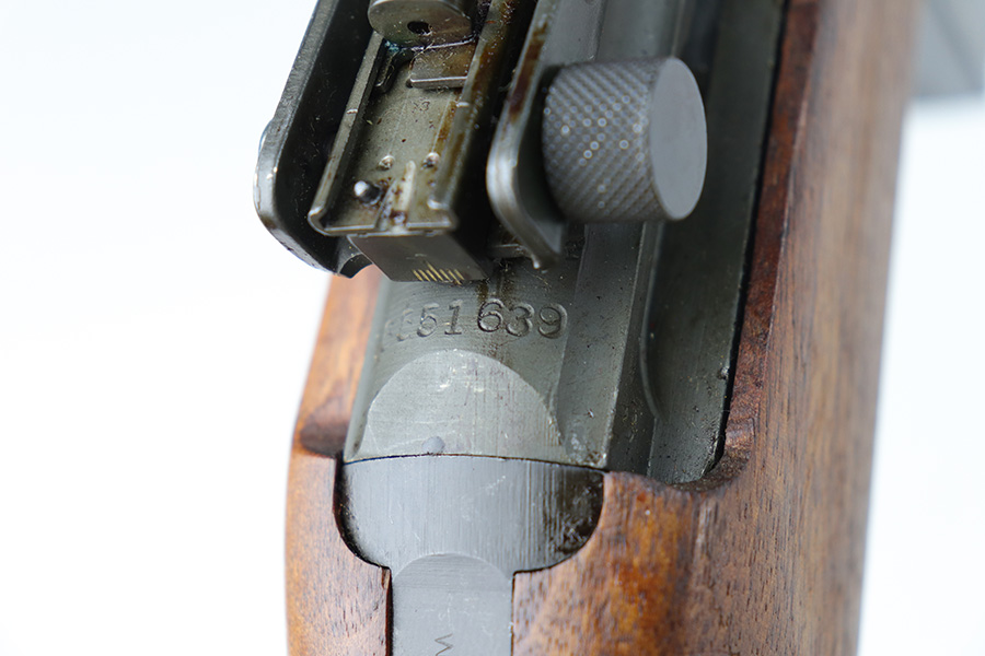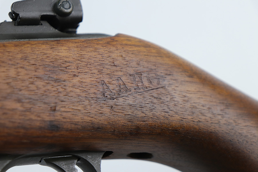 10/20/21 – This is an excellent example of a late-war Winchester M1 Carbine issued to the US military in late 1944 – early 1945. The gun was reworked, as evidenced by the “AAHO” arsenal marking on the stock. The stock was replaced and a bayonet lug and adjustable rear sight were added, likely for issue in the Korean War. A full parts list with markings is included below. The gun comes with a WW2-era sling, one proper magazine, and an oiler. The gun has retained most of its parkerized finish with areas of splotchy discoloration throughout. There are some light handling marks and surface scuffs on the barrel. The stock is excellent with just a few minor dings here and there. The bore is mint.