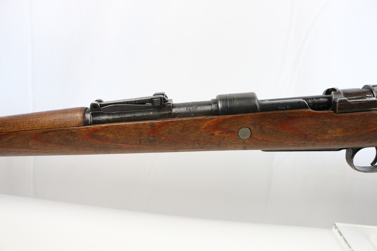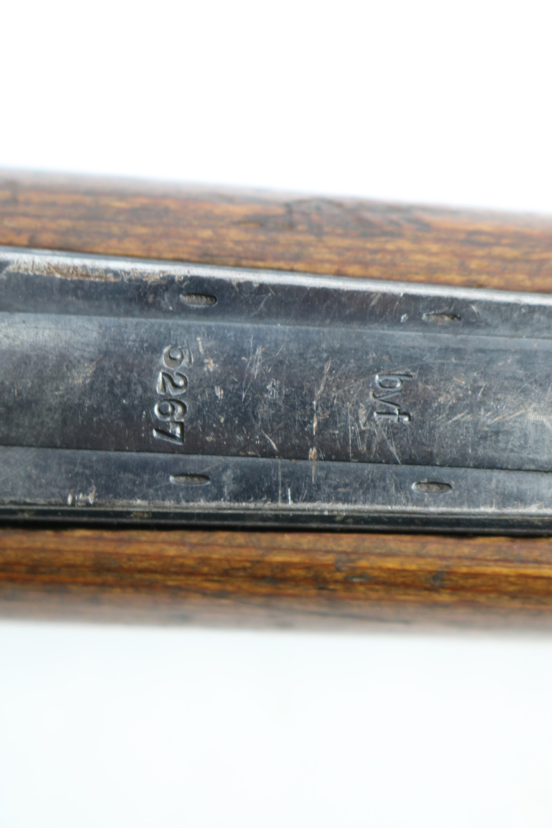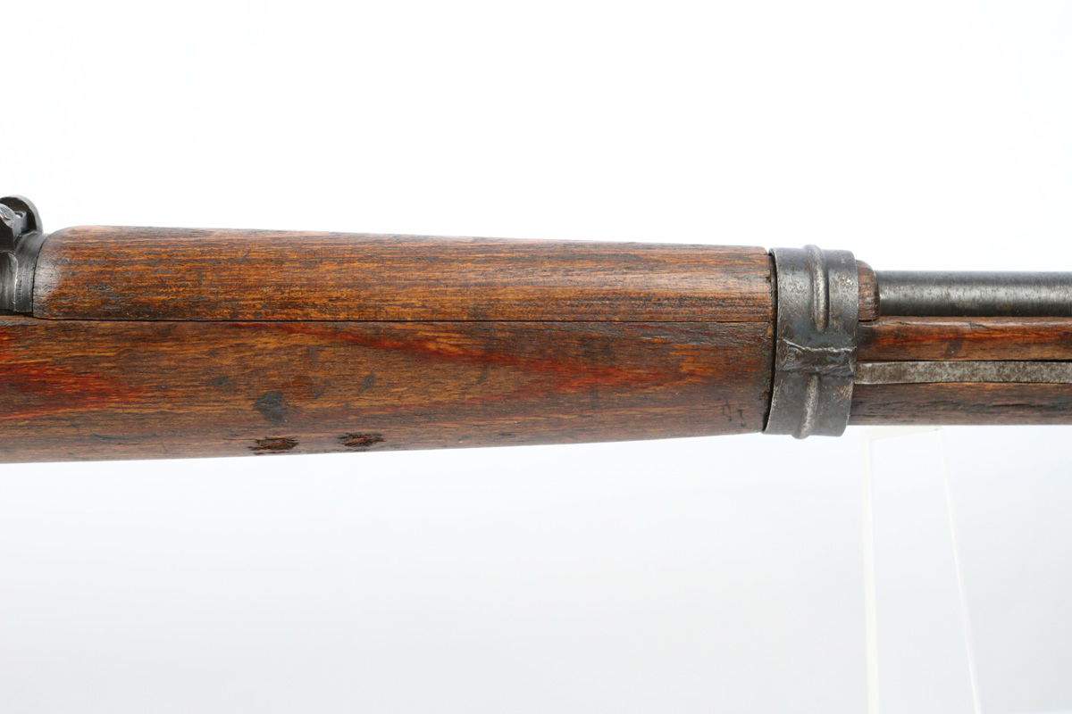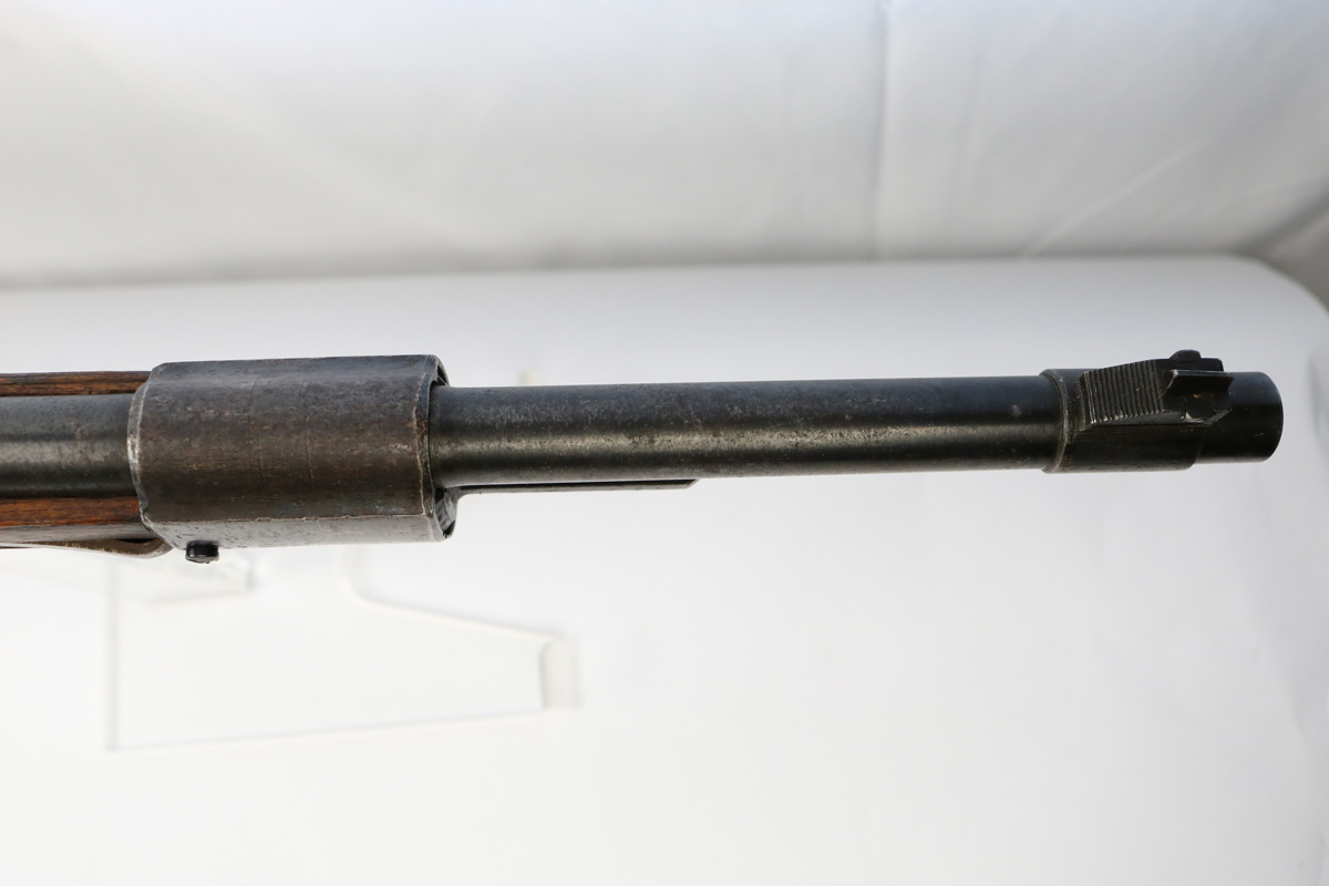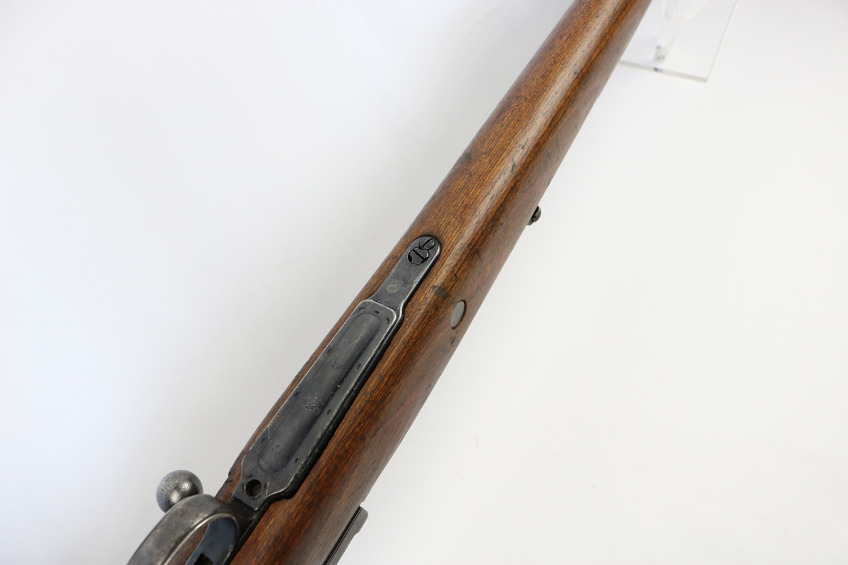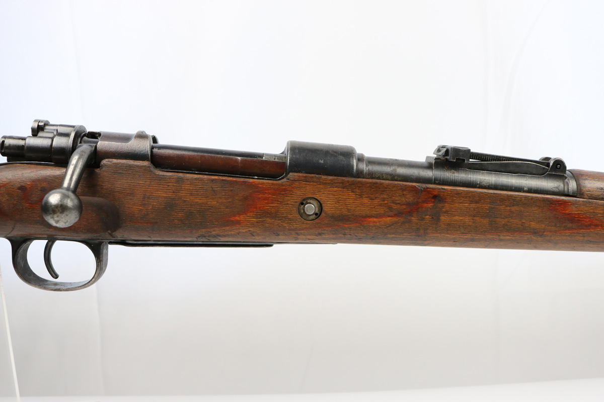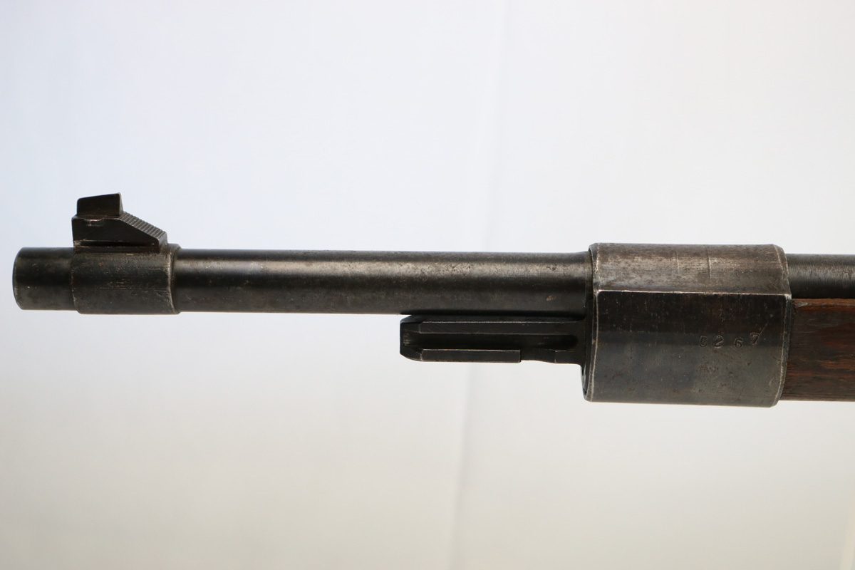 6/27/18 – This is a late WW2 production nazi K98 made in the Steyr factory. The rifle is stamped on the receiver “BNZ 4”. The single digit “4” is significant to show this was late 1944 production. This explains why the stock lacks waffen proofs or a serial number. Rifles produced hastily at the end of the war often times left the factory without all of the “official” or “proper” stamps. We guarantee this stock is original and period correct. The stock has some normal scuffing, and the underside has a smell “chew” mark. No major cracks or chips though. The metal has normal patina and finish loss in some places. Throughout the barrel is some light brown patina. Overall we call this normal and honest wear. The rifle is all matching and correct. The bore is fairly clean but there is some signs of use, residue, and wear within the grooves. Rifling is in tact. Guaranteed original and authentic.