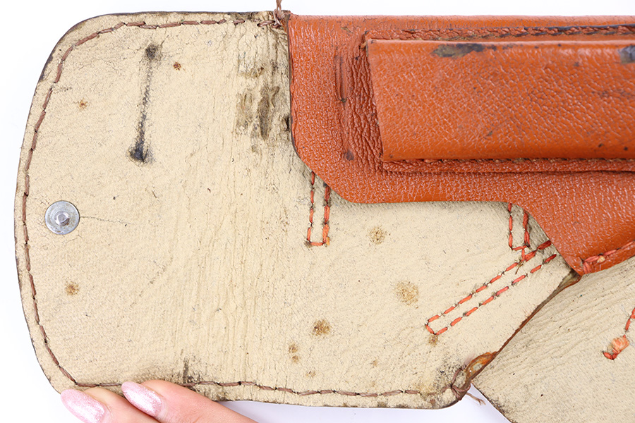 1/2/24 – This is a late / end of WW2 production Ersatz 7.65mm holster. The holster is unmarked with the only leather being the closure strap. The stitching is crude but all original throughout this example. There’s some surface scuffs and light wear but overall this example is in great condition considering these were crudely made. Fits most 7.65mm Axis pistols such as the HSC, 38h, and Walther PPK.