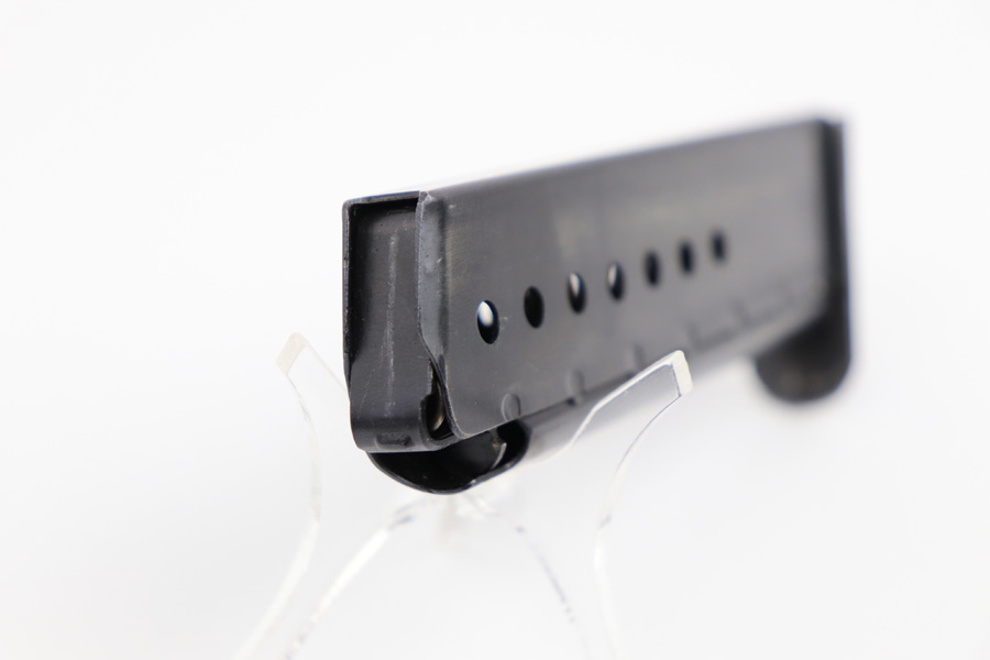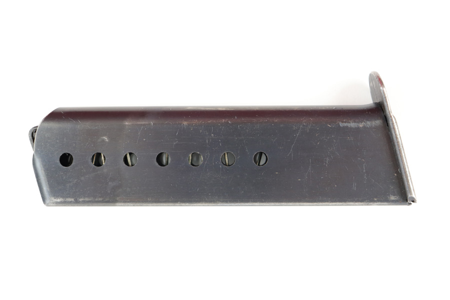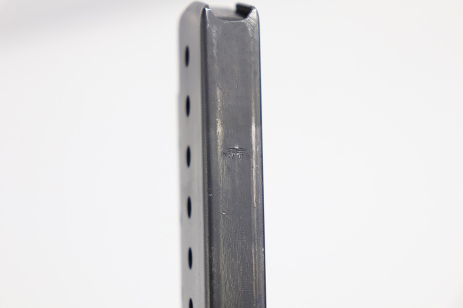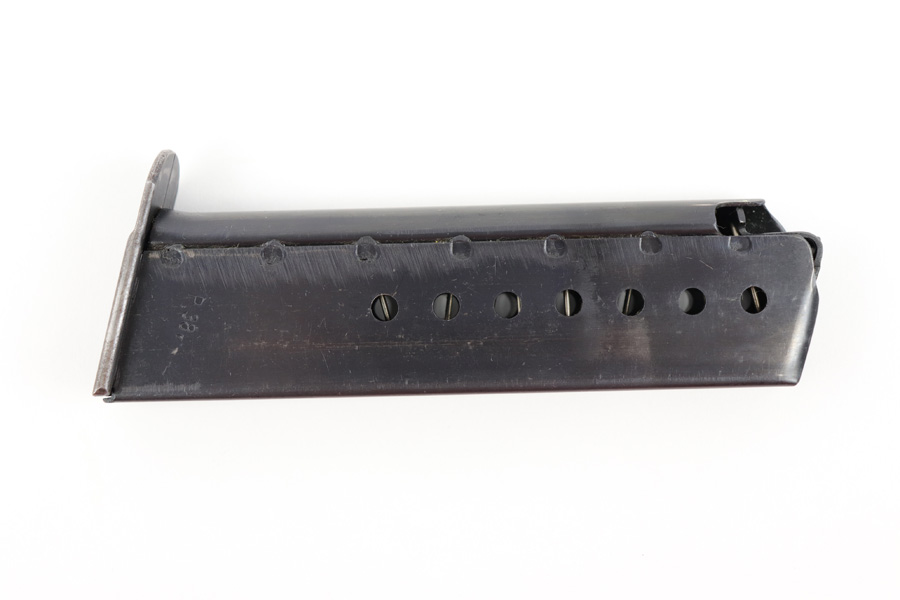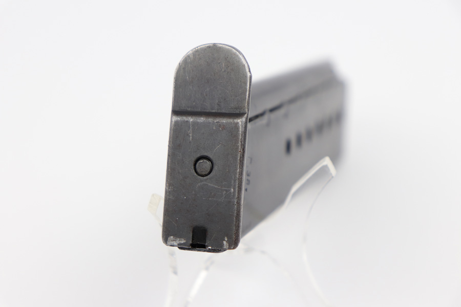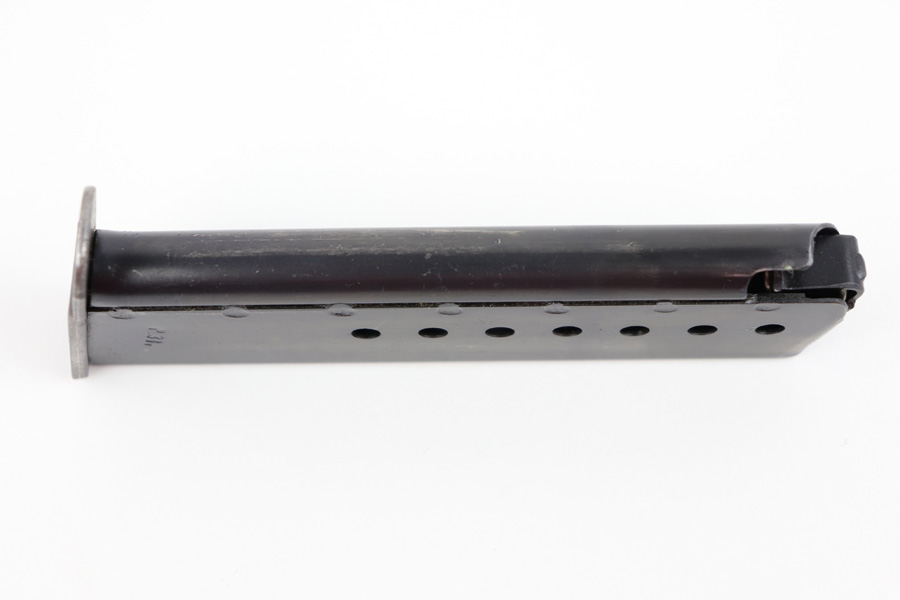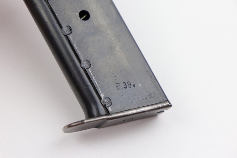 8/8/19 – This is an original late WW2 production P.38 magazine. The magazine is P.38v on the side of the frame, and waffen eagle WaA135 proof stamped on the spine. There are no other markings. Excellent bluing with minimal wear, and a strong fully functional spring. Perfect for a BYF 44 P.38 in similar condition!