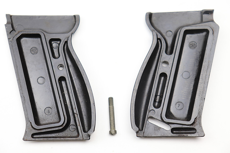 3/17/22 – This is an original pair of black bakelite P.38 grips made during WW2. The grips are in excellent condition with no cracks or chips. Comes with an original screw, as shown.