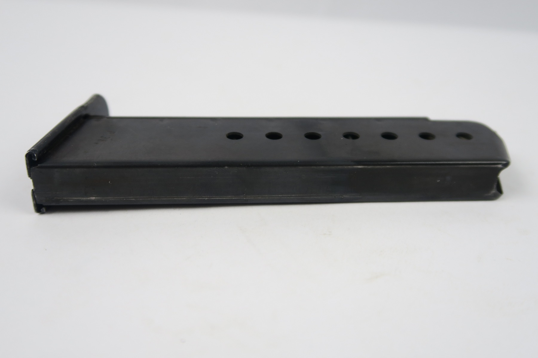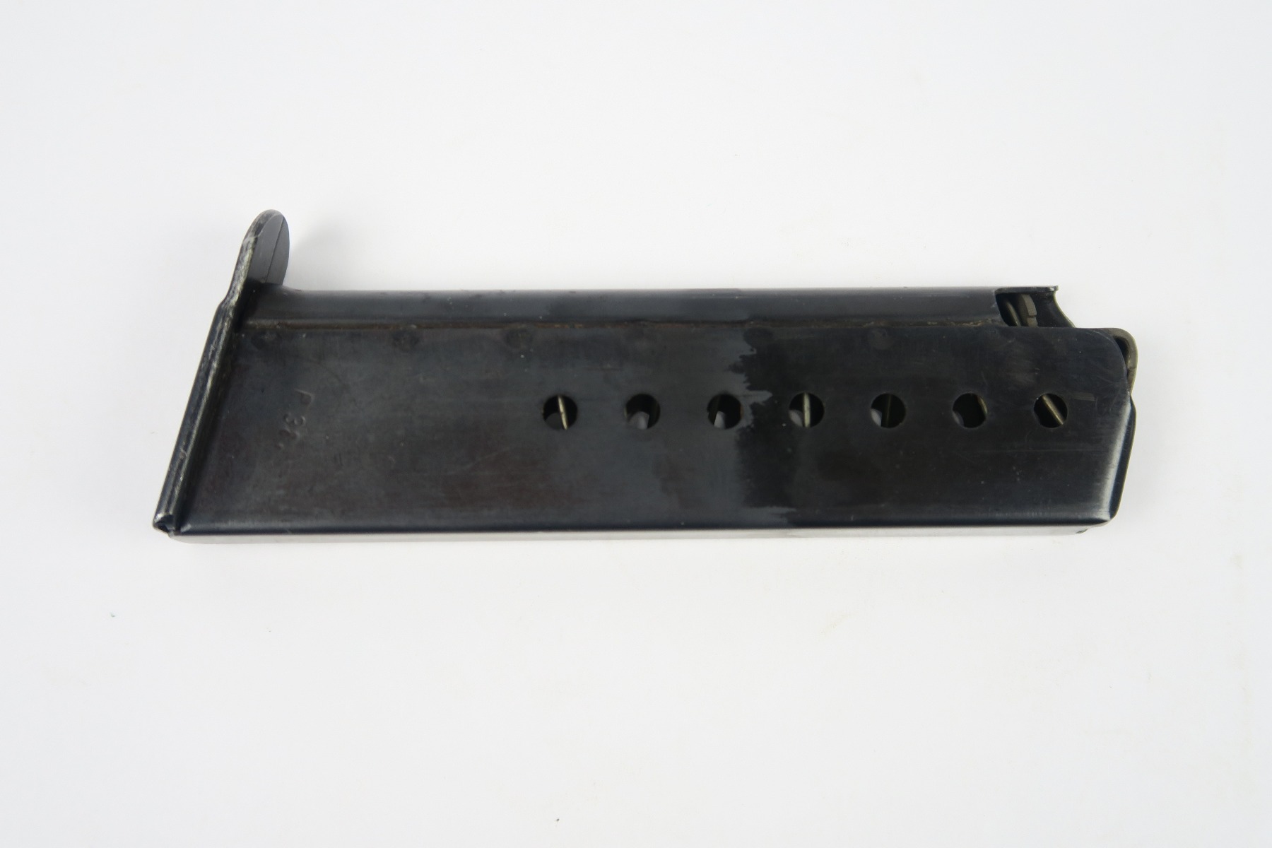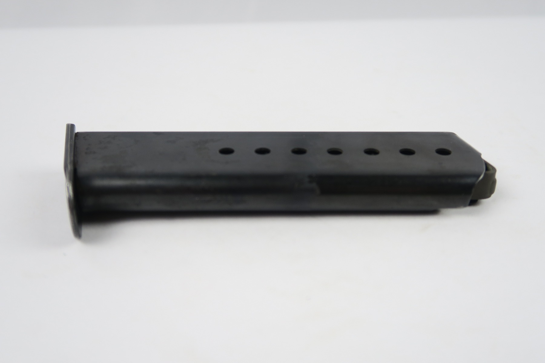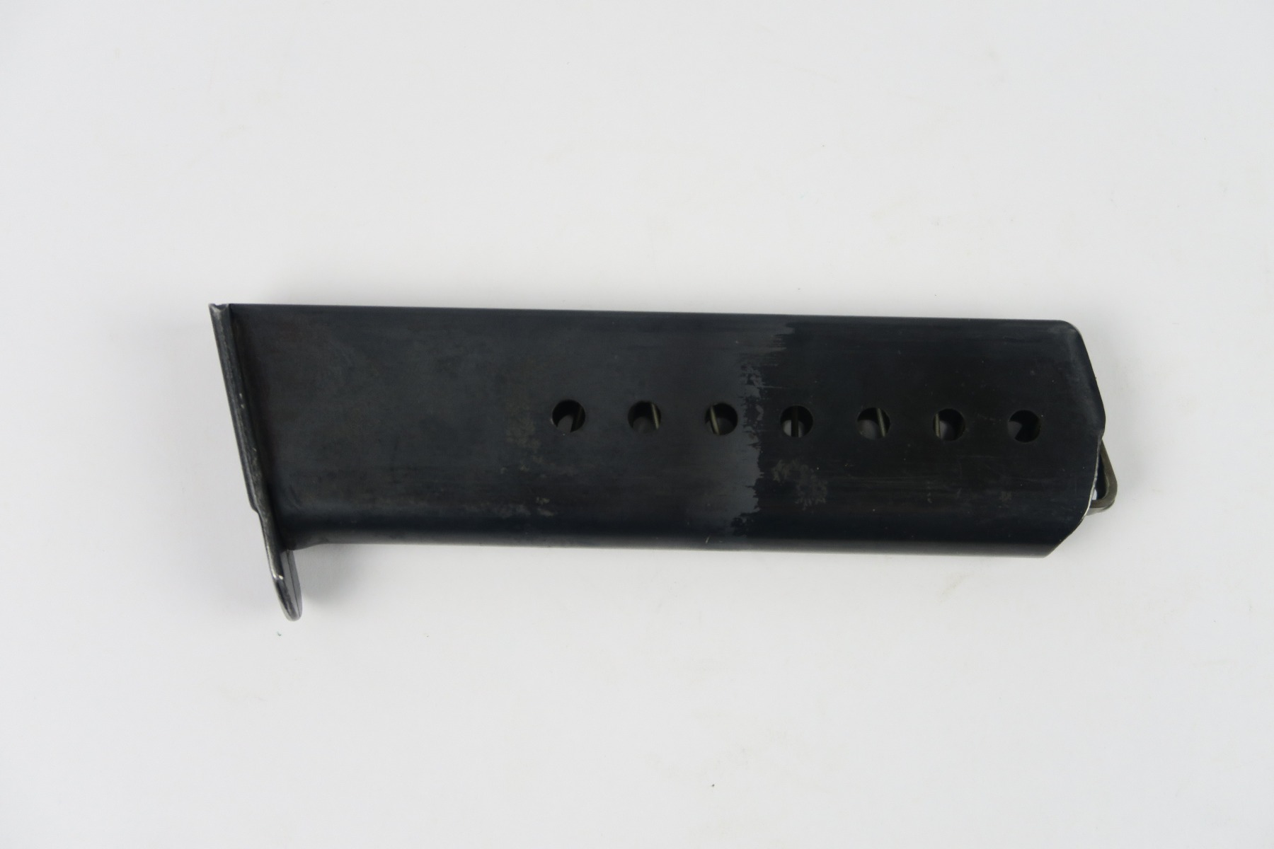2/10/18 – This is an original WW2 production P.38 magazine. The magazine is P.38v marked on the side of the frame, but there are no other markings. This is slightly unusual, because even late WW2 magazines tend to have at least a proof stamp on the spine. The magazine is most likely end-of-war due to the phosphate follower and lack of proofs. The magazine has no rust or pitting but there is some light patina on the frame. The bluing is a semi-two tone as well which is unique. Guaranteed original and fully functional.