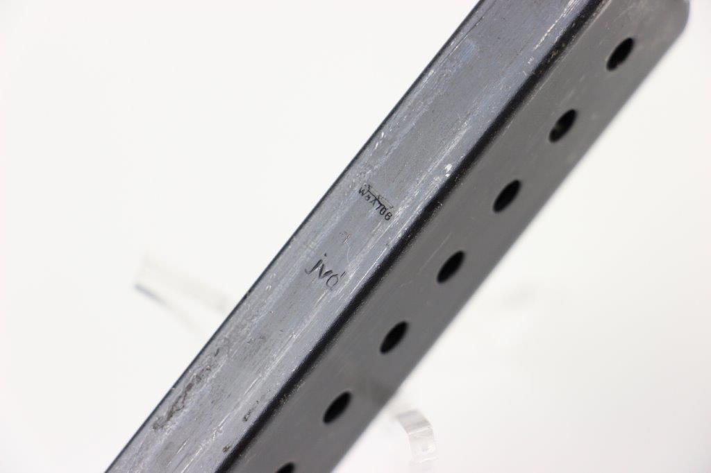 6/3/24 – This is an excellent condition, late WW2 production P.38 magazine. The magazine is stamped on the left side of the base “P.38 U”, where the U stands for unhardened metal (a late war feature). The spine of the magazine is stamped with a waffen military eagle WaA706 proof stamp, and “jvd” maker code. JVD was a subcontractor for P.38 magazines during WW2. This example has minimal finish loss and is truly excellent with a fully functional spring.