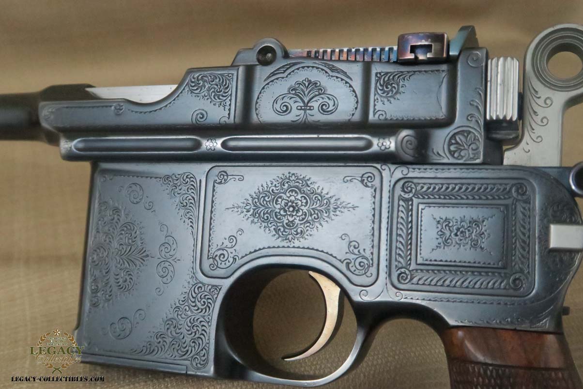 SOLD – Lavishly Engraved Mauser C96, Large Ring with Stock and Case