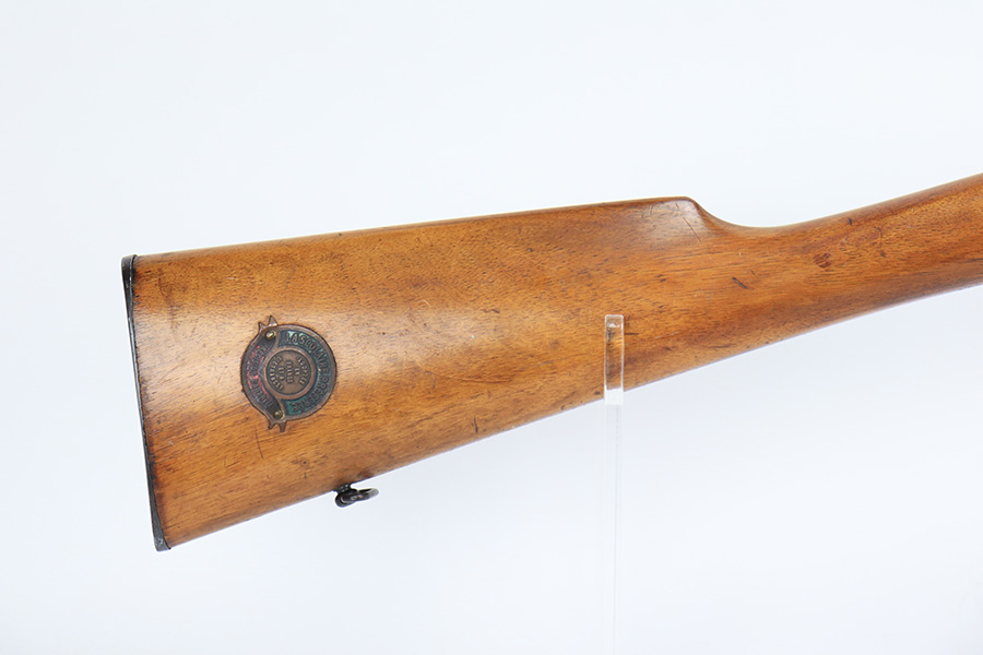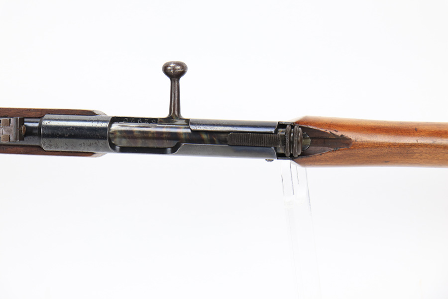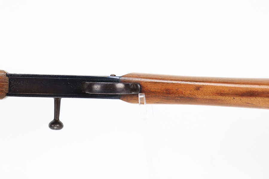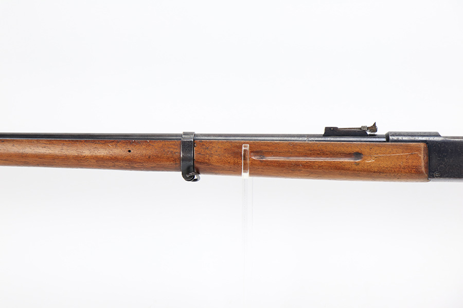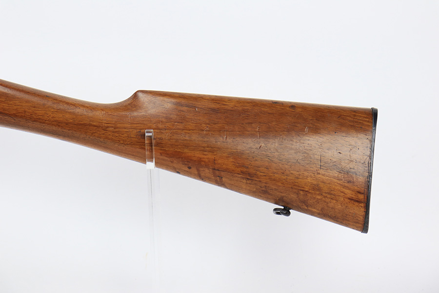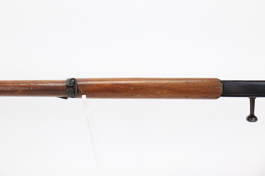 5/11/23 – This is a very nice example of a Lebel Model 1886 training rifle, manufactured in the late 1800’s, chambered in .22 Caliber, and used to train the French infantry. It is matching and has retained about 96% of its original finish. Excellent case-hardening intact on the bolt. There are areas of very minor thinning along the barrel and light spotty oxidation covering almost all of the metal parts. The wood furniture is in nice condition, just small bruises and light scratches here and there. Mint bore.