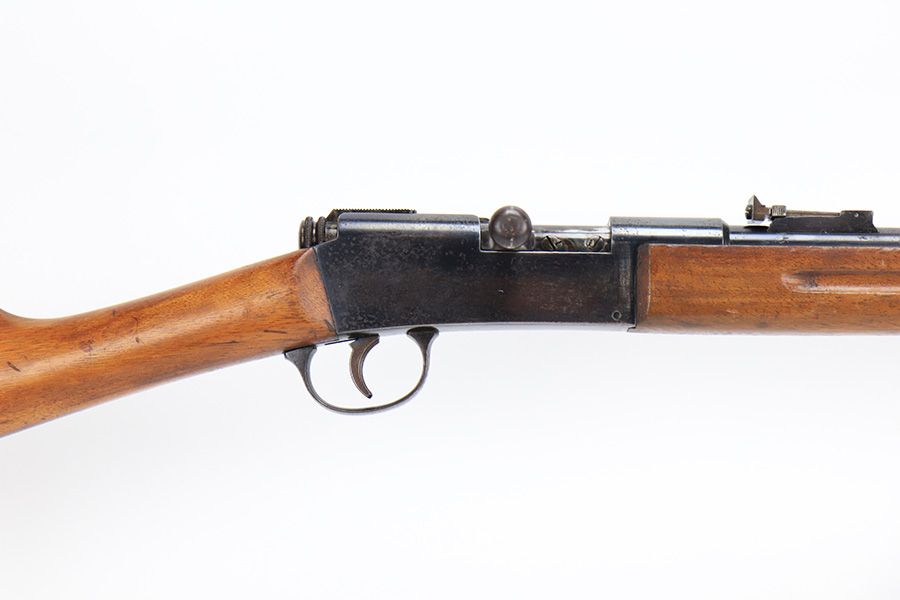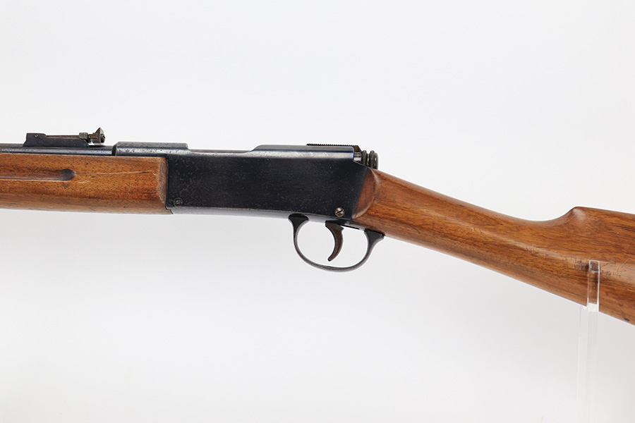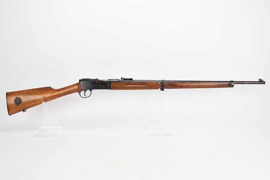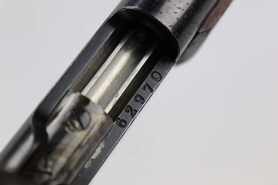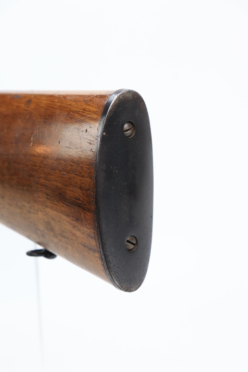 5/11/23 – This is a very nice example of a Lebel Model 1886 training rifle, manufactured in the late 1800’s, chambered in .22 Caliber, and used to train the French infantry. It is matching and has retained about 96% of its original finish. Excellent case-hardening intact on the bolt. There are areas of very minor thinning along the barrel and light spotty oxidation covering almost all of the metal parts. The wood furniture is in nice condition, just small bruises and light scratches here and there. Mint bore.