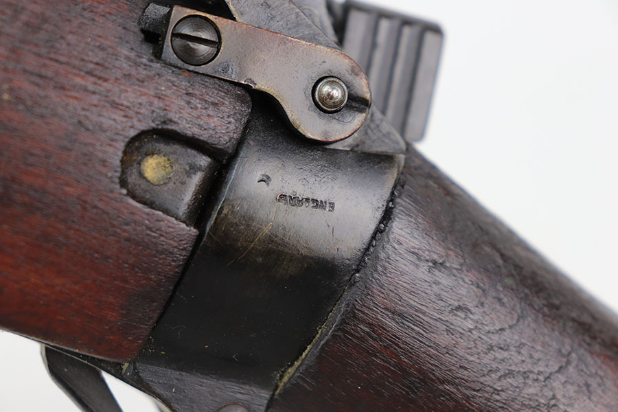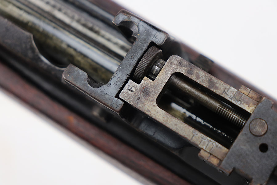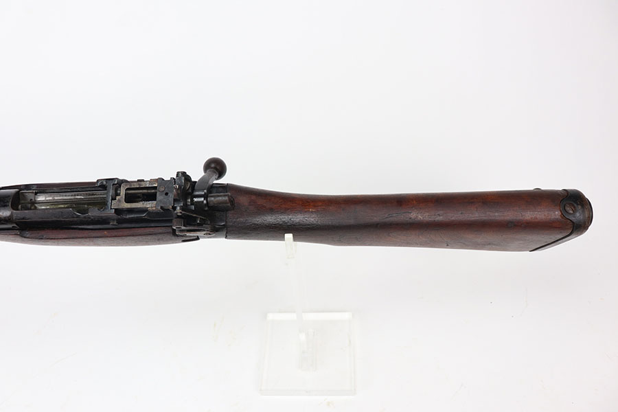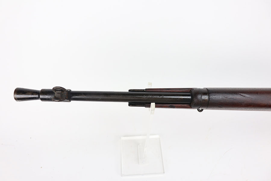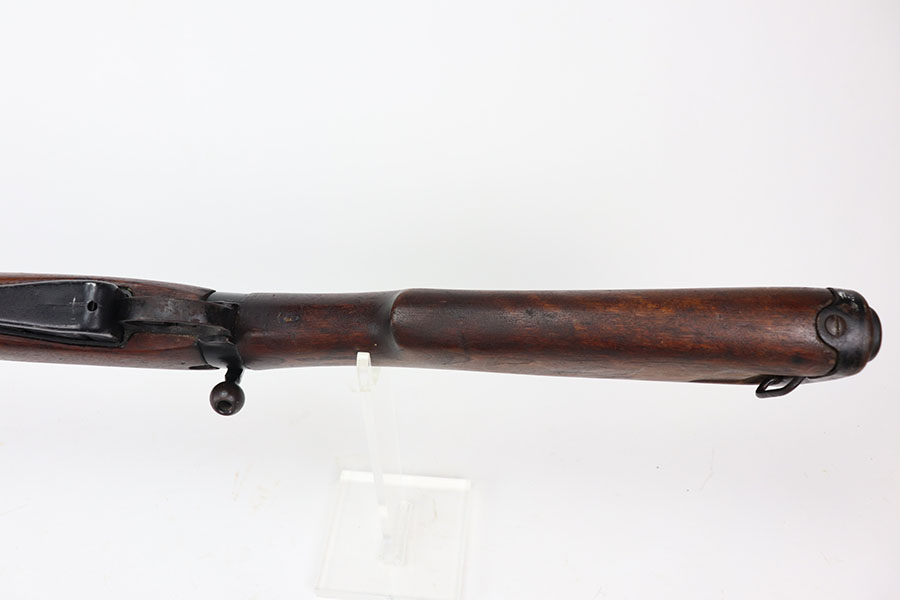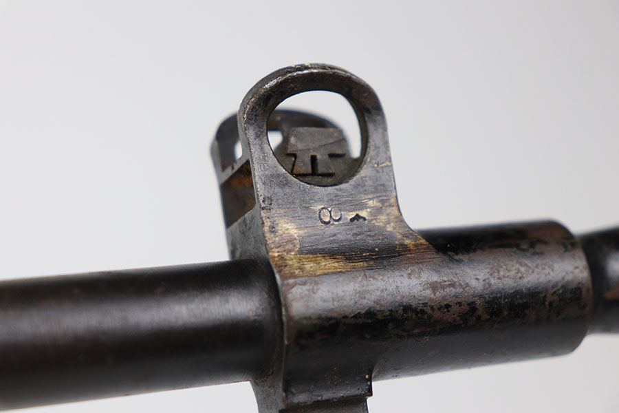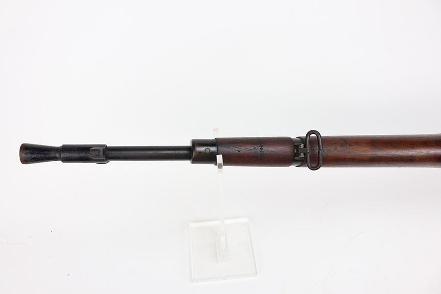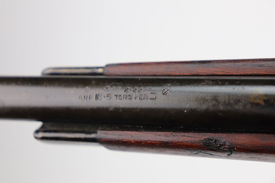 1/26/21 – The Lee-Enfield No.5 MkI gained its nickname, “Jungle Carbine,” from British troops who used the weapon in the Pacific Theater, but the name was never officially used by the military. The Jungle Carbine is a lighter, shorter variation of the No. 4 Mk I and was designed for use by British airborne forces. It is easily identifiable by the prominent flash hider that was designed to compensate for the increased flash that came with the shorter barrel. The rifle was only produced from 1944-1947 as it was ultimately seen as a flawed gun because it had a large recoil due to the short barrel and soldiers complained it had a “wandering zero.” Only about 250,000 of these rifles were produced. This particular Jungle Carbine was produced by ROF Fazakerley in November of 1944 and is in good condition with minor wear on receiver, and most of the finish loss on the flash hider. The wooden stock is in great shape, very few dings and no cracks. Terrific bore. This makes it a great gun to take to the range. There is an export mark on the top of the barrel. The rifle is chambered for .303 British.