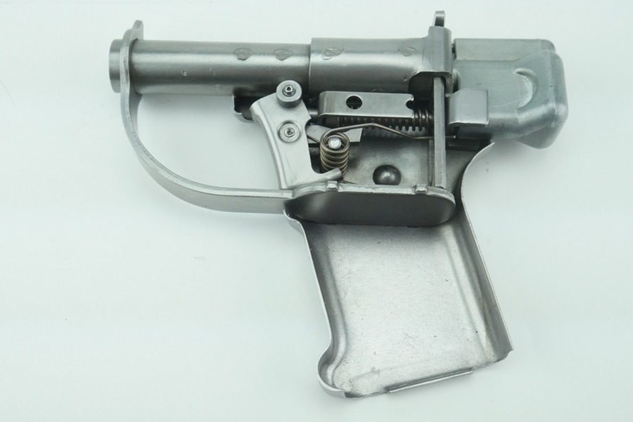 10/2/24 – This is an excellent example of a Vintage Ordinance Co. FP-45 Liberator cutaway dummy. These cutaways are dummy guns and cannot be fired, the barrels are made of two parts and are plugged, leaving no functional chamber. The striker assembly is capable of being pulled back and functions when the trigger is pulled. These dummy guns are referred to as “Study Models” by VOCO as they are show the internal workings of the FP-45 Liberator. This example is in excellent condition and is a fully functional dummy gun.