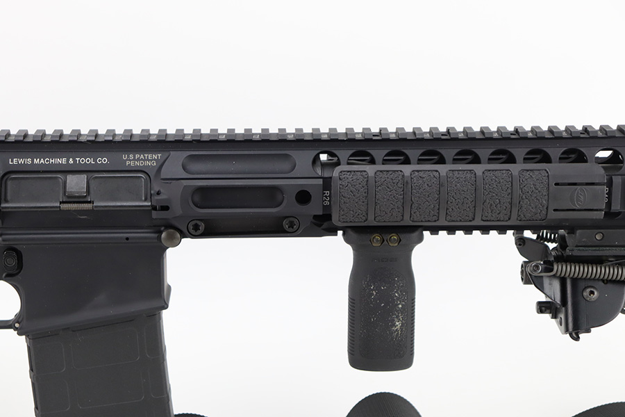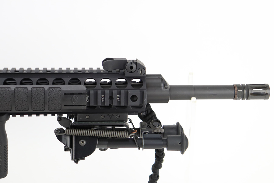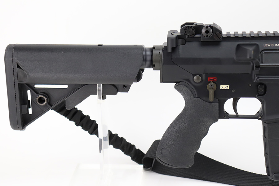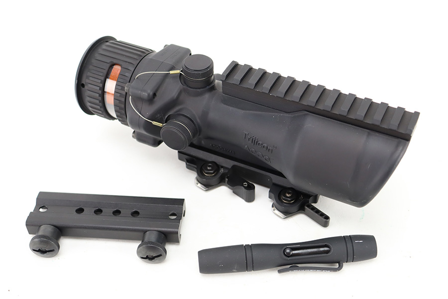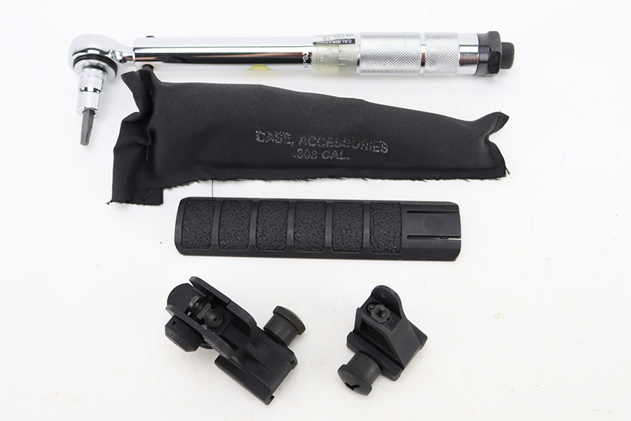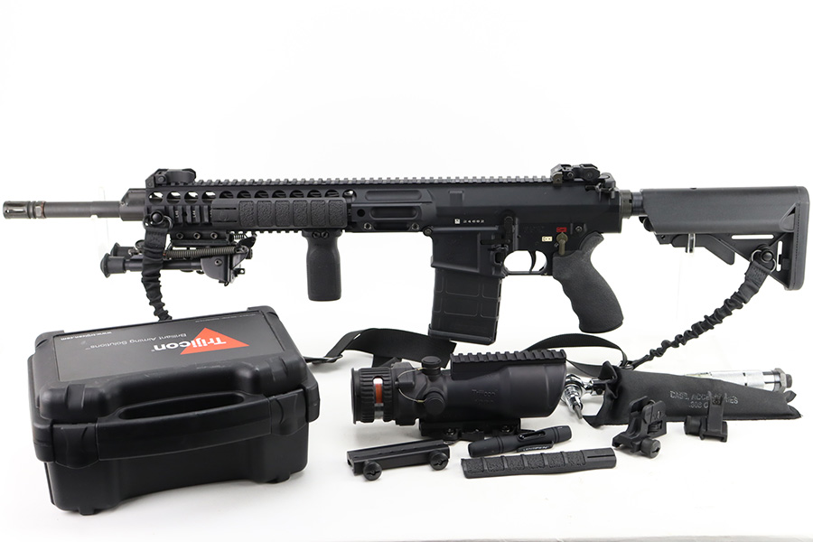 1/2/24 – This is a Model LM308MWS Semi Auto Rifle, manufactured by the Lewis Machine & Tool Co in Milan, IL. Chambered in 7.62x51mm or .308 Winchester. It comes equipped with a black canvas sling, adjustable stock, foregrip, and bipod. It also comes with a spectacular Trijicon ACOG 6×48 scope (with hard case), a Steiner Micro Reflex Sight (with box), owners manual, spare iron sights, and a torque wrench. The gun is minty with virtually no signs of wear or use. Mint bore.