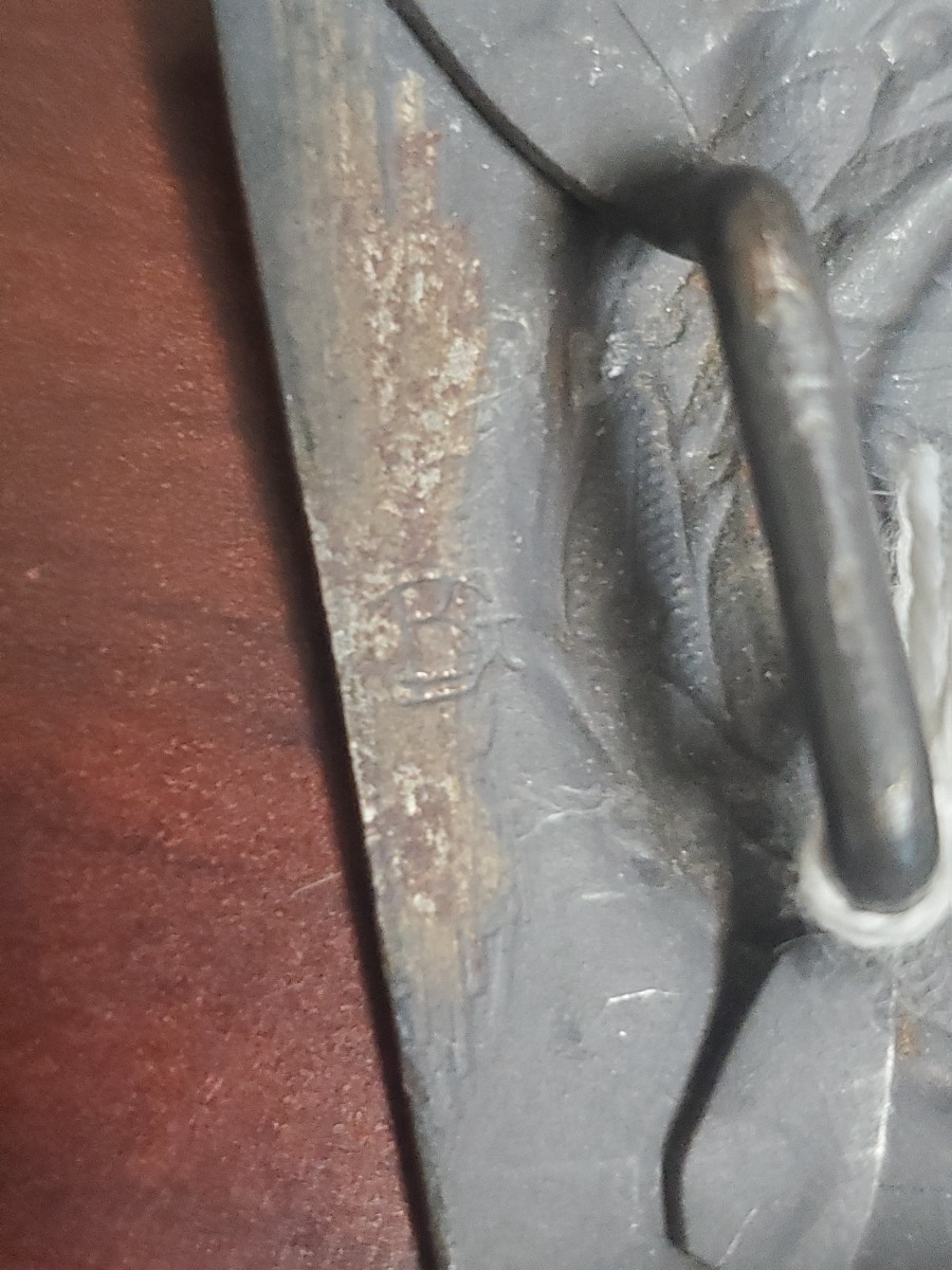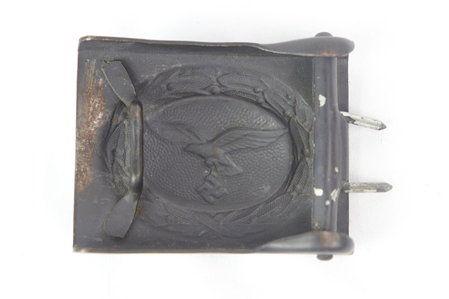 8/11/20 – This is an original WW2 luftwaffe combat belt buckle. The buckle has light patina on the front as well as light rub wear. The reverse has wear around the maker stamp “BG”. This is light surface patina and finish loss. Overall in good condition.