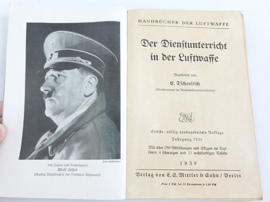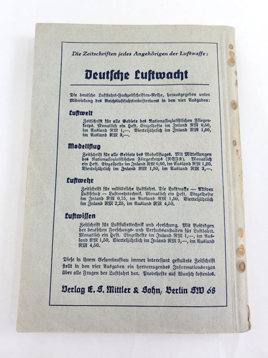 5/13/20 – This is a Luftwaffe training handbook from 1939. 290 pages packed with information on what you need to know to join the Luftwaffe. Some color images in the back, but most are black and white. All pages in tact.