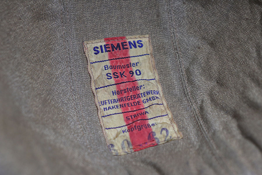 10/26/21 – This is a scarce SSK90 Luftwaffe Helmet from WW2. These helmets were made with the intention of having a canvas flight hat with headphones being worn underneath. The helmet has ear wells, and features a leather handle on the top of the helmet for easy removal after flight. The Luftwaffe didn’t like the look or function of these helmets, so they were only issued in service for 18 days during 1941. The helmet has some mild scuffs on the exterior but is in great shape overall. The interior shows the original tag and has no major issues. Excellent stitching throughout.