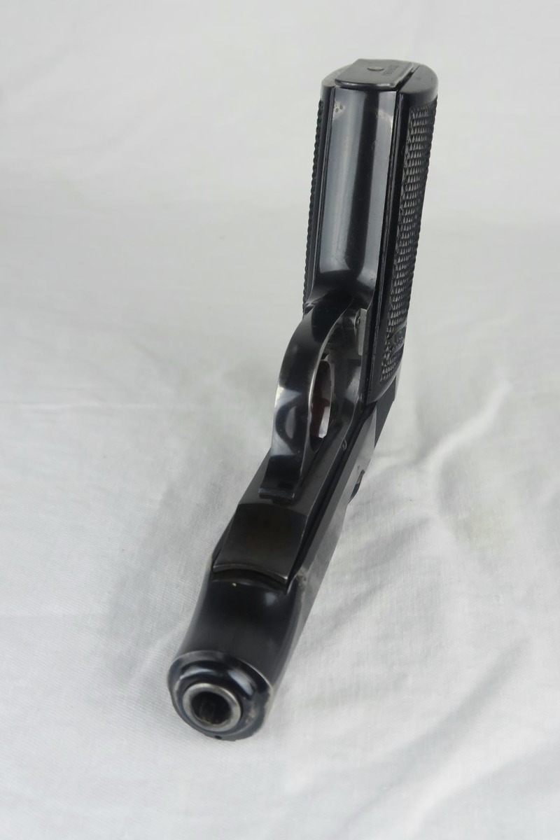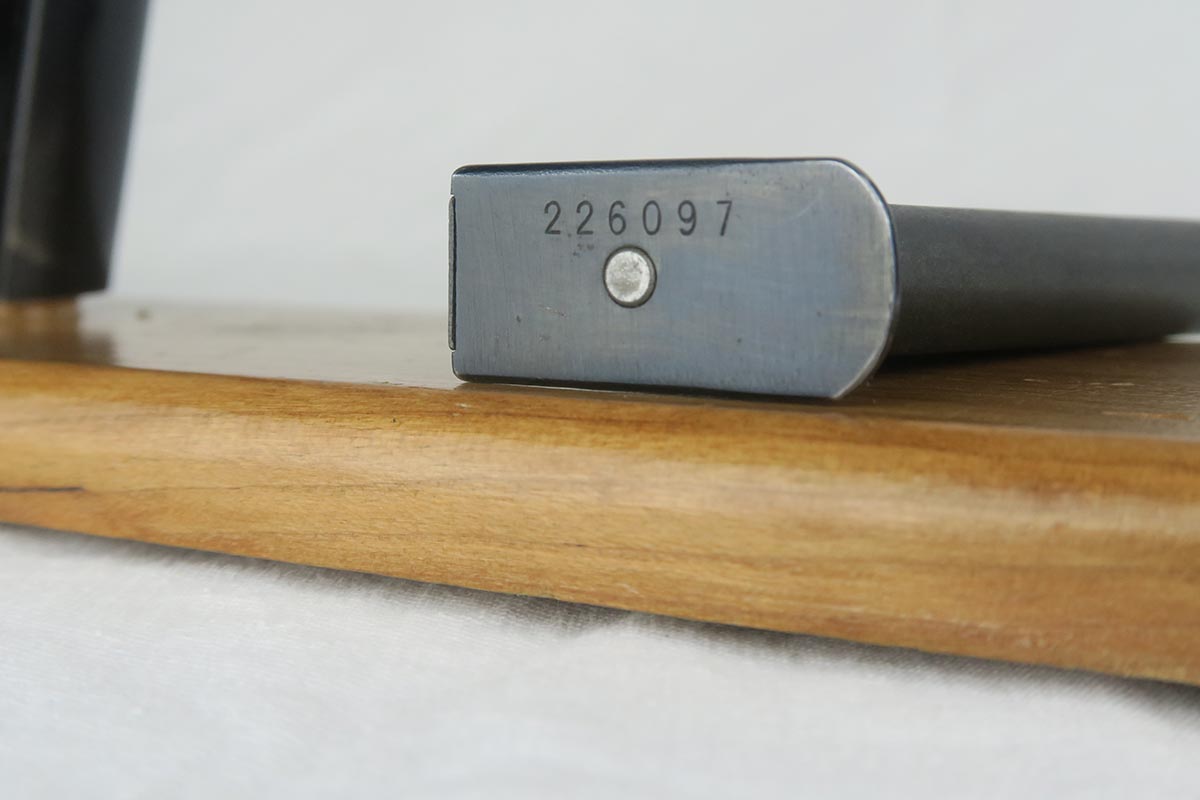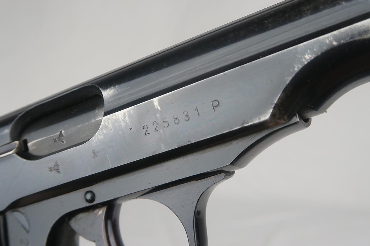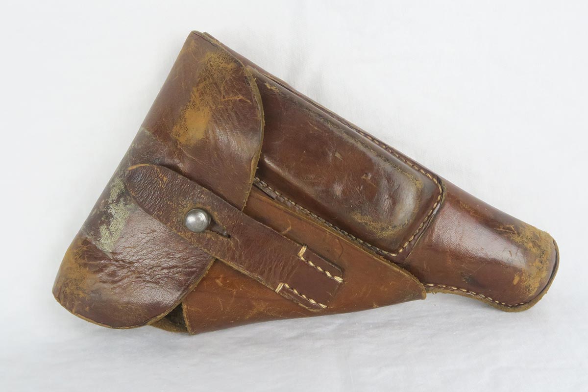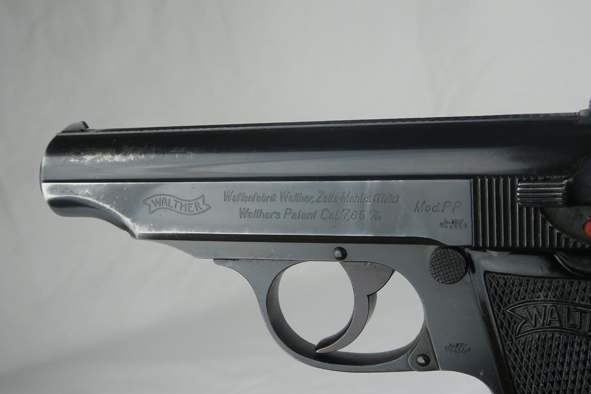 11/29/17 – This is an early waffen proofed PP made in 1941/42 with the early high polish finish.   The slide and frame are both numbered indicating it was most likely a Luftwaffe contract gun.  Also, the Luftwaffe PP’s are the only ones that came with numbered magazines (found on the bottom of the magazine).  This gun HAS such a numbered magazine but it is off by about 250 numbers. The finish and parts are all original and the grips are correct to the gun.  Finish rates in the low 90’s with holster wear on both sides of the slide.  The gun comes with a waffen 100 proofed holster, which is rare and desirable.  Inside the flap is the name of the Steglitz and a number.   This could be the officer who carried the rig in WW2 or the area where he was stationed as Steglitz is an area just outside of Berlin. My search seems to indicate there was a small Luftwaffe base in the Steglitz area.  Regardless of the meaning, the PP and PPk’s were favored among the pilots and officers.   A little bit of research could produce interesting results.