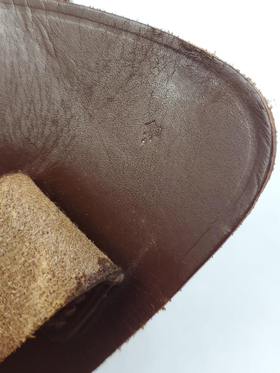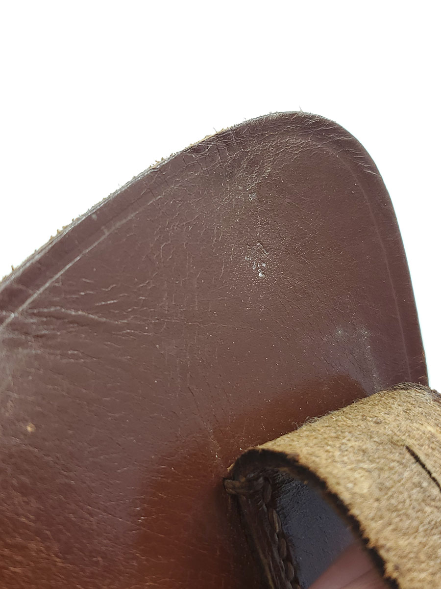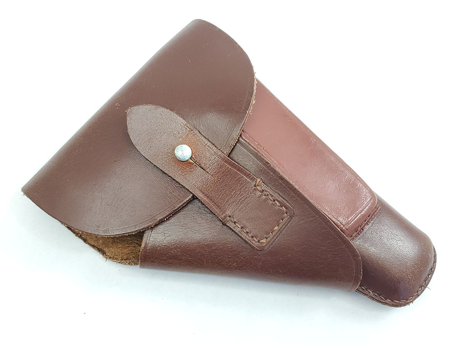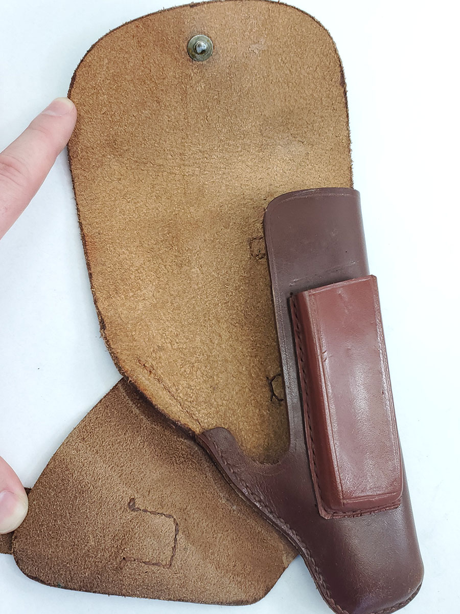 7/16/20 – This is an excellent, near mint condition Walther PPK holster. The holster is unusual, as it has a luftwaffe eagle/2 proof stamp underneath the closure strap. The stamp appears completely original, and we believe this is an original holster meant to be paired with a scarce luftwaffe PPK. The leather is strong and clean, as is all the stitching. this coincides with the crisp luftwaffe stamp.