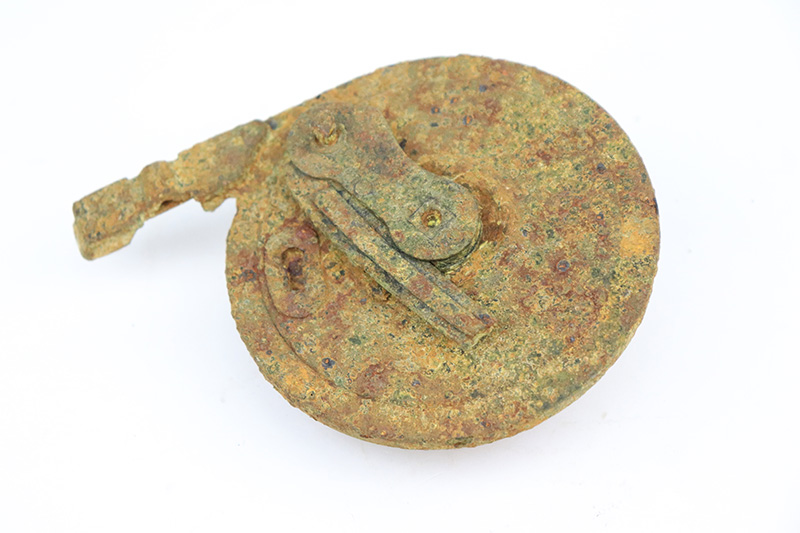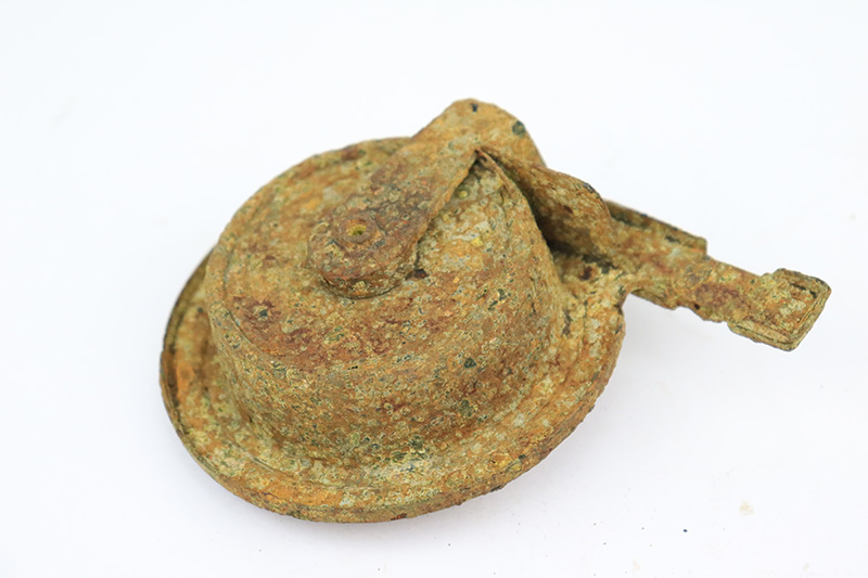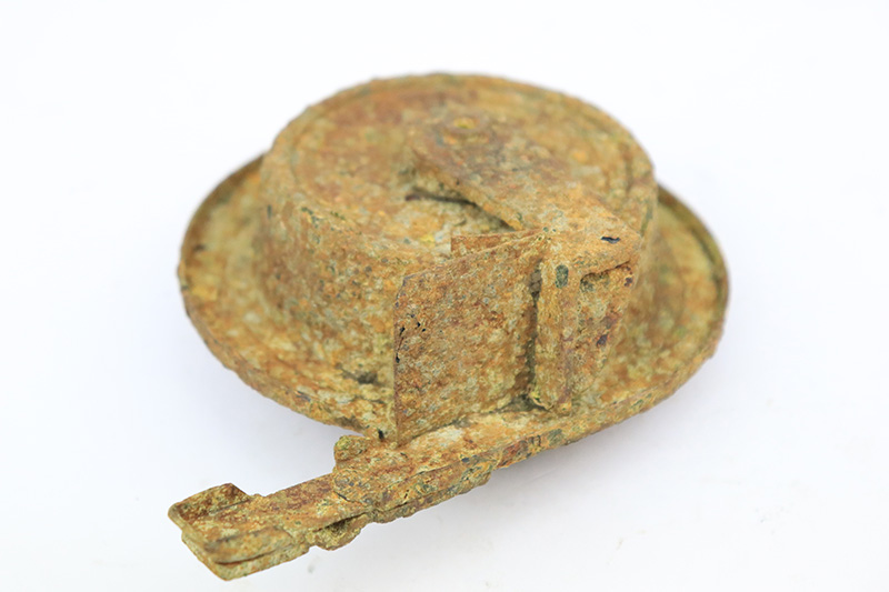 8/15/22 – This is a neat example of a Luger Drum magazine dug up on a WW2 battlefield. This item comes to us as part of a collection of dug-up relics found across Eastern European WW2 battlefields. The magazine is in poor condition but makes for an interesting display item.