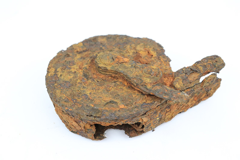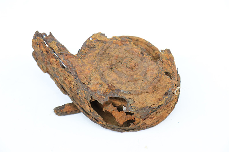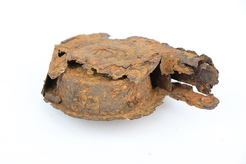 8/15/22 – This is a neat example of a Luger Drum magazine dug up on a WW2 battlefield. This item comes to us as part of a collection of dug-up relics found across Eastern European WW2 battlefields. The magazine is in poor condition but makes for an interesting display item.