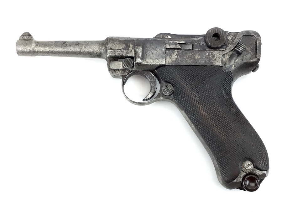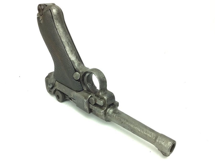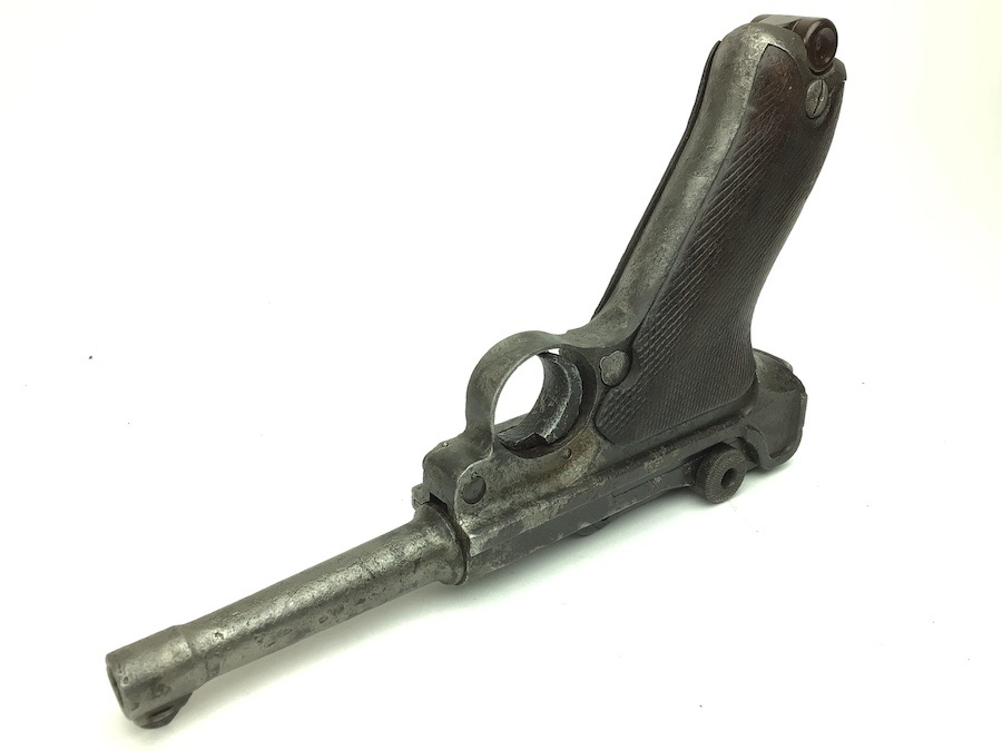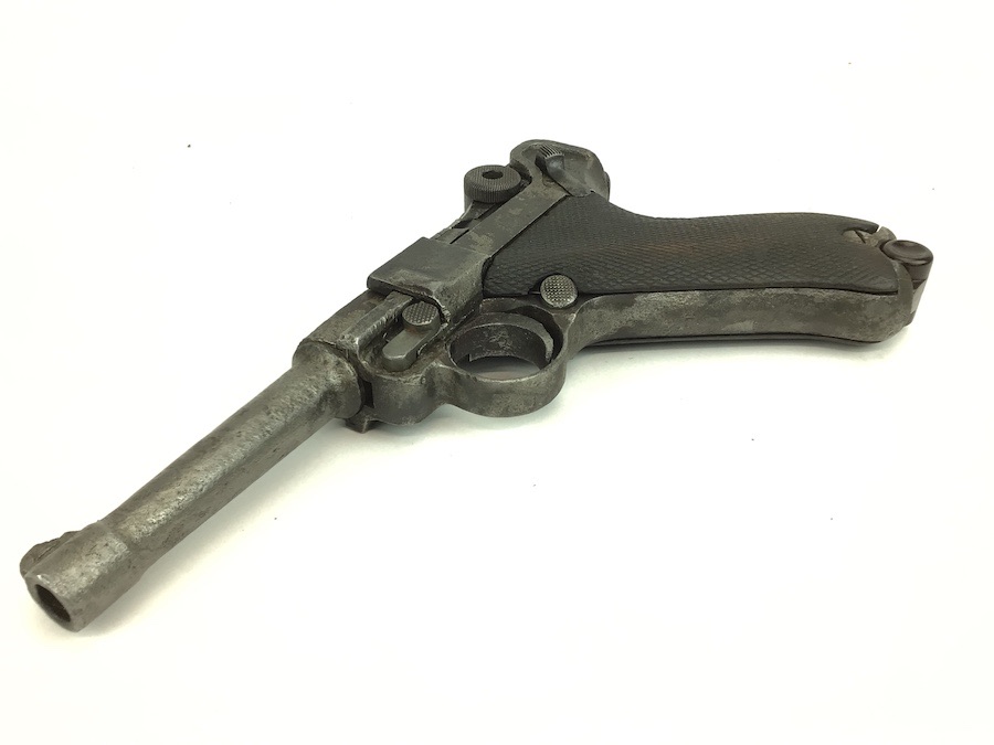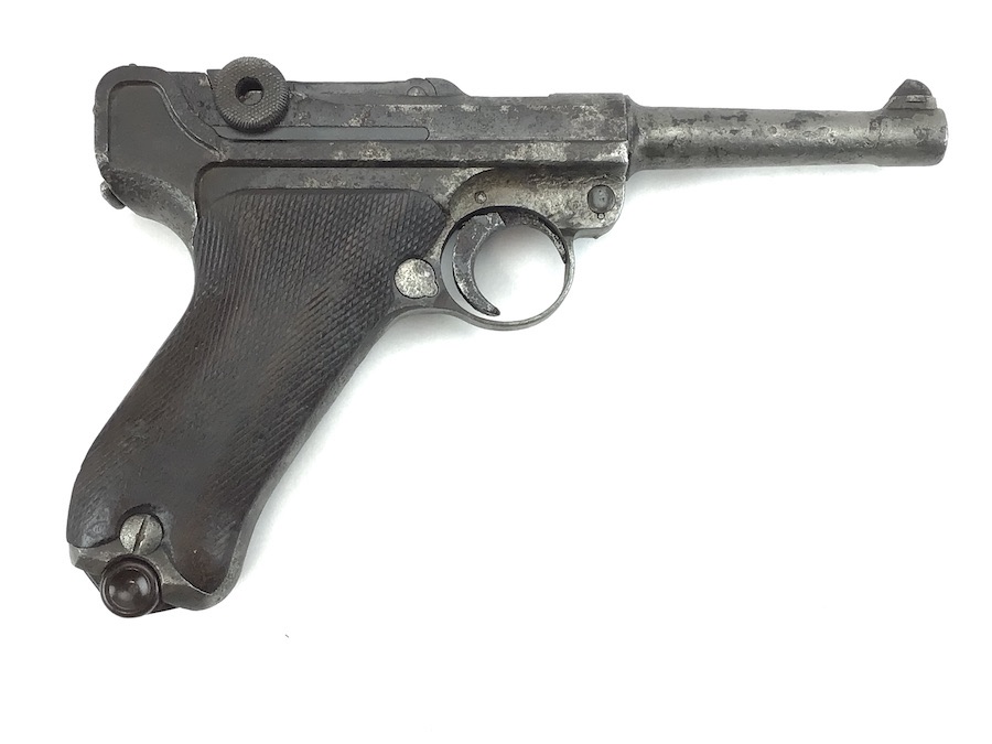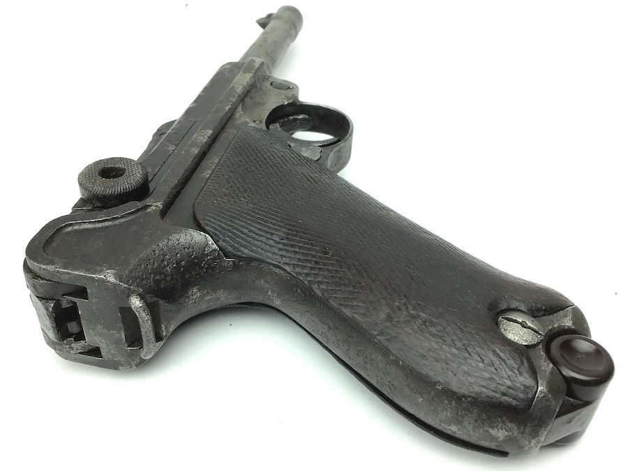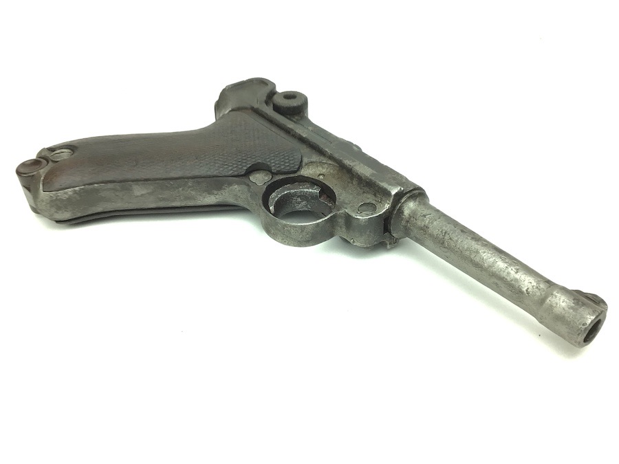 8/2/22 – This is a a really cool Luger relic dug up on a WW2 battlefield! This particular gun came to us as a part of a large collection of relics dug up on Eastern European WW2 battlefields. The gun and parts are in poor condition overall – heavily pitted throughout. This pistol was completely disassembled, cleaned, lubricated and reassembled. It is functional, but being sold as display piece only. This is not a shooter. The wood grips are correct. The post war magazine was added to make it complete. Requires a C&R or FFL.