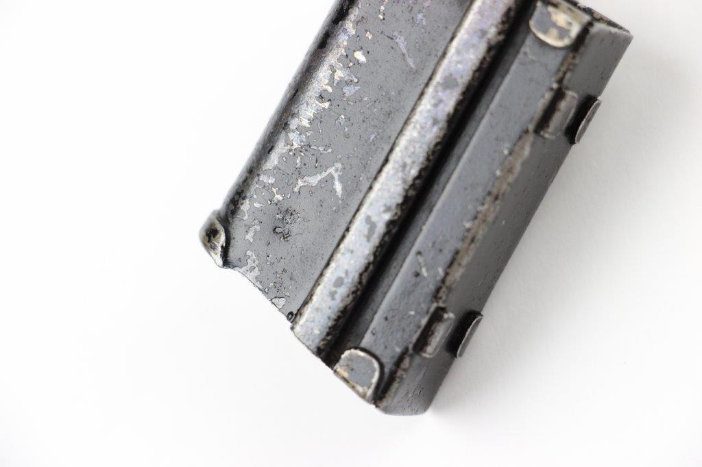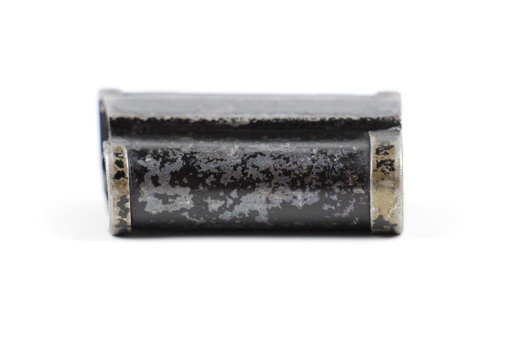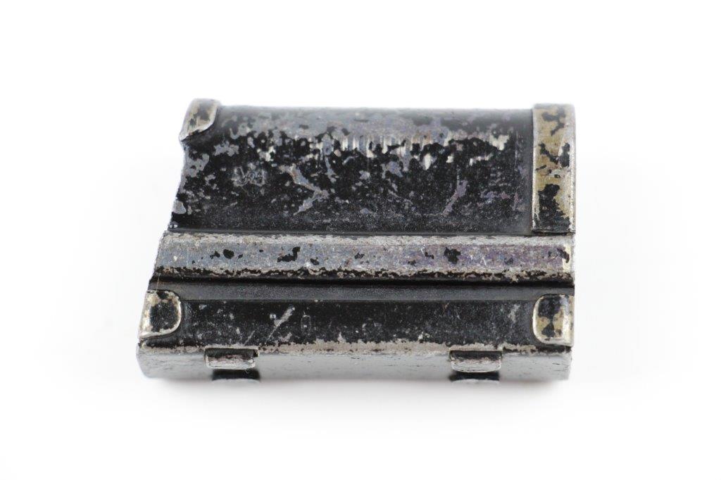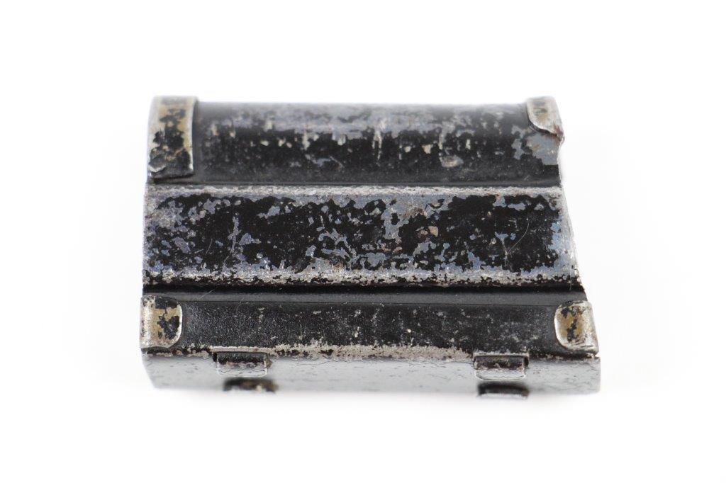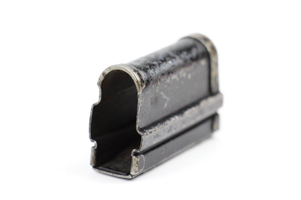 5/6/24 – This is a WW1 original metal Snail Drum Magazine Adaptor / Dust Cover piece. The metal sleeve is in great overall condition with a black painted finish and a small Imperial proof stamp on one side. No other markings or stamps.
