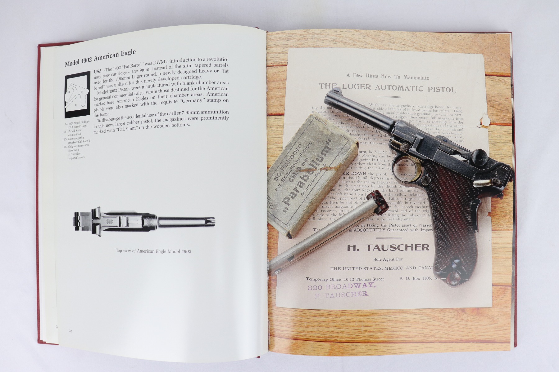 8/14/19 – Excellent condition hardcover. Comes with original dust cover in good condition. This is a pictorial overview of the basic history and development of the Luger and its international acceptance. There are pristine examples of the weapon complete with their original accessories. The dust jacket has slight wear and a small rip on the top of the binding.