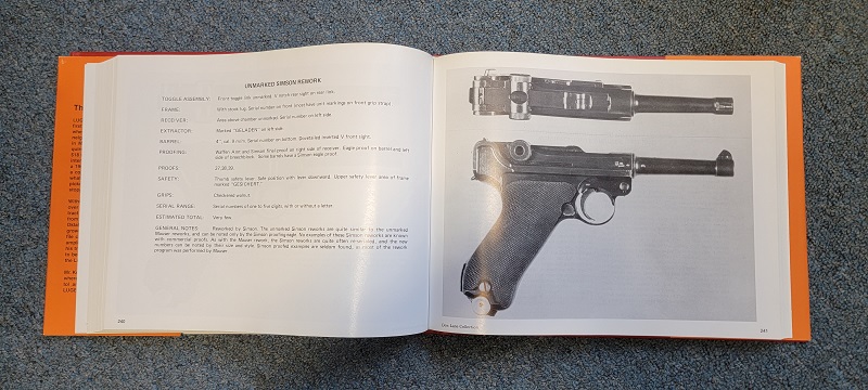 6/1/23 – Lugers at Random by Charles Kenyon Jr. is an excellent book for Luger collectors. The book describes the basic differences in models and types and shows side by side photographs to help clarify them. It has disassembled guns with individual part names and a brief section on Proof Marks. The book is 420 pages and features dozens of Luger pistol photographs. There is some cosmetic wear on the cover sleeve, but overall the book is in great condition.