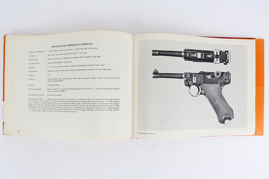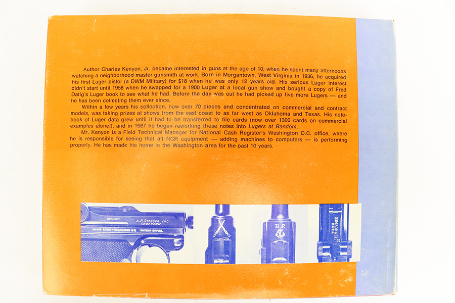 7/25/23 – Lugers at Random by Charles Kenyon Jr. is an resource book for Luger collectors. The book describes the basic differences in models and types and shows side by side photographs to help clarify them. It has disassembled guns with individual part names and a brief section on Proof Marks. The book is 420 pages and features dozens of Luger pistol photographs. There is some light wear and aging throughout the sleeve and exterior cover. All pages are in great condition and lightly used.