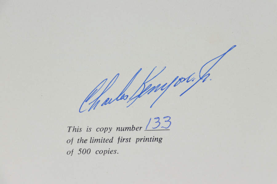 8/17/19 – Hardcover book signed by Charles Kenyon Jr. with the original dust jacket. This book is an identification guide and catalog of the many variations of the Luger. There are brief descriptions along with detailed photographs of the Lugers. The book is in good condition. The dust jacket has wear to the edges and binding. There are also small stains on the inside cover of the book.