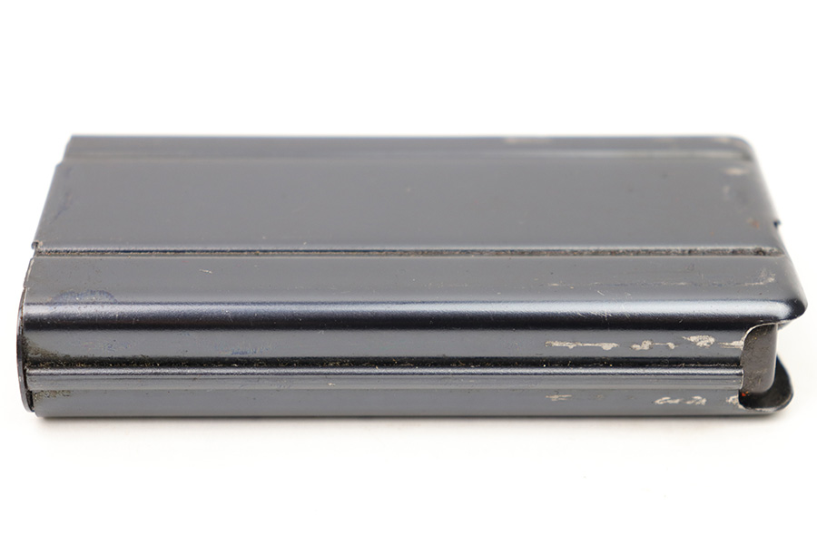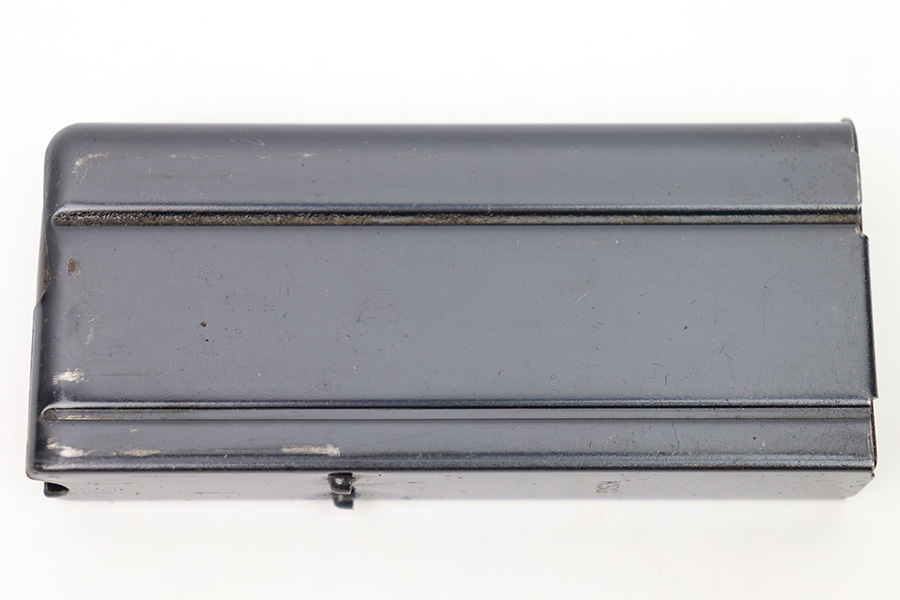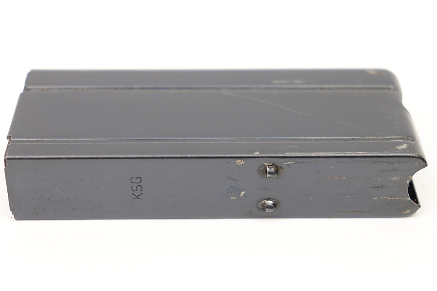 1/26/23 – This is an excellent condition M1 Carbine magazine from WW2. The magazine has clean, all original finish and minimal finish loss. Fully functional spring. Maker stamped on the spine, KSG by Saginaw.