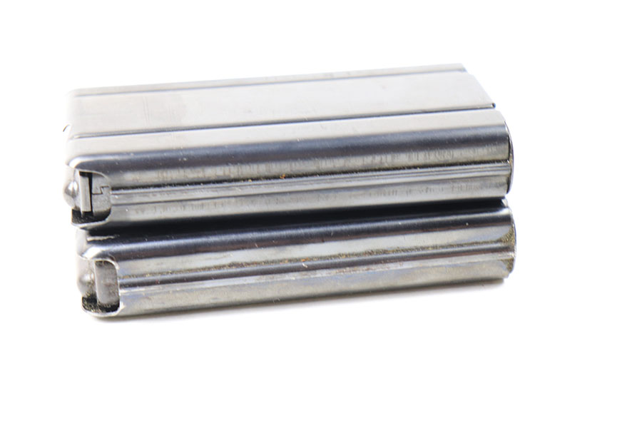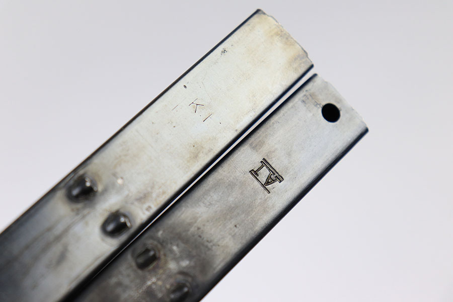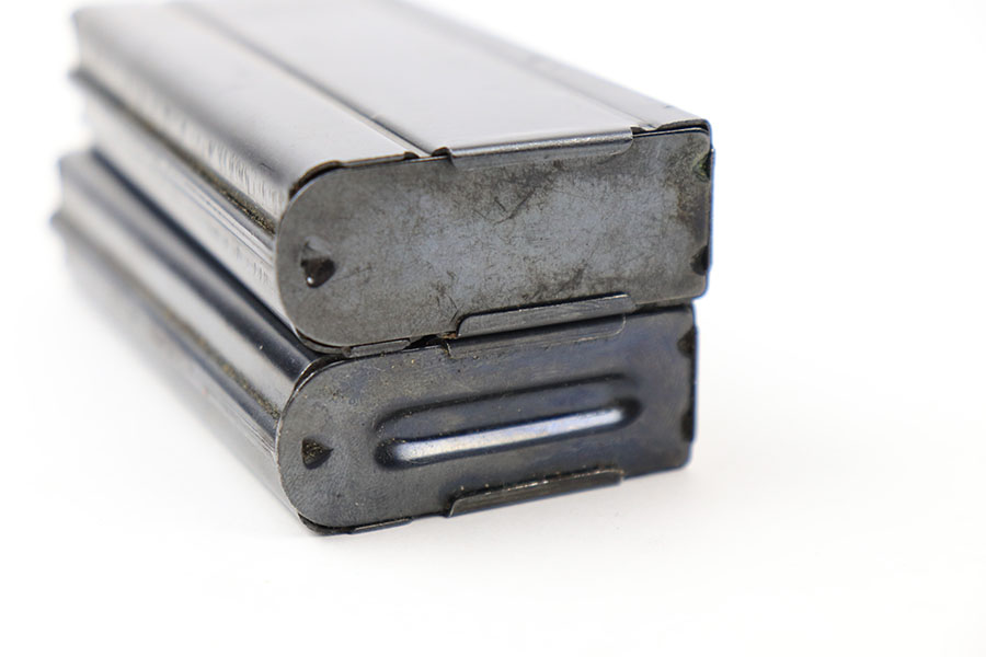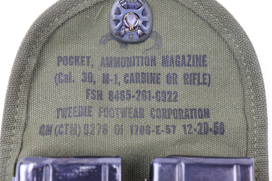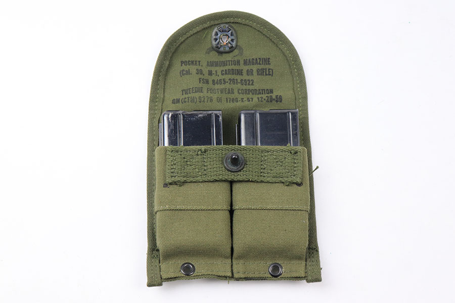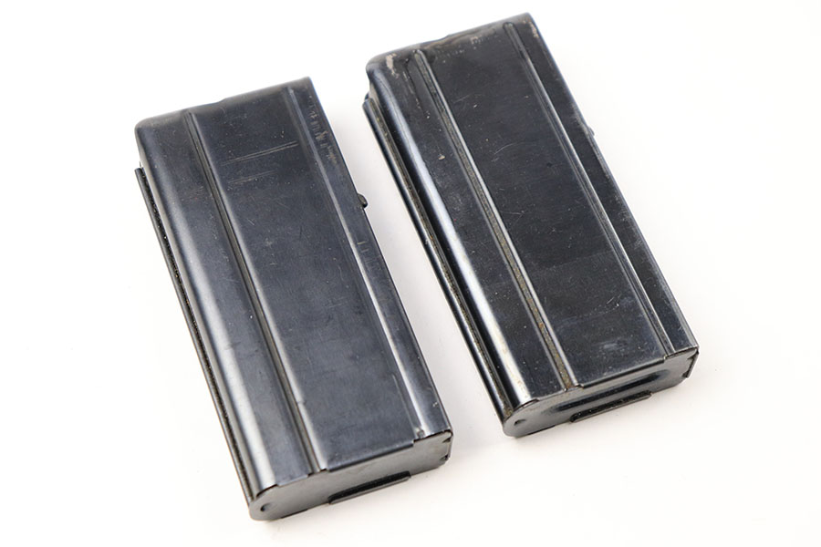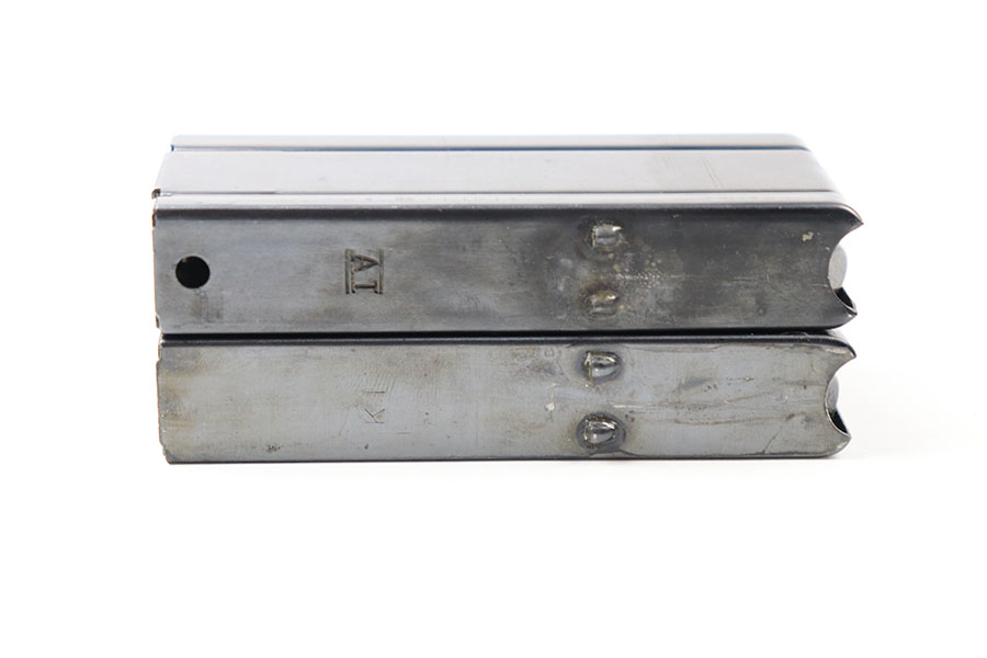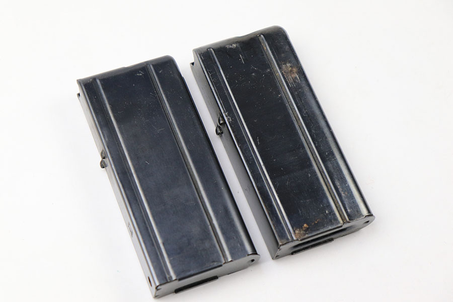 9/30/21 – These are two WW2 era M1 Carbine magazines with a 1960s canvas magazine pouch. The magazines are both in great condition with two different maker markings. One is “AI” marked and the other is “KI” marked. No rust or pitting and fully functional springs. The canvas pouch is in excellent condition.