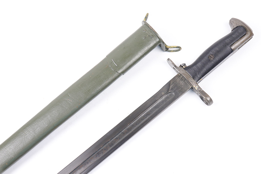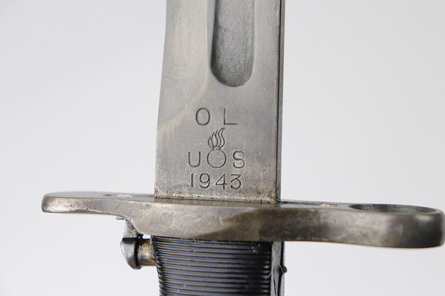 8/26/2021 – This is a 16 inch uncut OL made M1 Garand Bayonet. Excellent condition. Dated 1943 and it has the cross cannon cartouche visible. Perfect to addition to your M-1 Garand or Bayonet collection.