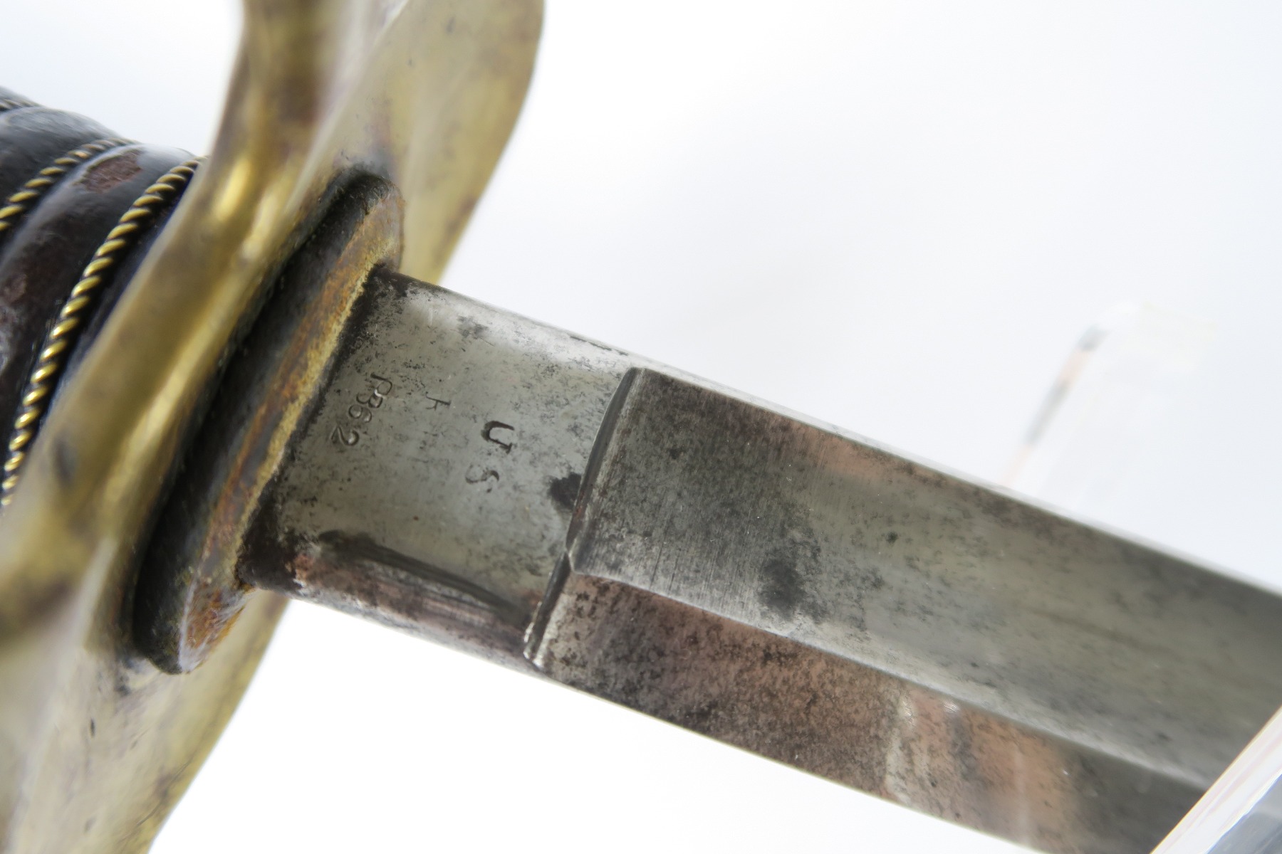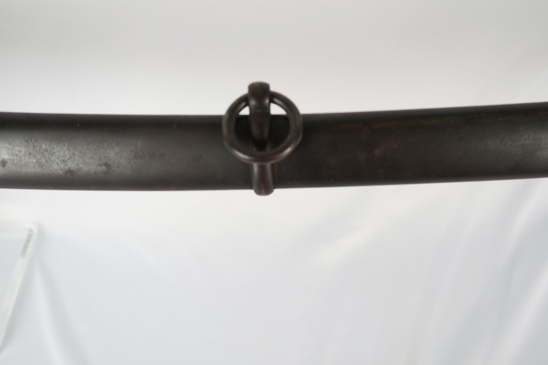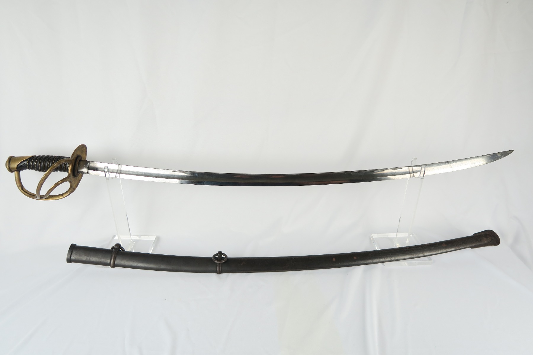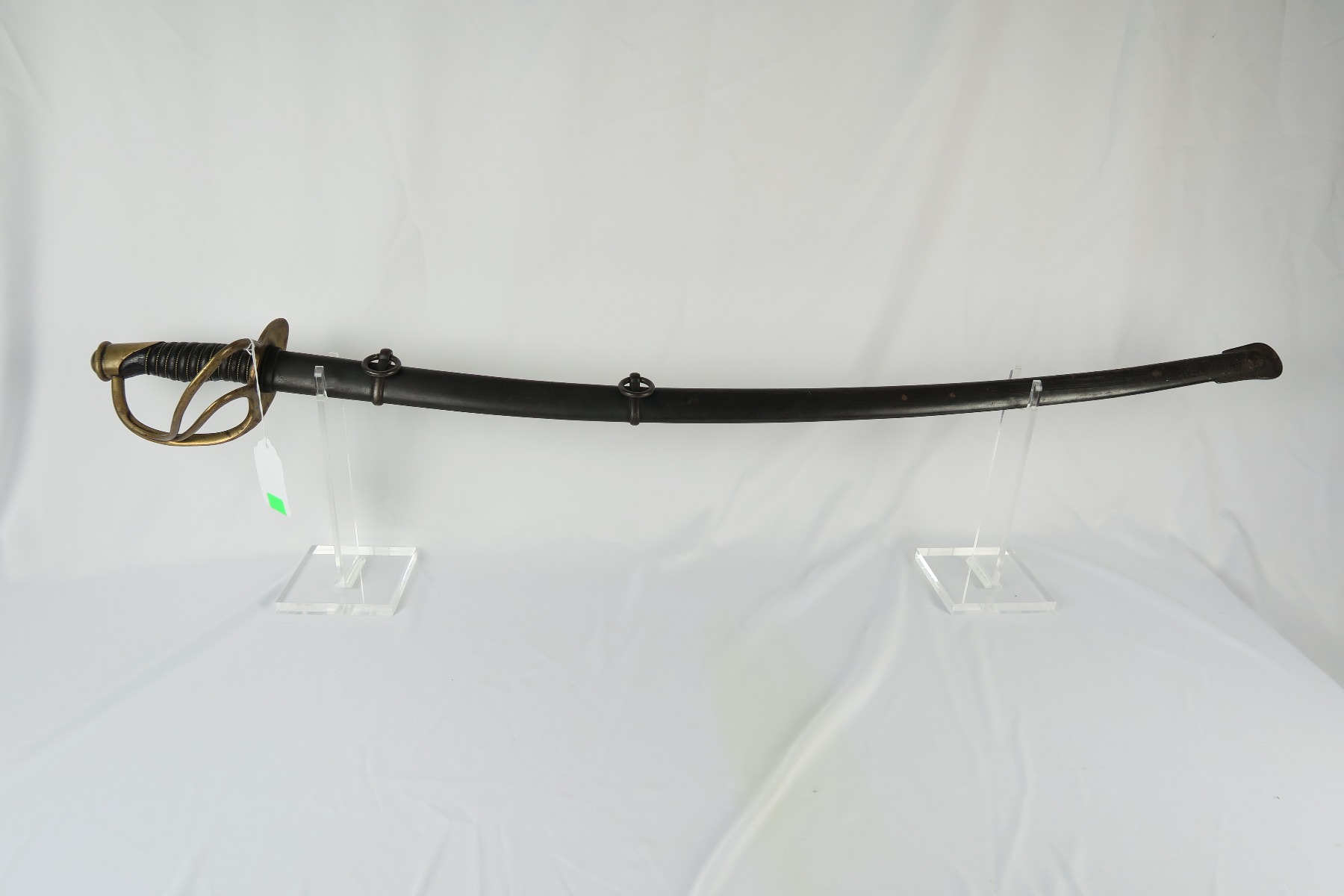 5/16/18 – This is a very nice M1860 light Union Cavalry sabre that was made by Providence Tool Company for use during the Civil War. It was made in early 1862 and is dated as such. This manufacturer is one of the more scarce makers with only a 10,000 sword contract. 1862 was the first year that these were issued, replacing the much heavier M1840, aka “wrist breaker”. This sword is in excellent condition given its age, with no especially notable flaws aside from standard age to the finish and scabbard, as well as various dings on the handle.