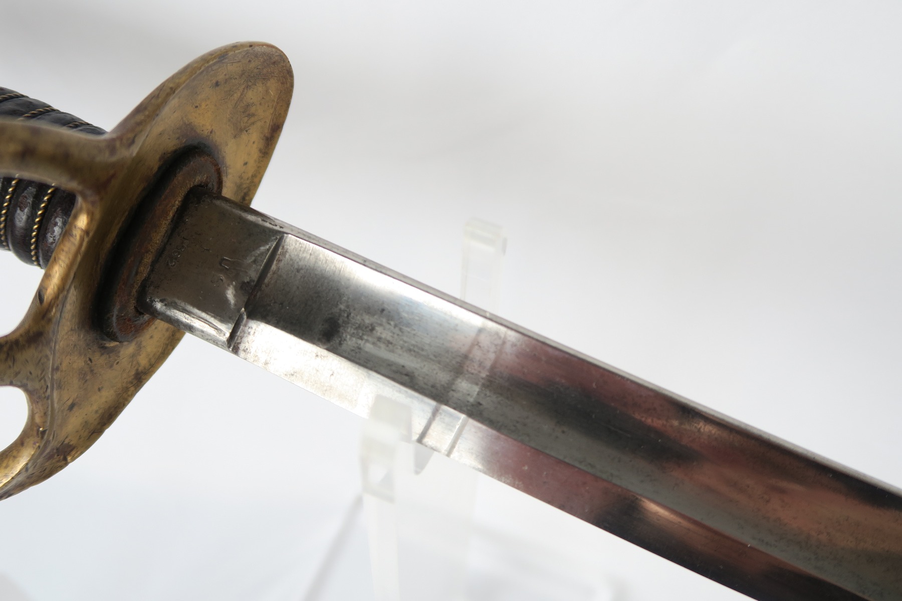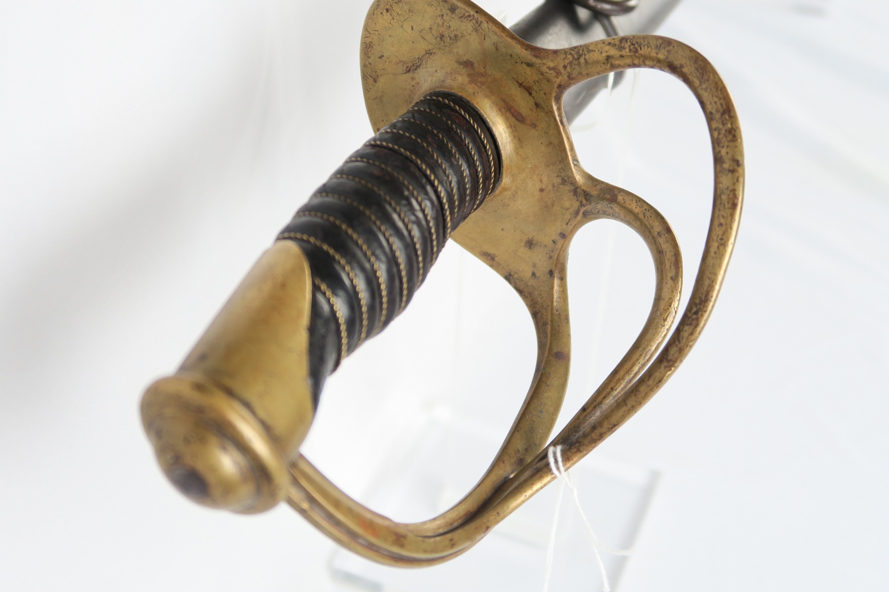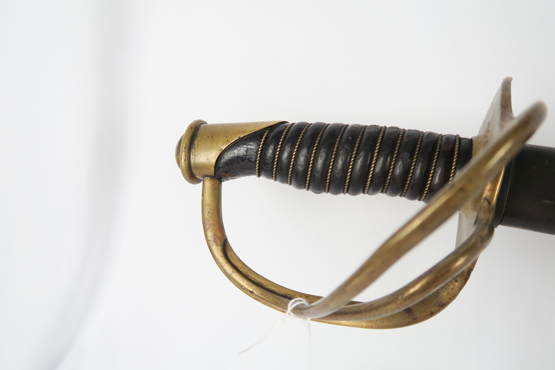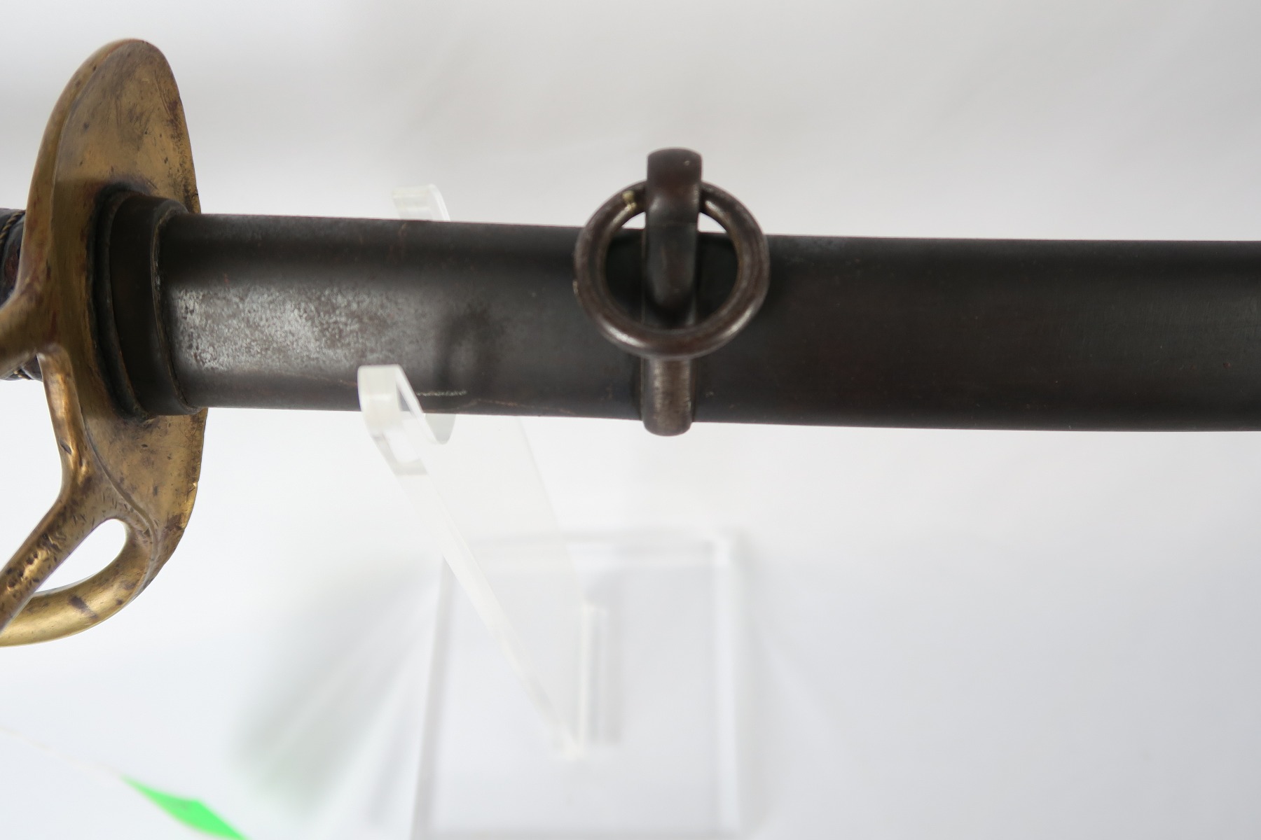 5/16/18 – This is a very nice M1860 light Union Cavalry sabre that was made by Providence Tool Company for use during the Civil War. It was made in early 1862 and is dated as such. This manufacturer is one of the more scarce makers with only a 10,000 sword contract. 1862 was the first year that these were issued, replacing the much heavier M1840, aka “wrist breaker”. This sword is in excellent condition given its age, with no especially notable flaws aside from standard age to the finish and scabbard, as well as various dings on the handle.