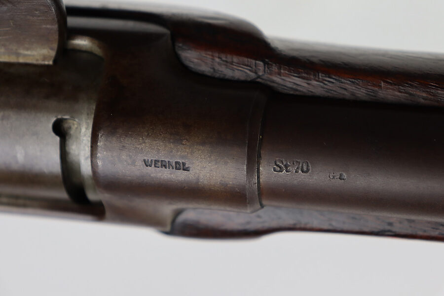 11/21/23 – This is a great example of a Werndl model 1867/77 used by the Austro-Hungarian Empire before the turn of the century. The 1877 update to the Werndl Rifle allowed for the rifle to use the more powerful 11.15x42mmR black powder cartridge. The rifle is in great condition for its age. There are spots of bluing here and there but the majority of the rifle is covered in a nice layer of patina. The stock is also in great shape with no signs of damage anywhere. The bore is excellent being very bright with sharp rifling. The action locks up nicely and functions well.