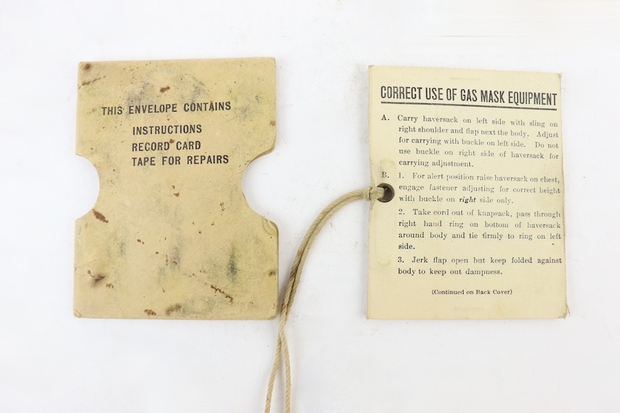 SOLD – M1917 SBR Gas Mask With Instruction Pamphlet