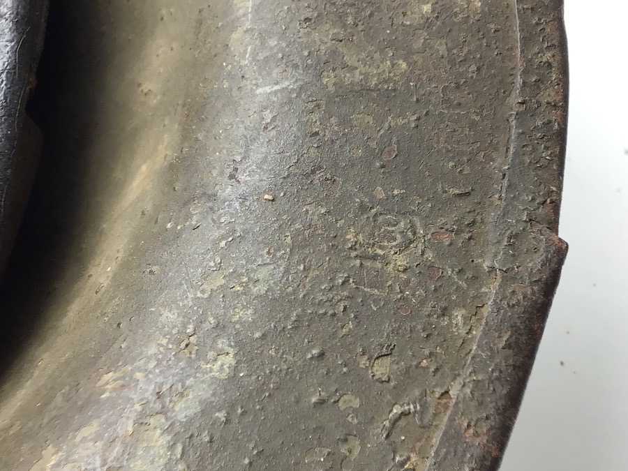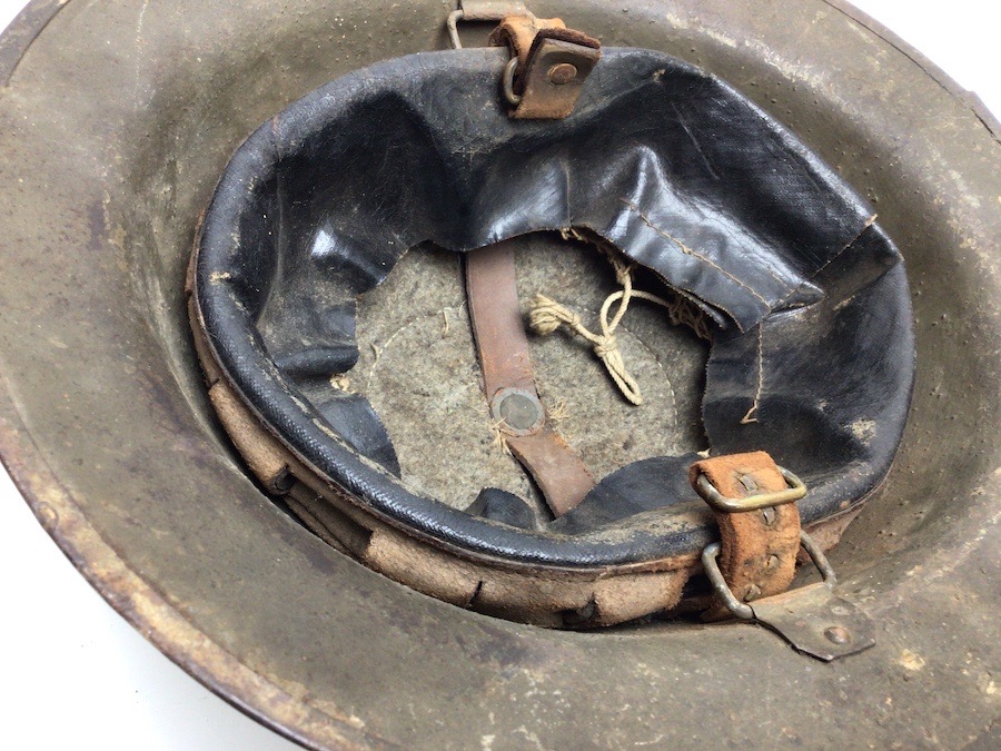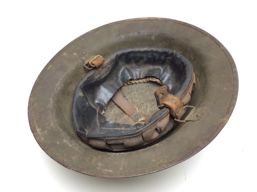 1/19/24 – This is an original US M1917 “Doughboy” helmet. The helmet is in great overall condition with original paint, and liner. The chin strap is missing. No apparent dents. The interior is lot numbered “8” near the back brim. Normal surface wear on the leather liner but no major issues.
