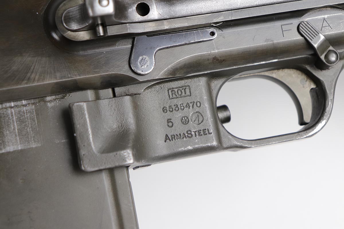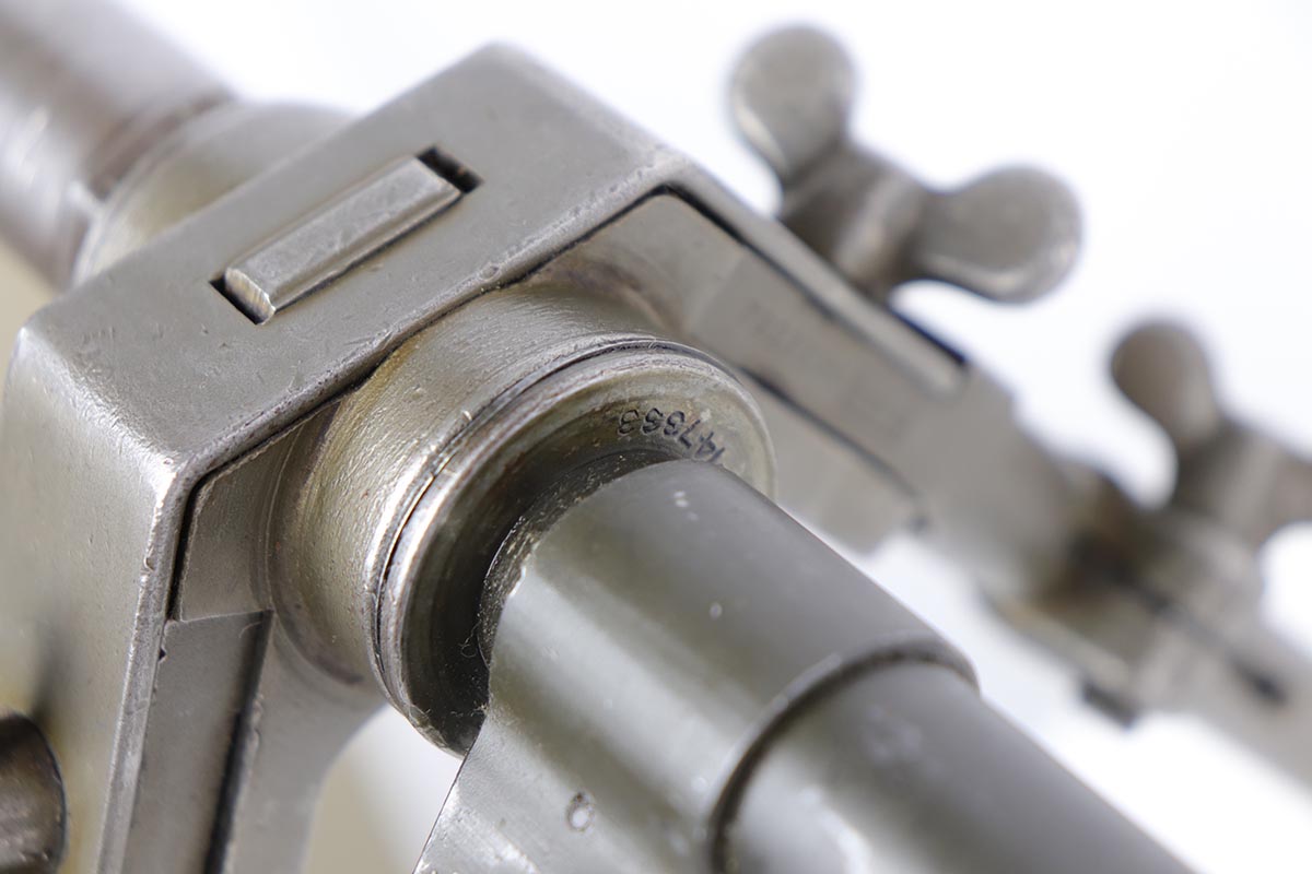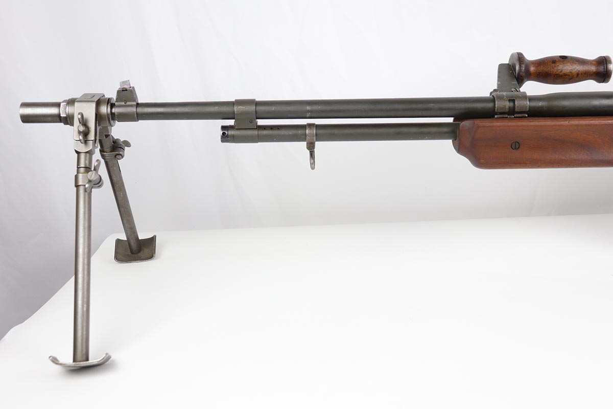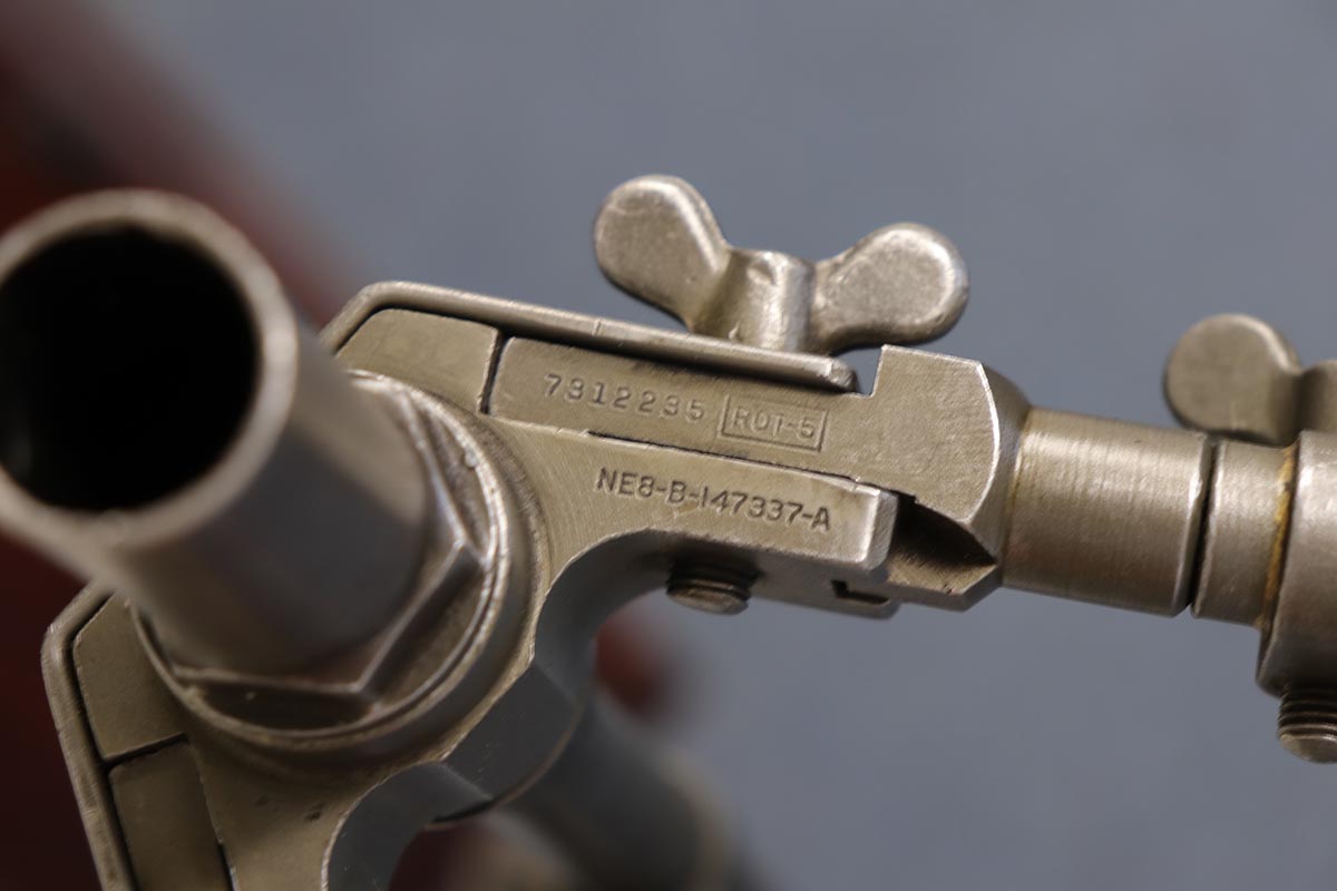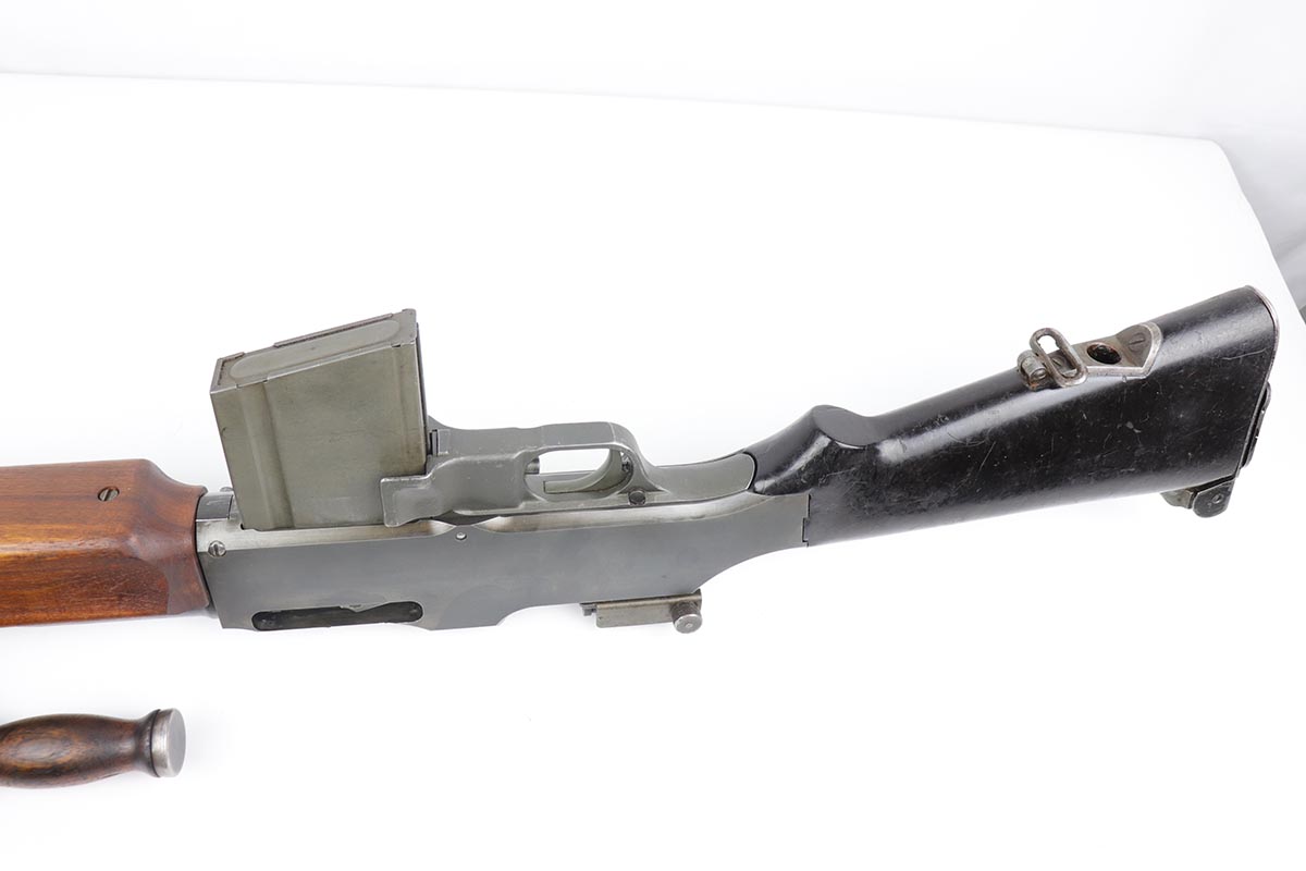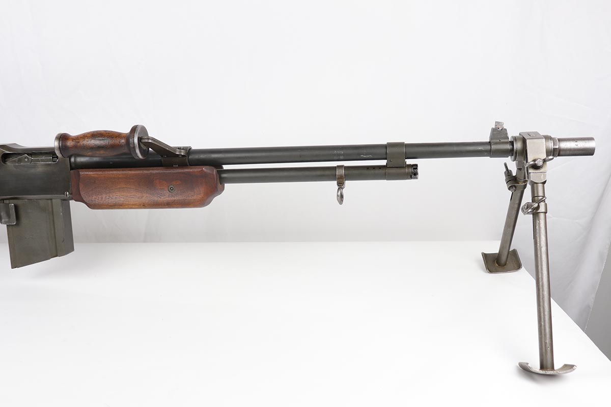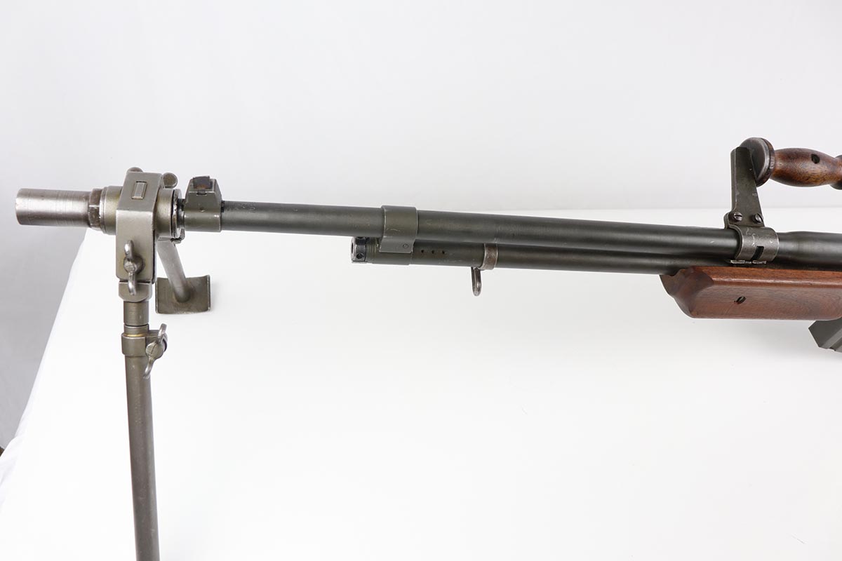 9/6/19 – Manufactured by Philadelphia Ordnance, this is an excellent example of a dummy BAR M1918 rifle. This is an 80% receiver with all US military parts, aside from the receiver. Barrel is dated to October of 1952, while most of the other parts are WW2 era. The parts kit has been reassembled onto a BATF approved steel new made display receiver complete with the with correct adjustable bipod, exceptional bakelite butt stock, flash hider and 20 round magazine. Will make an awesome display or can be used for a super desirable semi-auto rebuild.