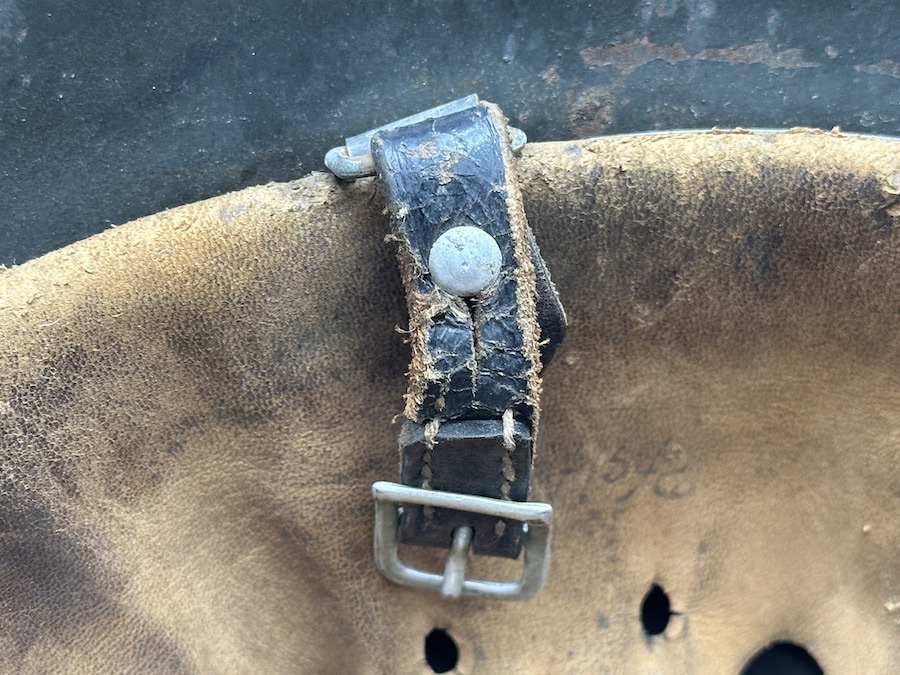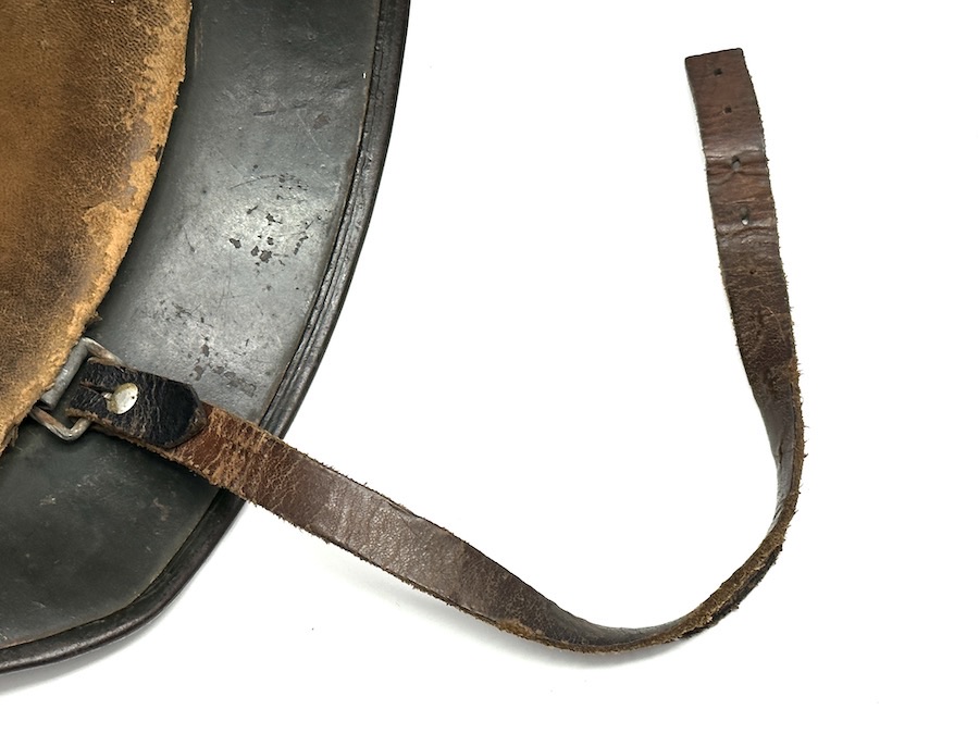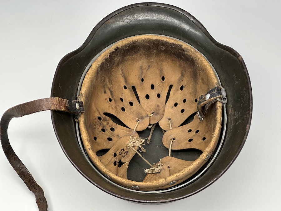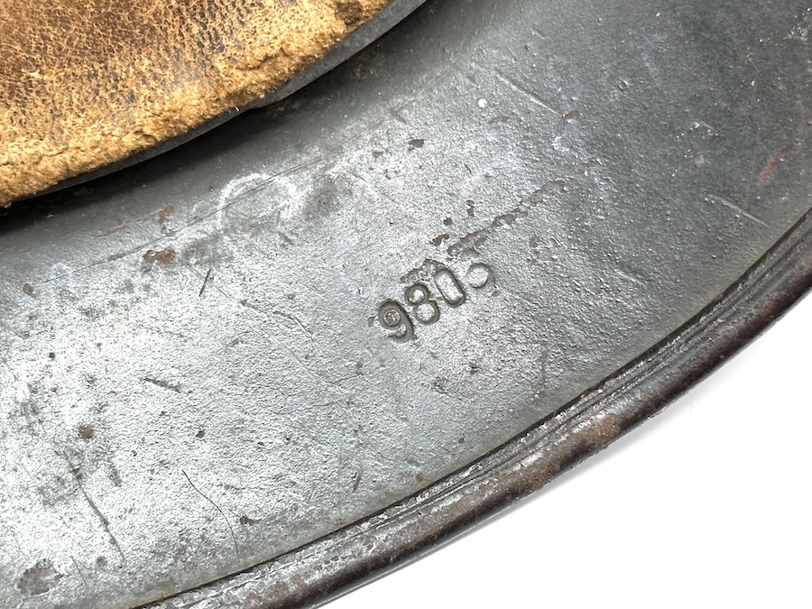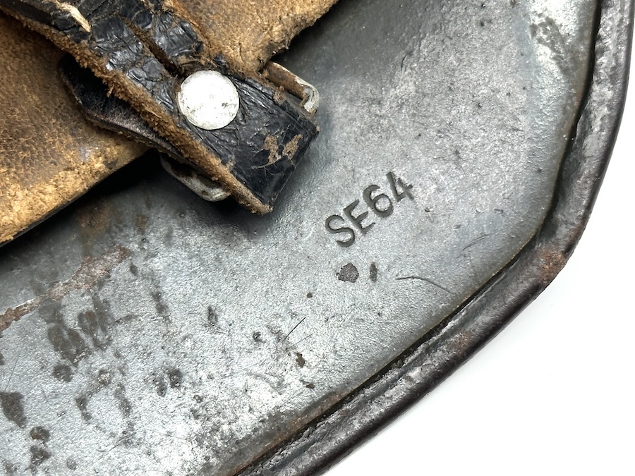 6/13/23 – This is an all original WW2 M40 German Heer Army Helmet. The Heer Army decal is about 85%-90% condition. The exterior of the shell has normal patina with some discoloration as well as some minor surface rust on the top crown, however there is no deep pitting or loss of structural integrity. The helmet is free of dents as well. The interior of the shell is maker stamped “SE” and size 64. The back visor is numbered 9806. The interior leather is all original and fully intact including the chin strap. The leather itself has some fading but little to no wrinkling but has fairly good pliability with the chin strap having a lot of cracking and wrinkling.