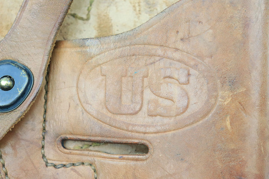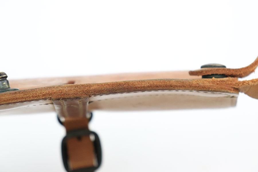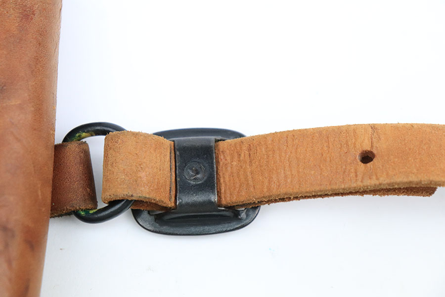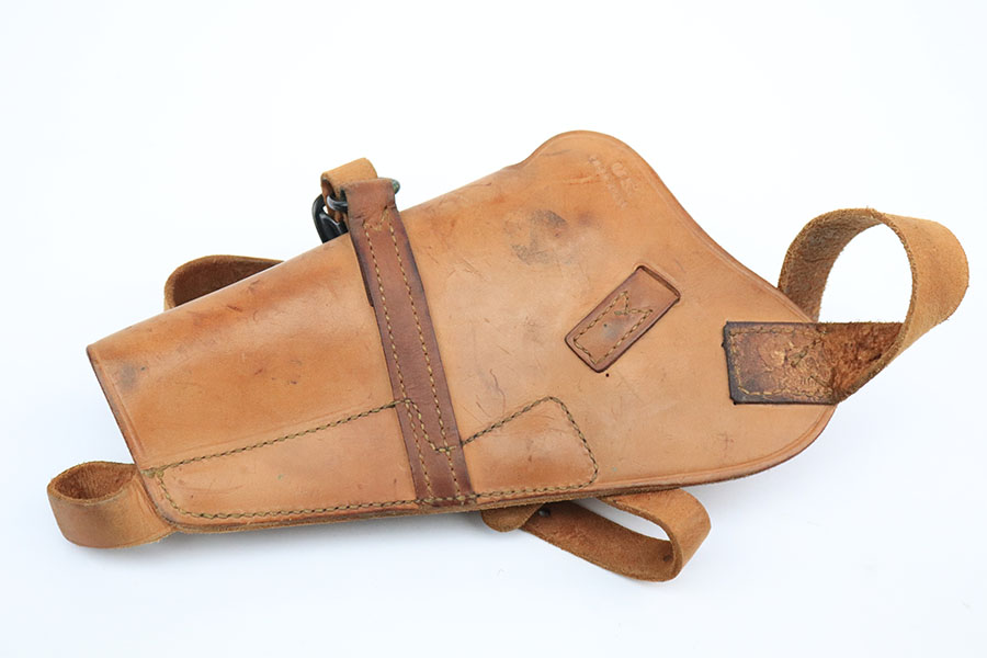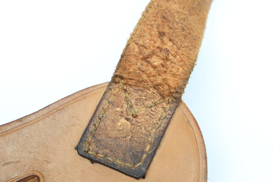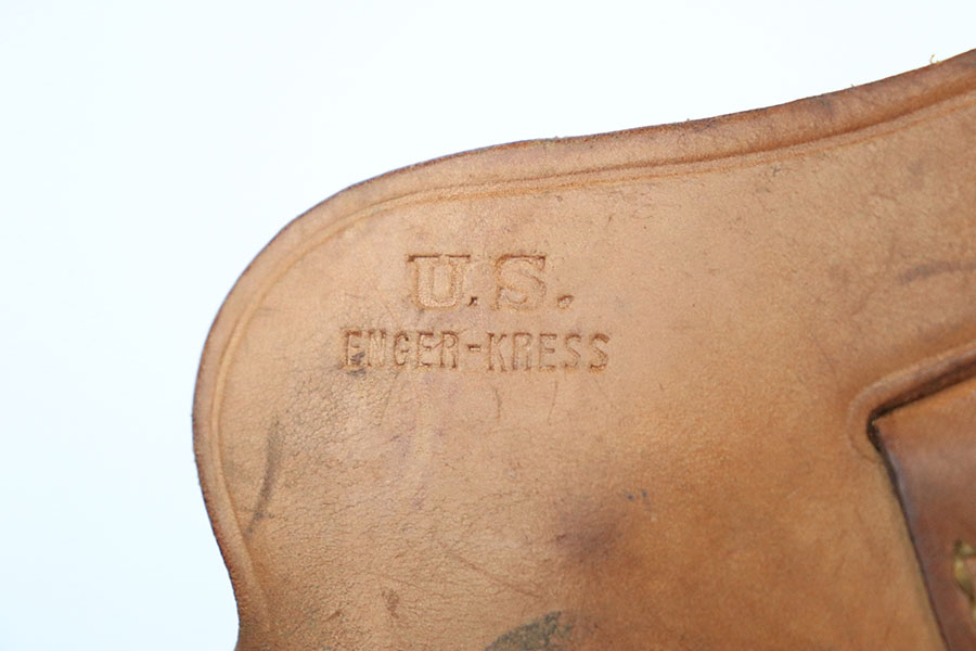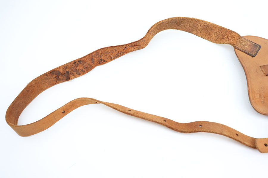 10/14/22 – This is an original WW2 era M7 shoulder holster for the M1911A1 pistol. The holster is maker stamped on the back leather and US stamped on the front. The leather is in great condition overall with some light signs of use and surface wear. The shoulder strap is completely intact but there’s some softness and pliability throughout. The stitching is tight and original.