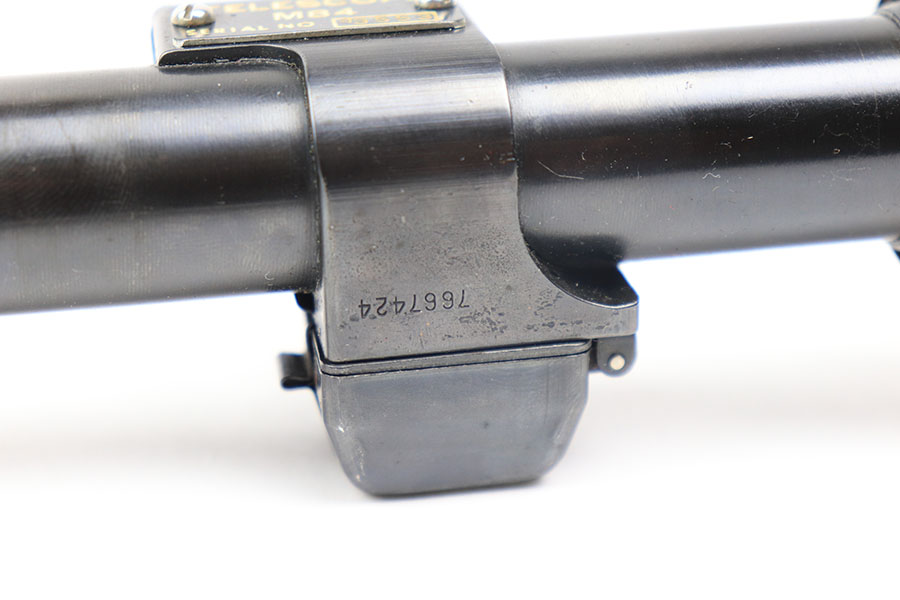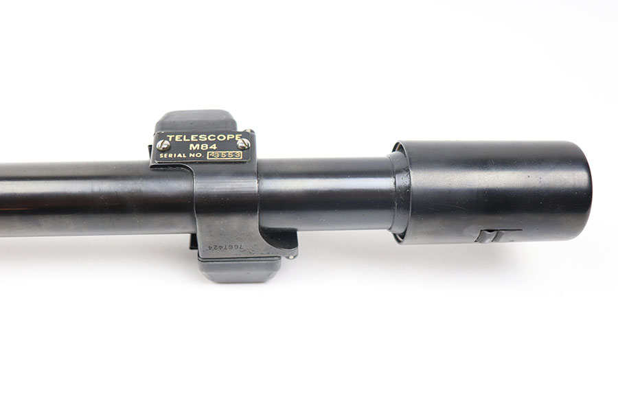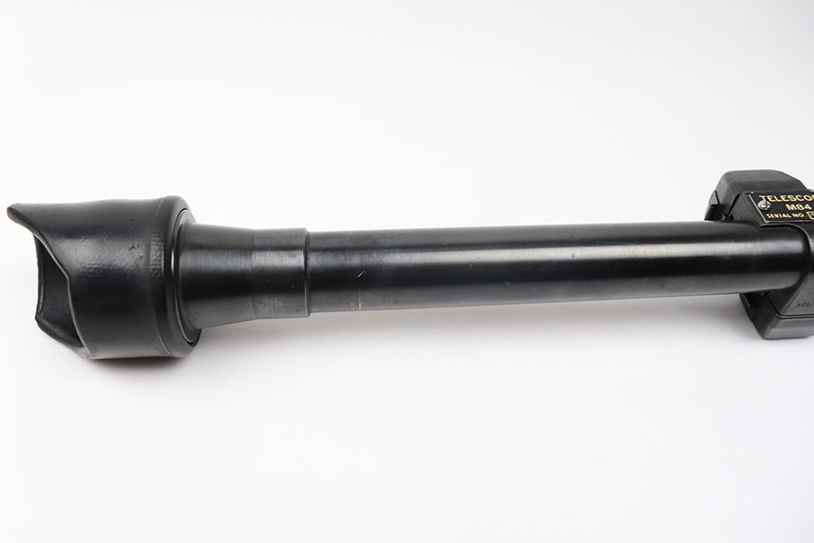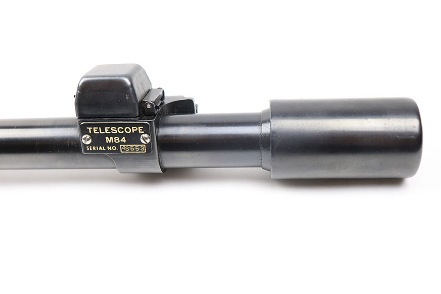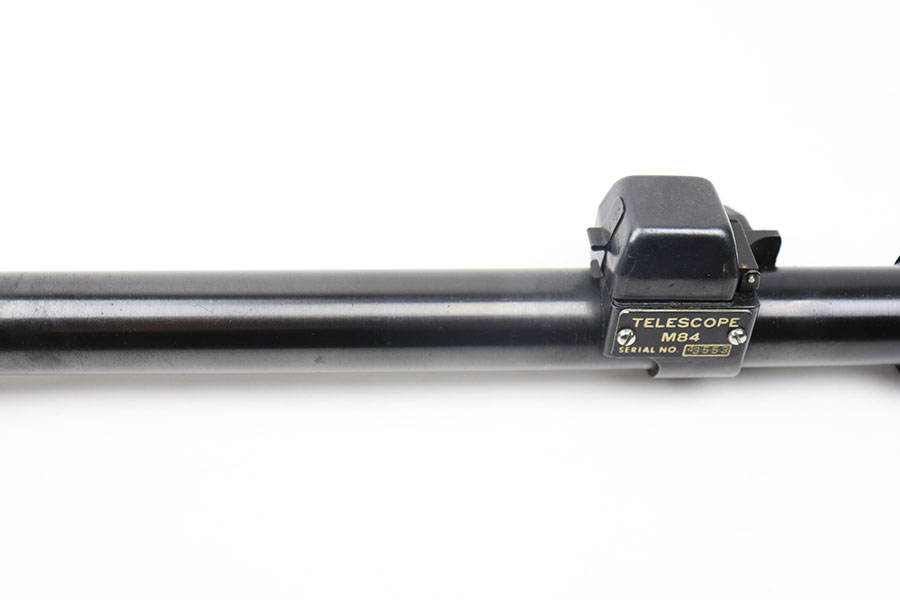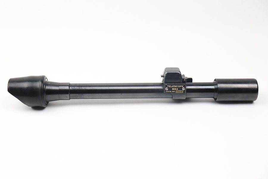 11/22/21 – This is a M84 rifle scope, often paired with the M1D or M1 Garand rifle. These scopes were used from the end of WW2 and beyond, seeing action in Korea and Vietnam. This example is in great overall condition with a very clean exterior that has no rust or pitting and minimal finish loss. The rubber eye cup is excellent, but we are not sure when it was made. The adjustment knobs work without issue.