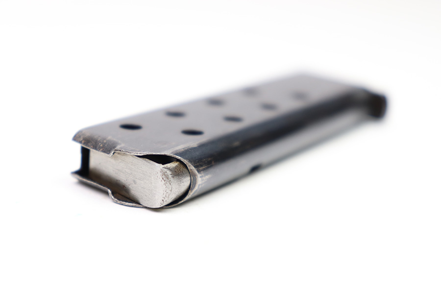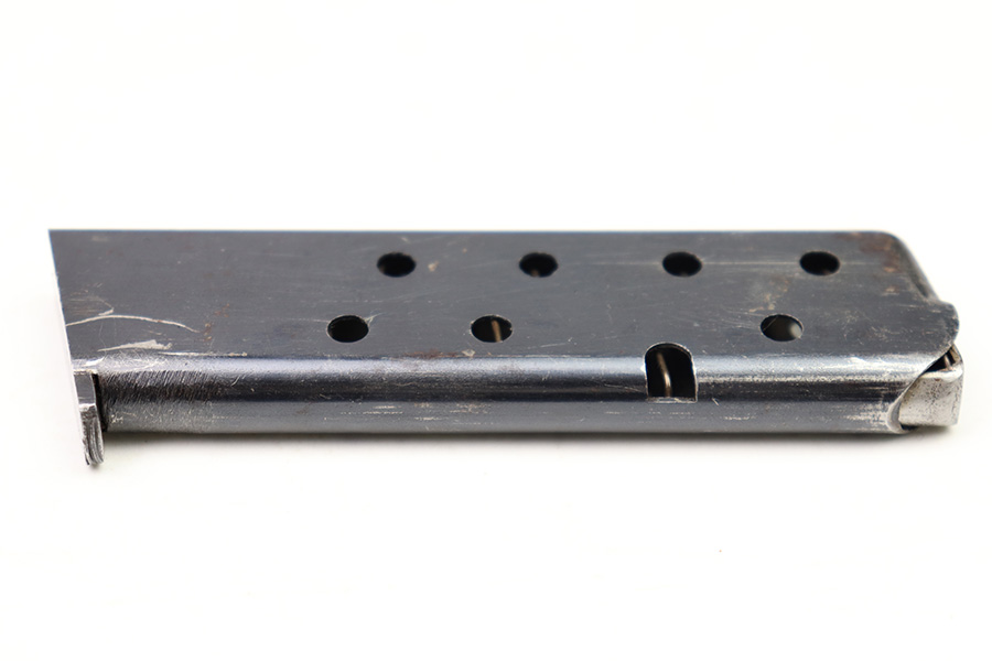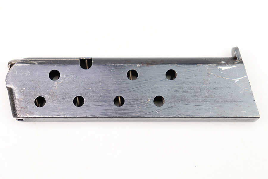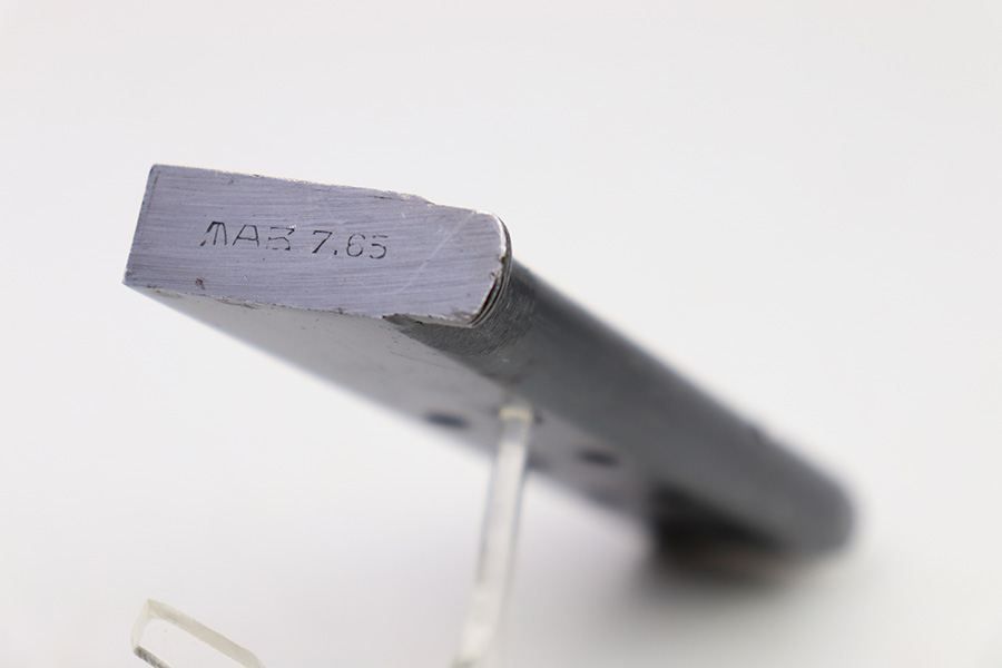 10/18/22 – This is an original French MAB model D magazine in 7.65mm. Great overall condition with most of the original finish intact. There’s some mild finish loss but no rust or pitting. Fully functional spring. Stamped MAB 7.65 on the base.