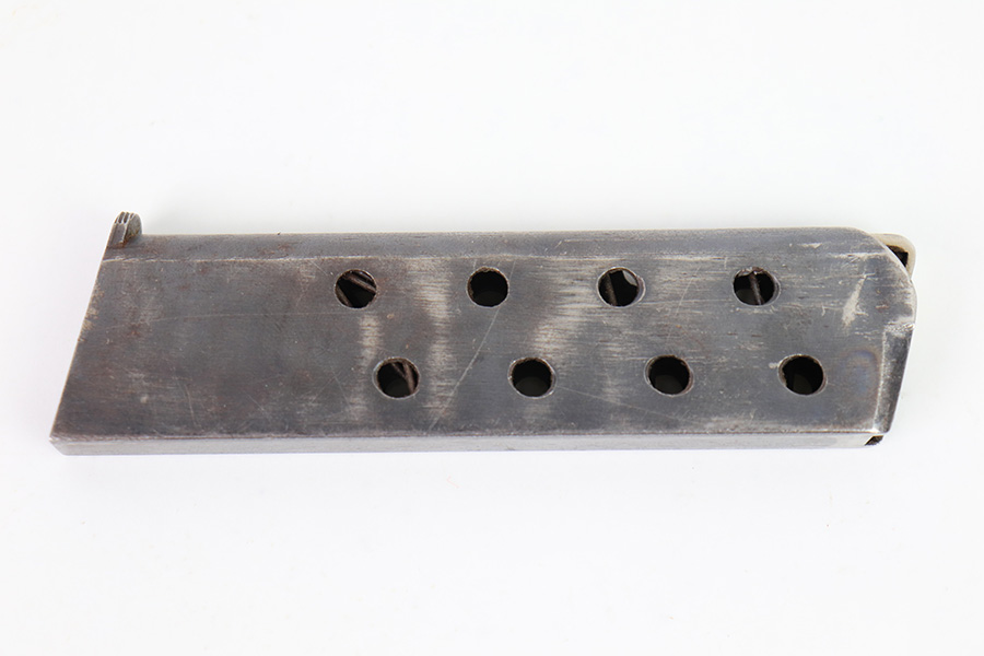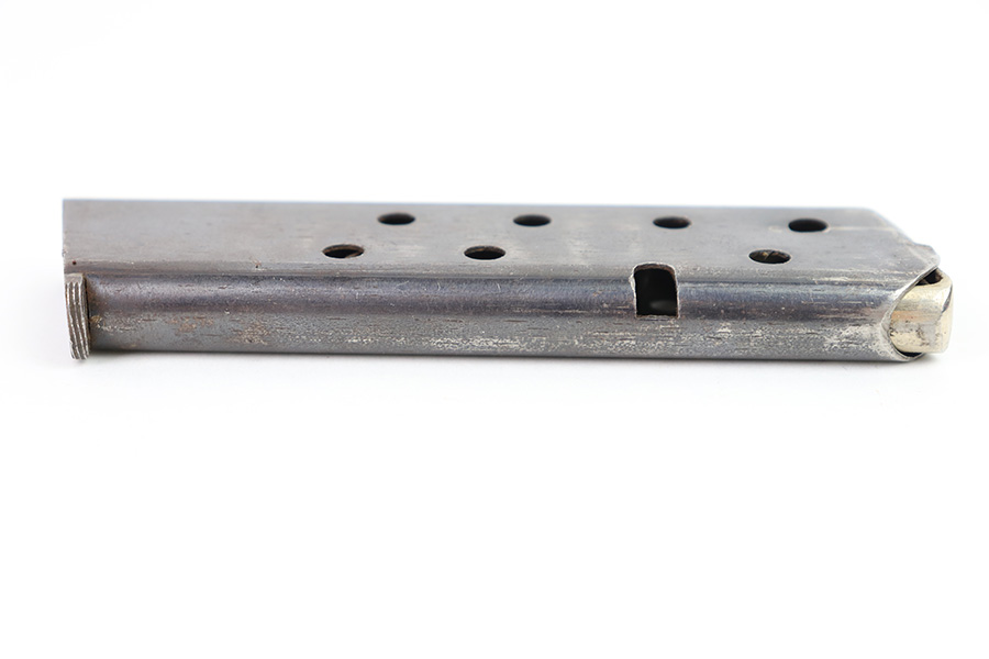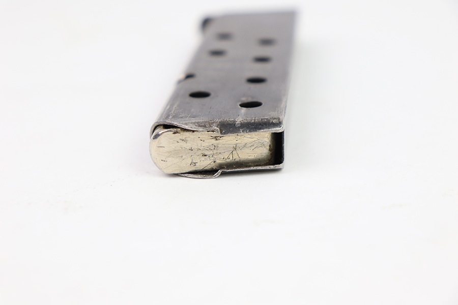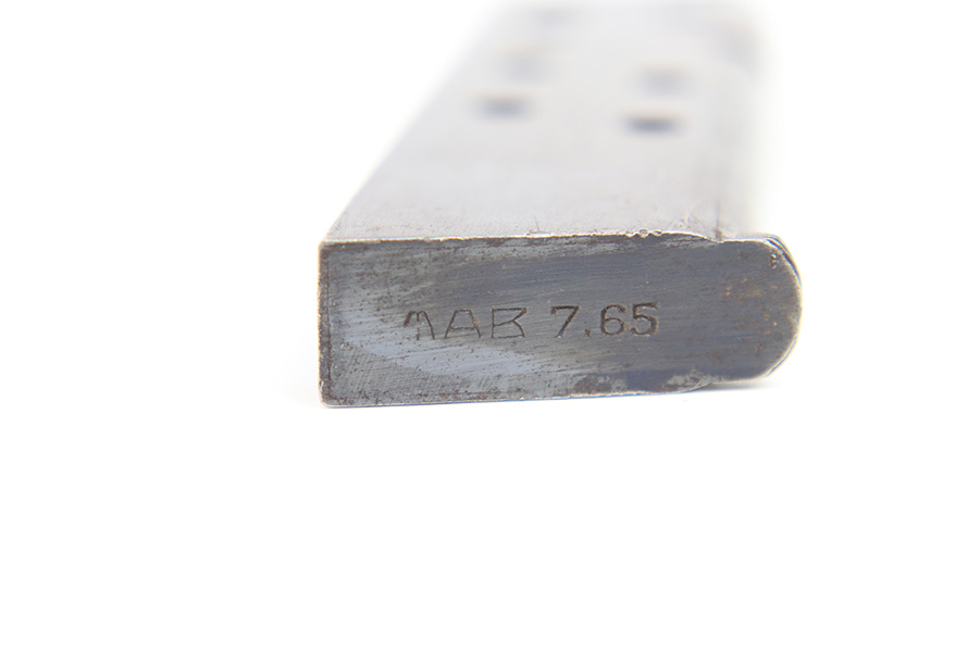 12/27/22 – This is an original WW2 era production French MAB Model D pistol magazine. Stamped on the base with “MAB 7.65” with no other markings. There’s some mild finish loss and surface patina throughout the magazine. Still in great overall condition with a fully functional spring.